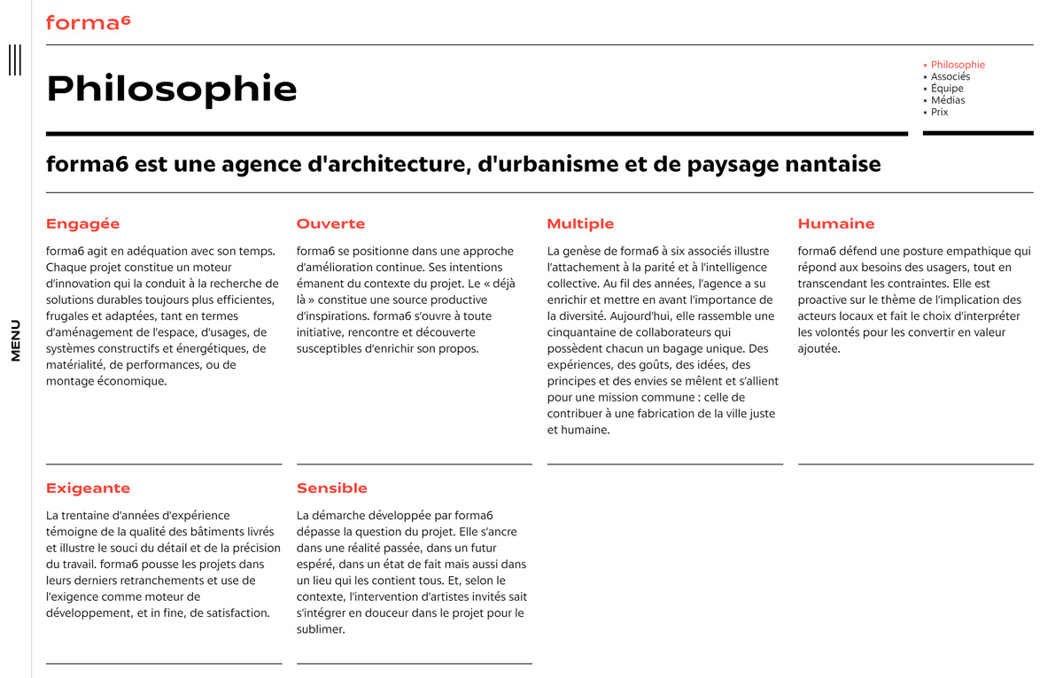We were commissioned by forma 6 to revamp their visual identity, facilitate the use of documents internally and make the image of the agency more coherent on all media, whether paper or digital. Forma 6 wanted a more contemporary identity, we went to work and brought a modern and elegant answer. — La Casse