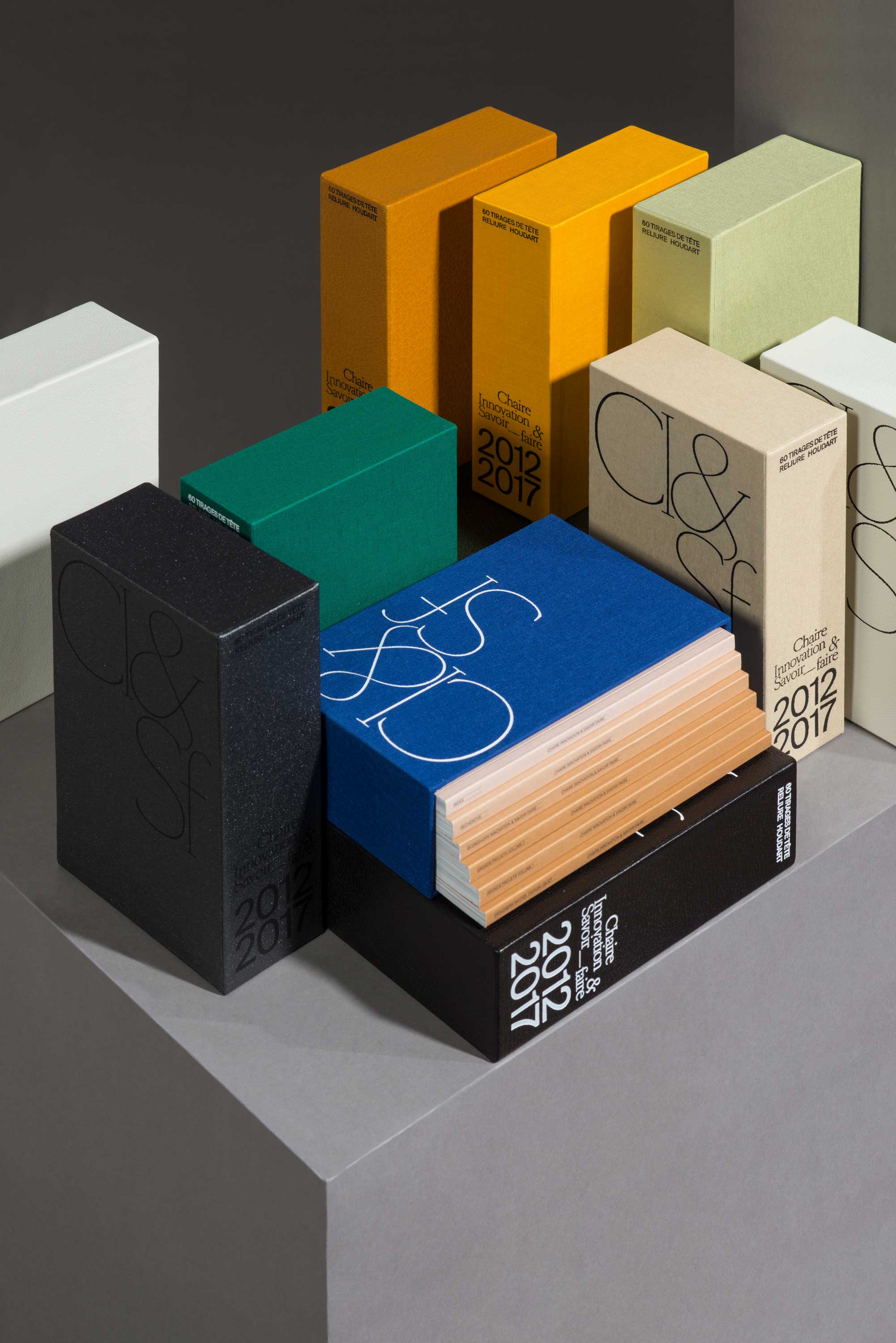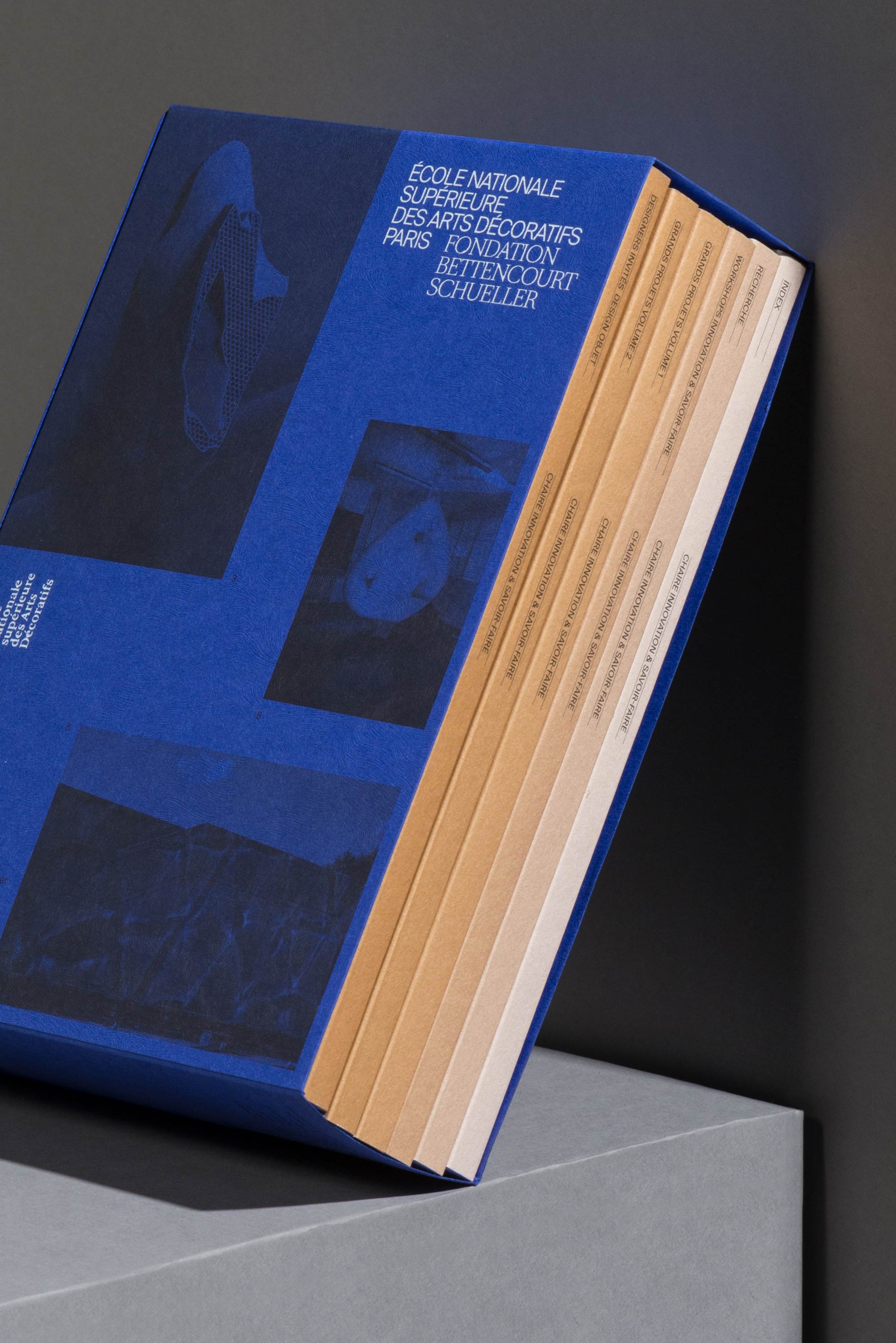 Rimasùu realised a 6 books set retracing the collaboration between Fondation Bettencourt Schueller and Ensad Paris. It’s a 5 years long story about sharing knowledge and skills, connecting curious students with French craftsmen, factories and senior designers. To celebrate craftsmanship, Rimasùu worked with Reliure Houdard Paris to create 60 unique boxes. Those leather and canvas boxes are handmade, 2 tones hot foiled, gifts for closes partners. It was a great occasion to explore materials and colors at a whole new level.