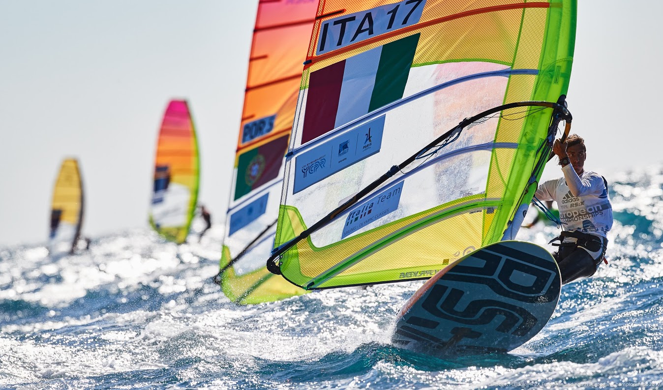 Torque Inline (with the colon set in the Bold weight) as a logo for the RS:X windsurfing class. Pictures from the Lake Garda European Youth Championships 2017 and the Youth World Championships in Marseille, 2017. Photographs: Robert Hajduk.