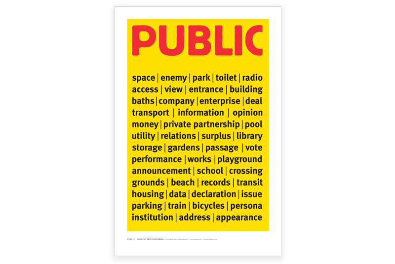 Many of the key issues for our cities and our public world are often overlooked, taken for granted, and even contested. So we invited 27 international designers to interpret the concept of “public” with a vision to reclaim urban streets, sidewalks and spaces for walking, biking and other social purposes.