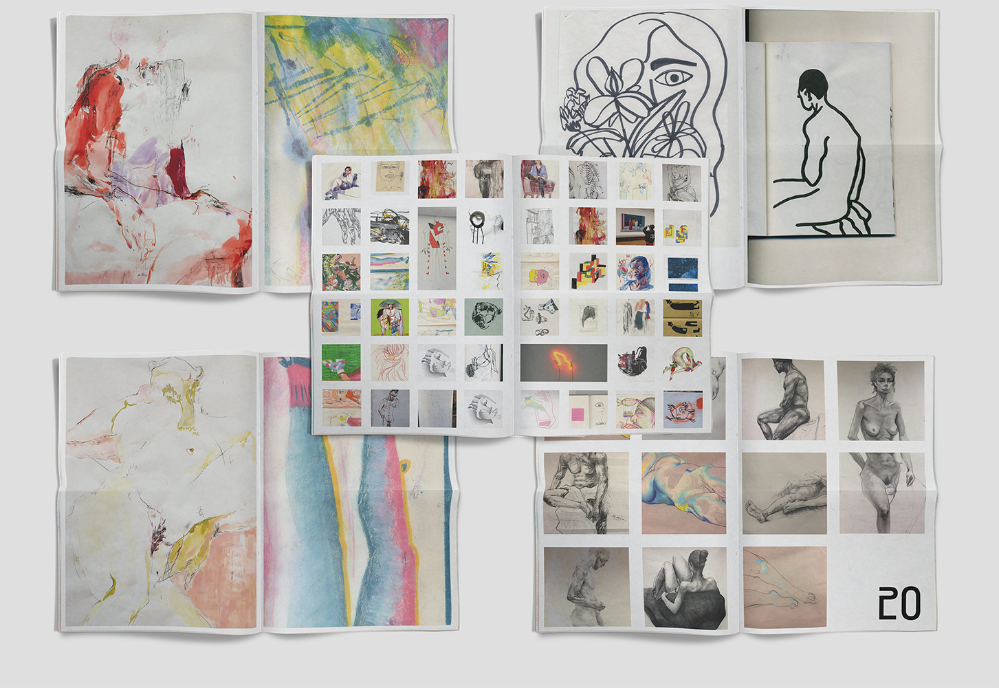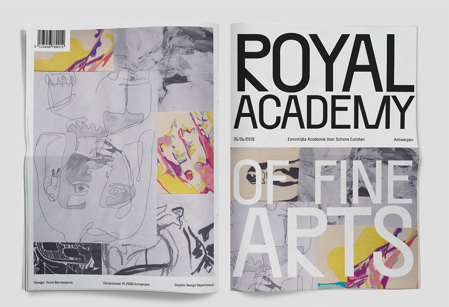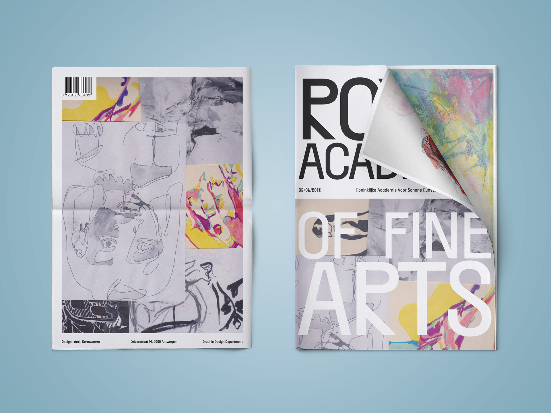 A newspaper created at the Graphic Design department of the Royal Academy Of Fine Arts in Antwerp during my 2nd bachelor year, containing drawings made by the students from different departments, including graphic design, fashion design and jewelry design.