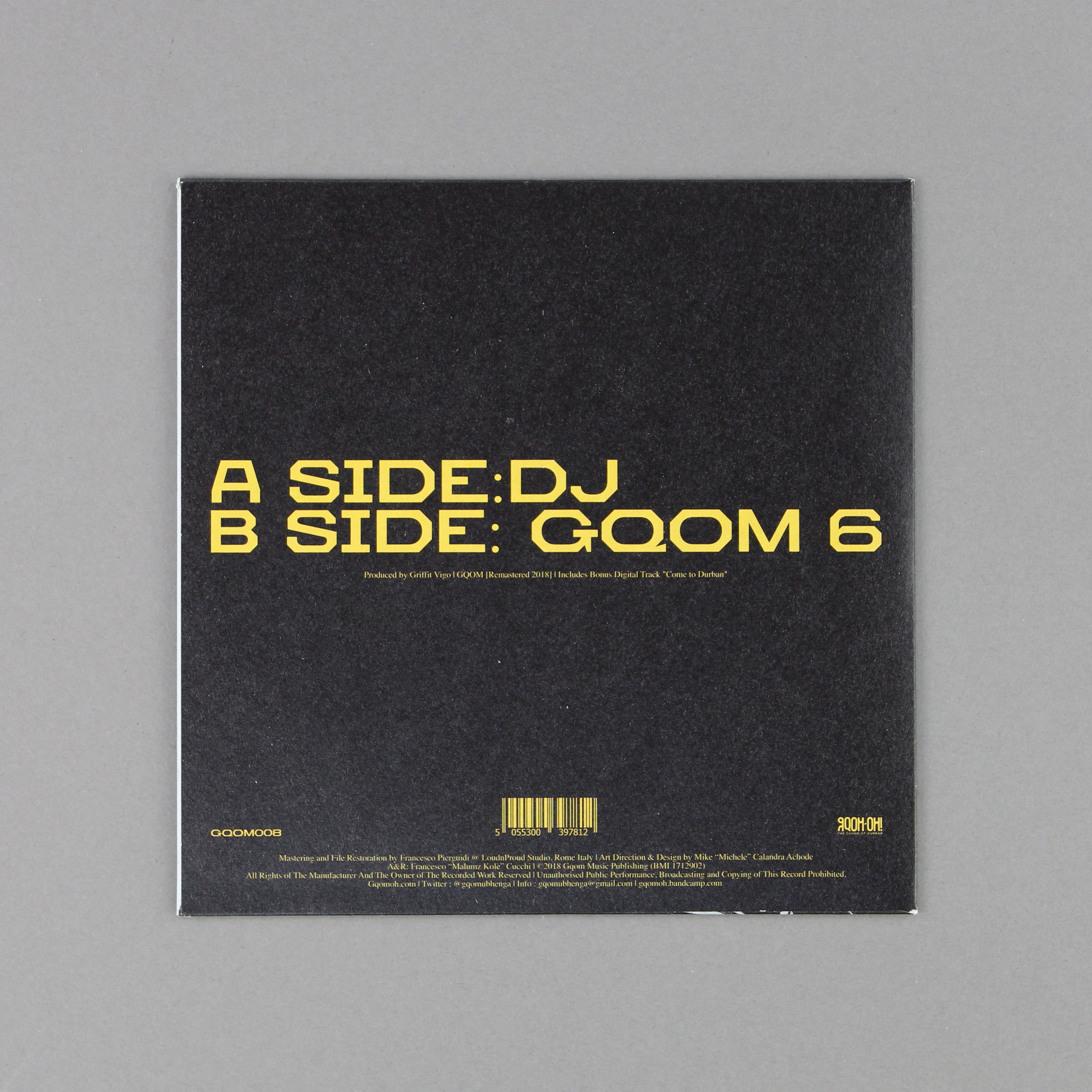After introducing Griffit Vigo ‘the Gqom legend’ on the Originators EP on Gqom Oh! Records back in February with the percussive anthem “Ree’s Vibe” and the historical track featured on MTV Base Gqom Nation documentary “Gqom 5” – Gqom Oh! is finally ready to release Griffit Vigo’s first solo single “DJ” on a 7″ vinyl, with on the b-side another Gqom viral Durban track coming from the numeric series “Gqom 6”. […] This single introduces his forthcoming album on Gqom Oh!, to be released in September/October 2018 entitled Gqom is Alive. [Gqom Oh! Bandcamp page]