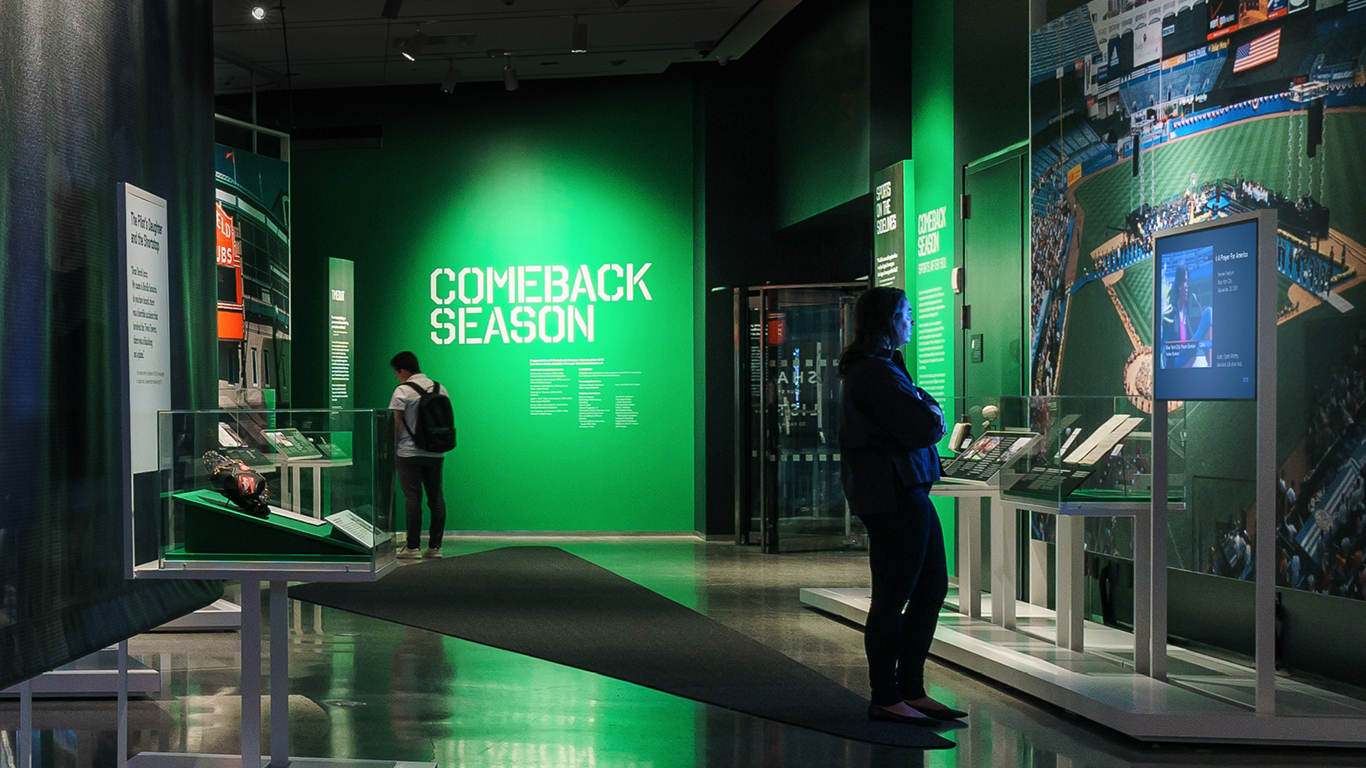 C&G Partners (with a team led by Daniel Rodriguez) was tasked with the exhibition design, graphic design, and sound & media production for Comeback Season: Sports After 9/11 at the National September 11 Memorial & Museum in New York City.