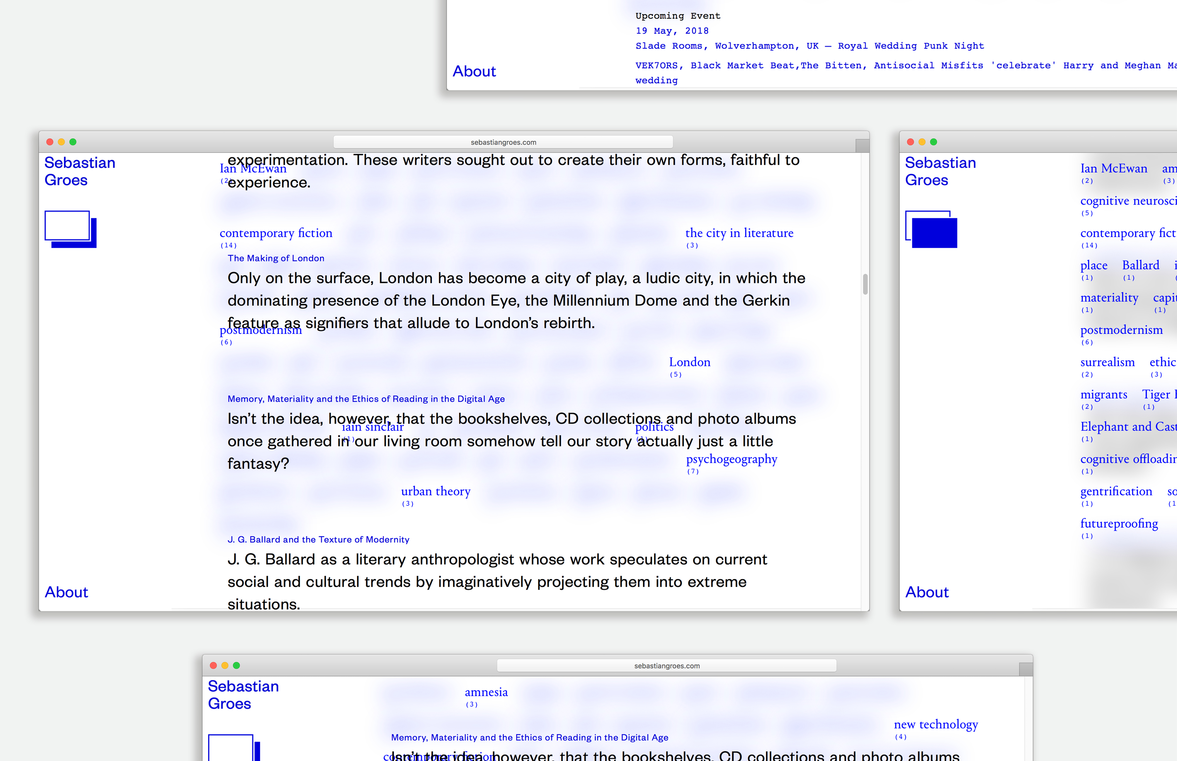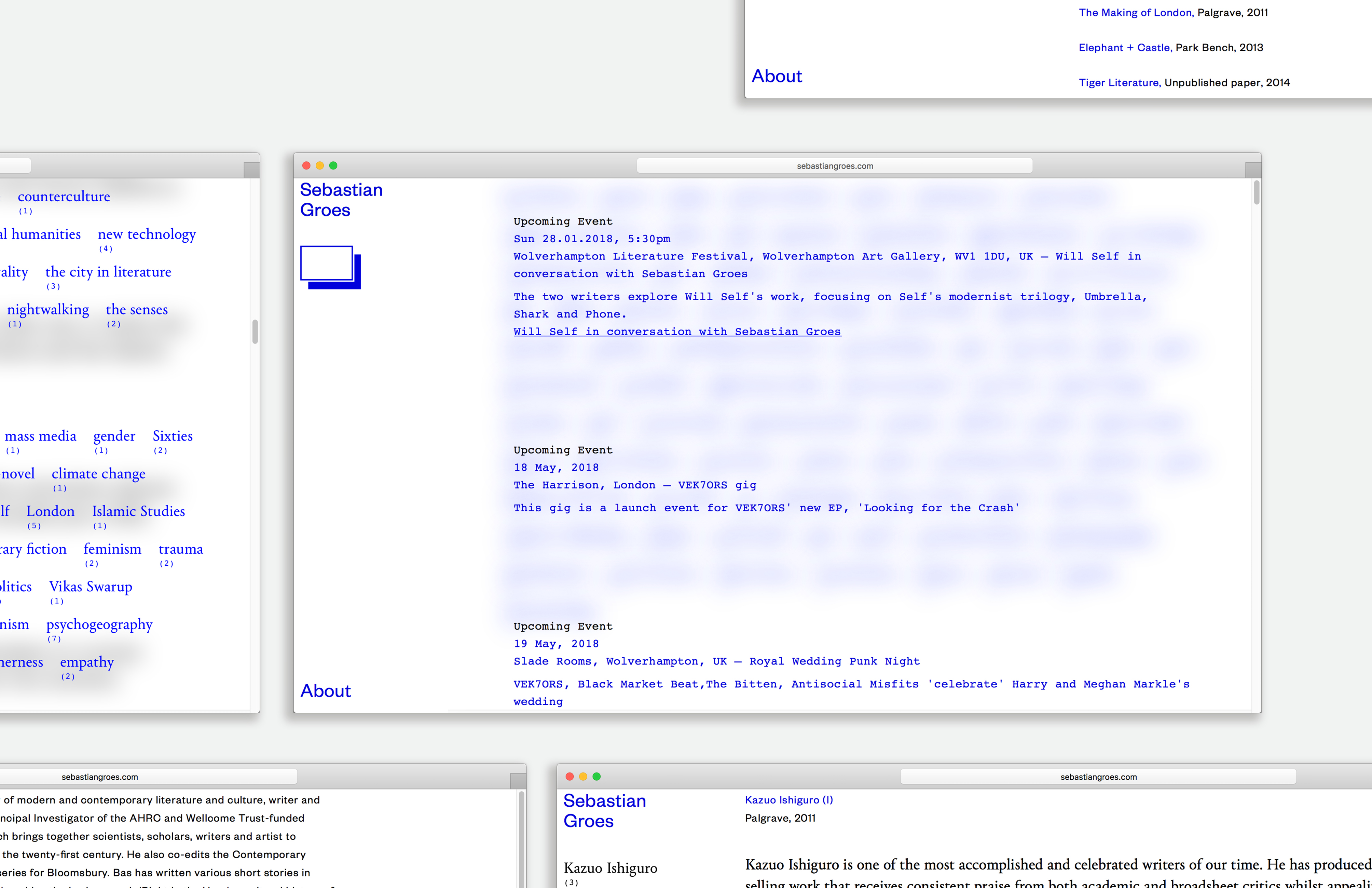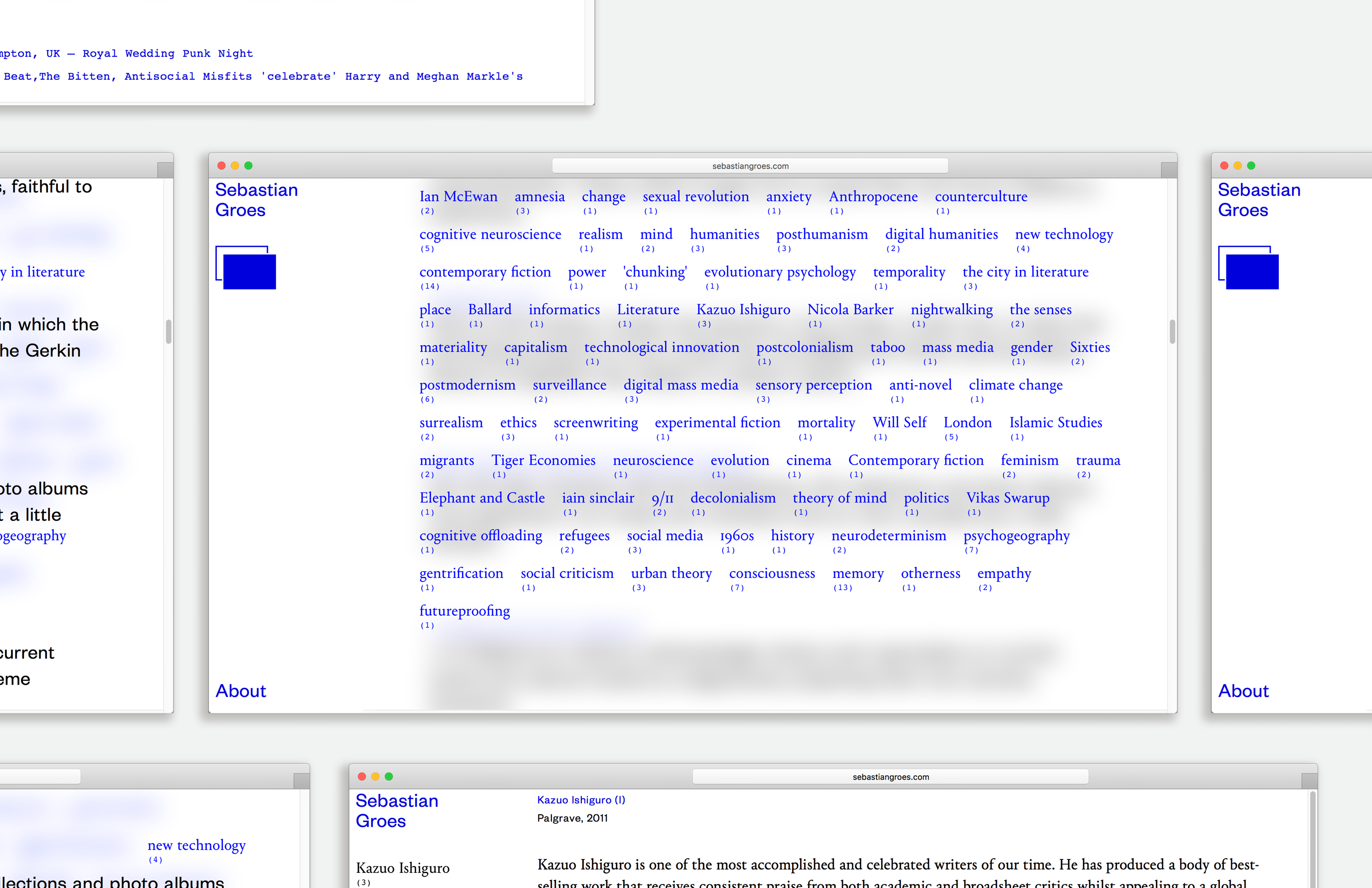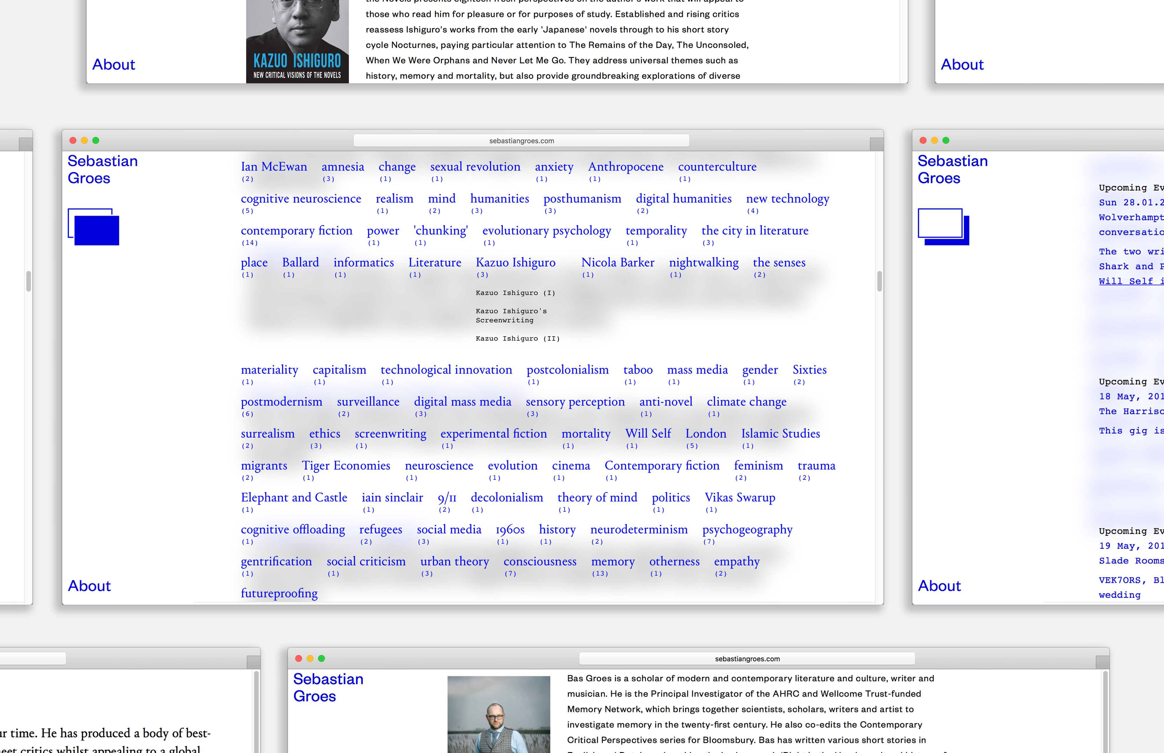 The website collects all texts that the writer produced and it divides it in keywords and quotes. The users can interact with one or the other side of the archive. The transversal dialogue is aiming to generate new ways to discover the content and information.