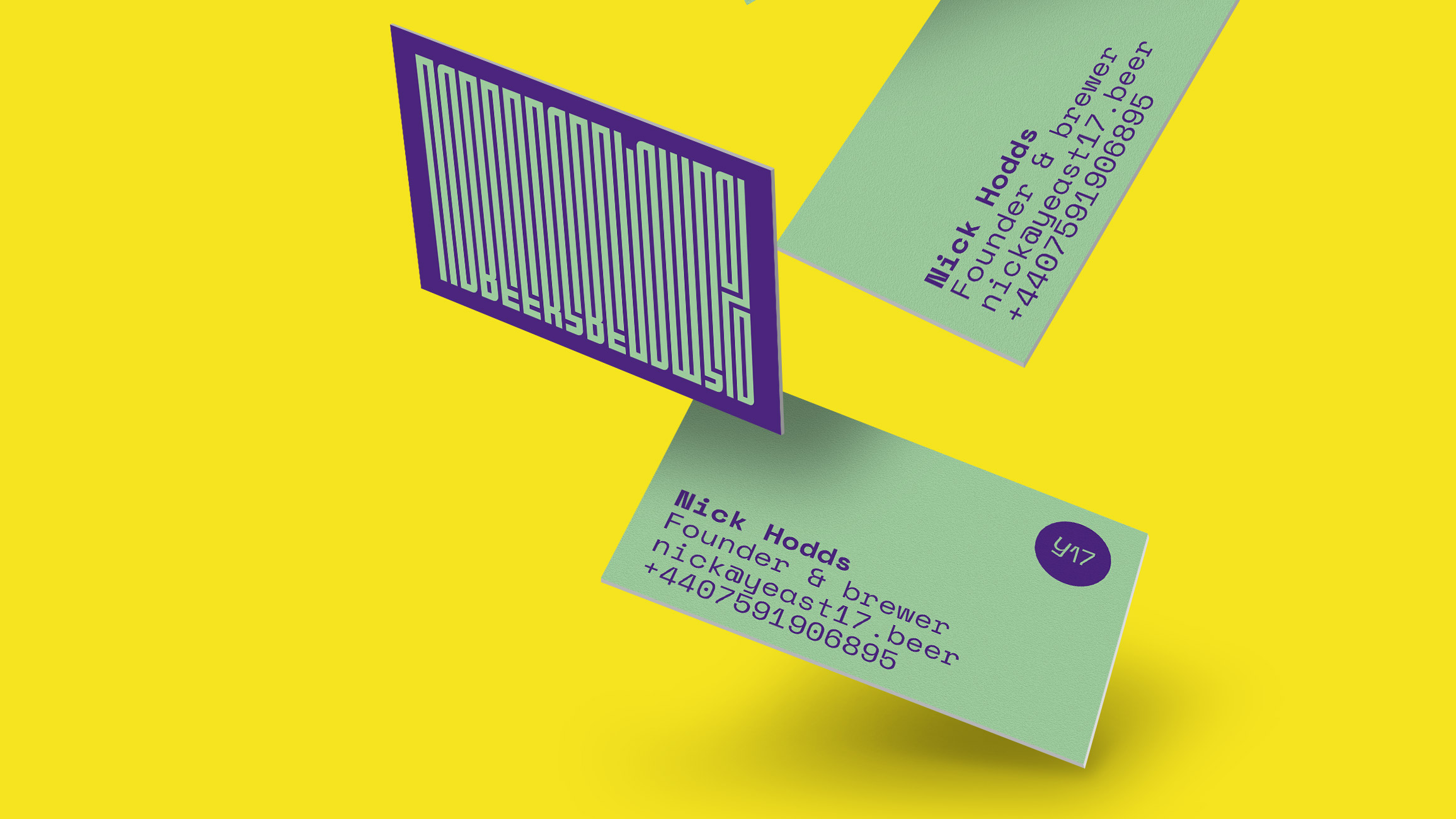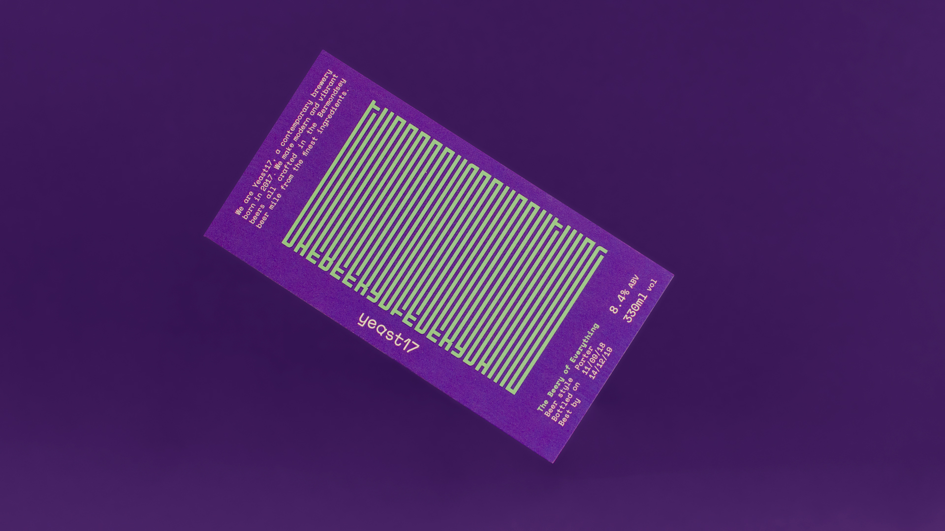 The logo and all supplemental text are set in Colophon’s Space Mono. The type in the logo is customized with a few of the letters rotated, underscoring Yeast17’s irreverent style.