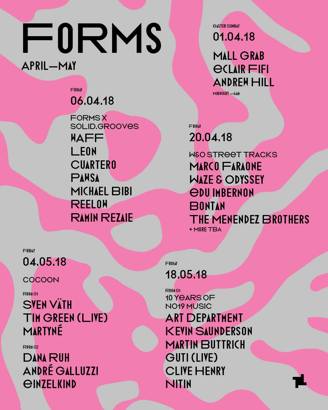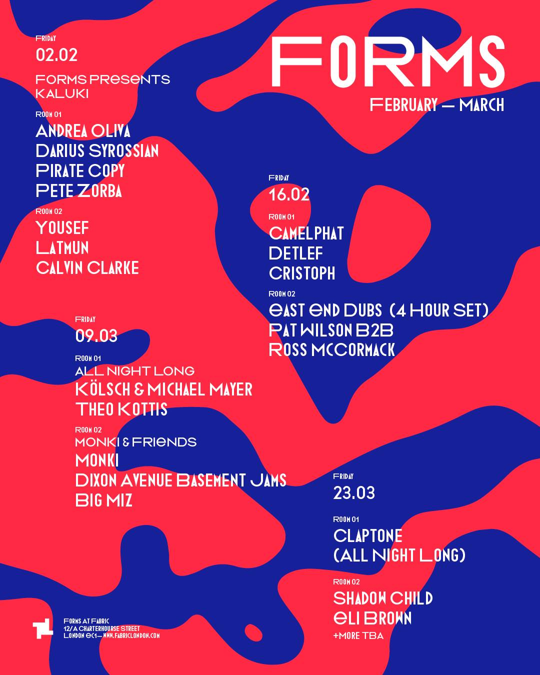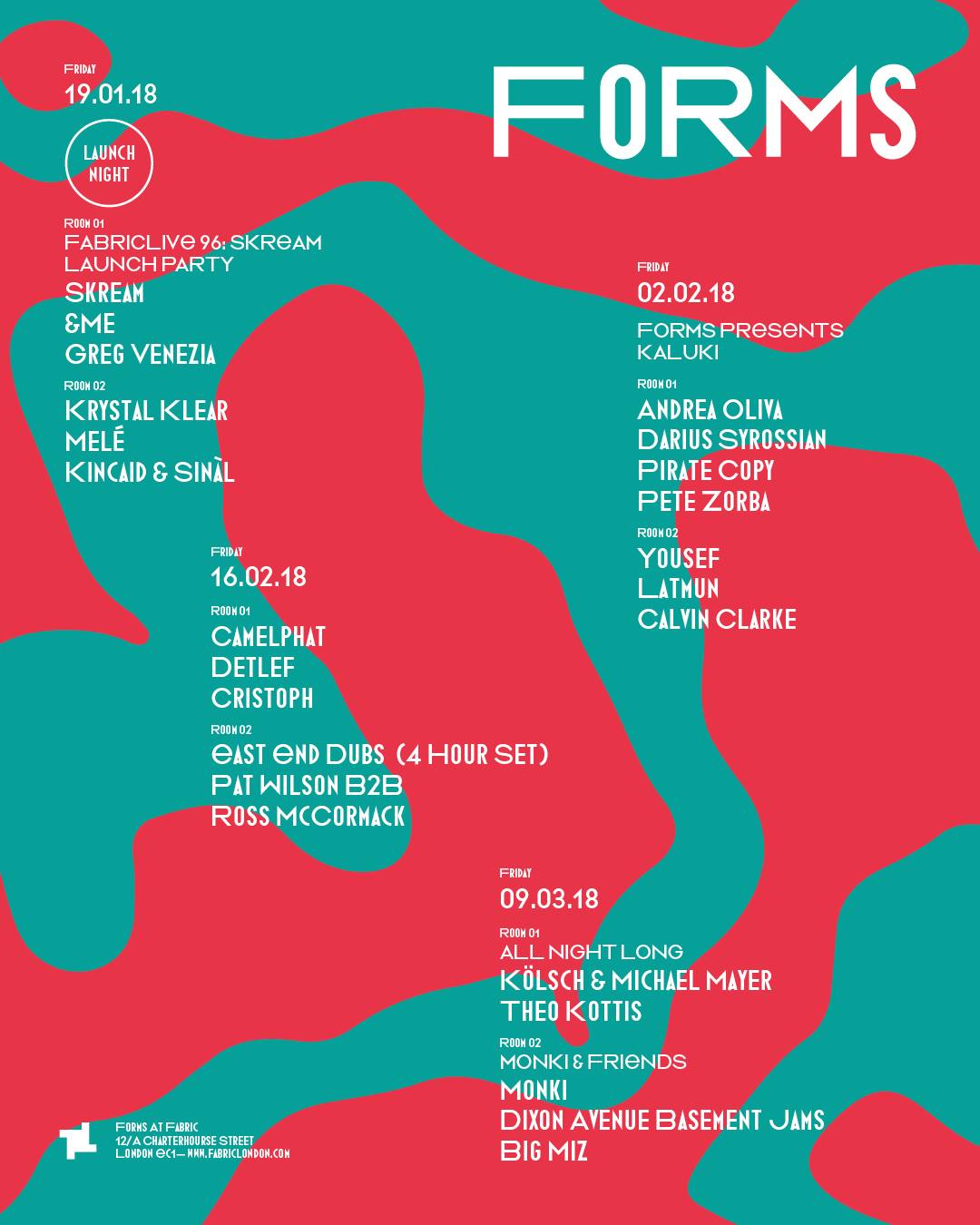A series of events at London nightclub Fabric. Starting in January 2018, Forms showcases ‘some of the most exciting and influential names from across the house music spectrum’.
