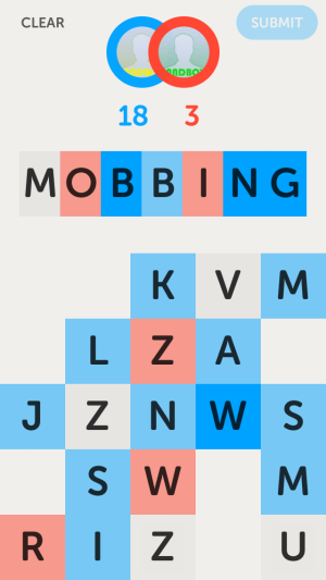 No, ink-and-paper fans, this has nothing to do with printing. Released yesterday, Letterpress is a brilliant game for iOS that combines elements of word games like Boggle or Scrabble and territory strategy games like Risk or Strategery. A rounded geometric font with relatively normalized letter widths is a good choice for the game, but there are better options than Museo Sans Rounded, which has some awkward spots (especially at the end of angled strokes) that possibly result from automated rounding or a radius that is too small for the heavy weights. I would have gone with Proxima Sans Soft, Gotham Rounded, or FF DIN Round. Still, Museo Sans is a decent foundation for the tile letters and the rounded version lends a friendly tone to the game while remaining perfectly legible.