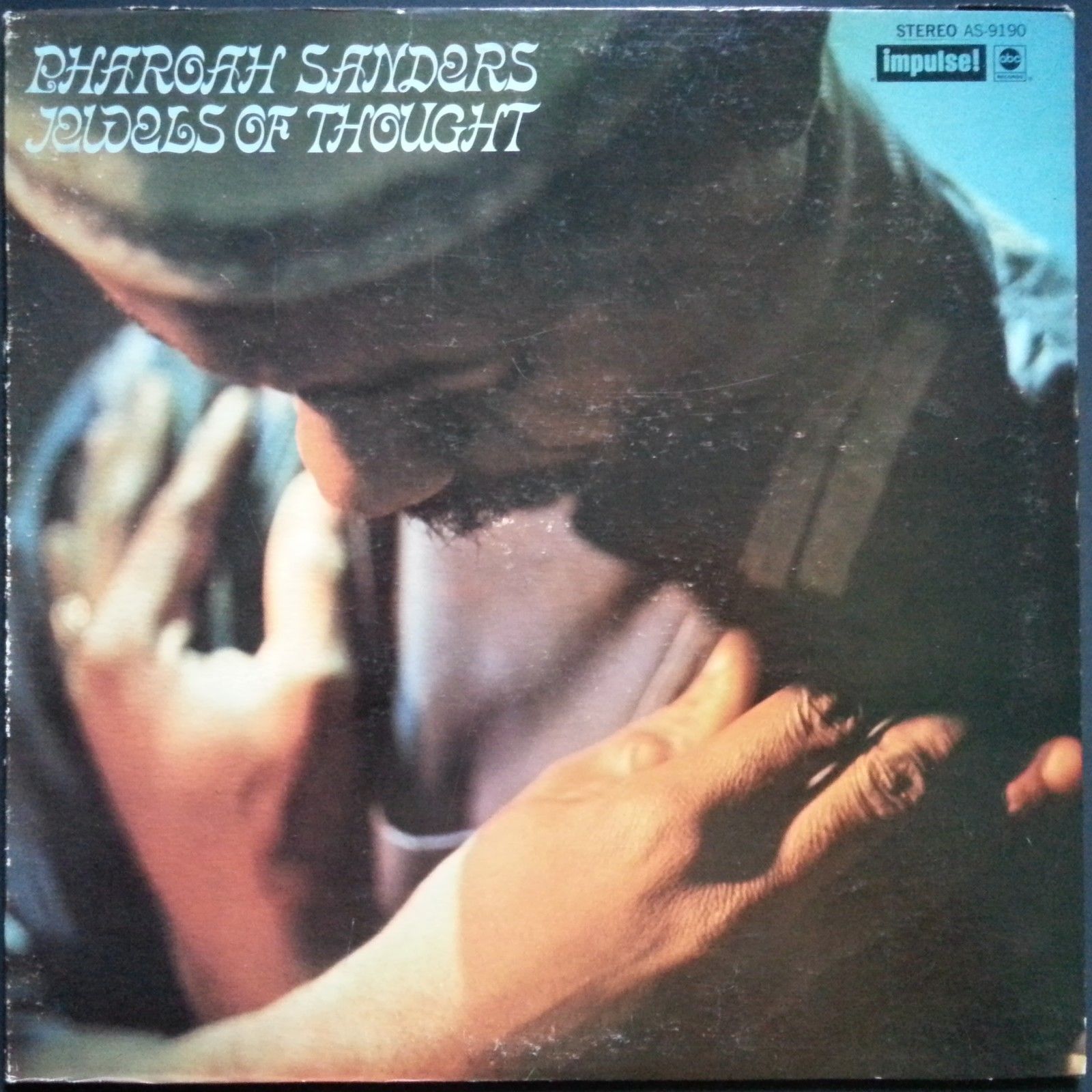 Jazz saxophonist Pharaoh Sanders got his nickname from his grandmother and was encouraged to use it as his professional name by Sun Ra, whose band he played with in the 1960s. Sanders’ distinctive name and East African style of dress likely influenced the design of his albums, which often featured stereotypical middle-eastern motifs. (See especially Karma, with fantastic lettering by Robert & Barbara Flynn.)