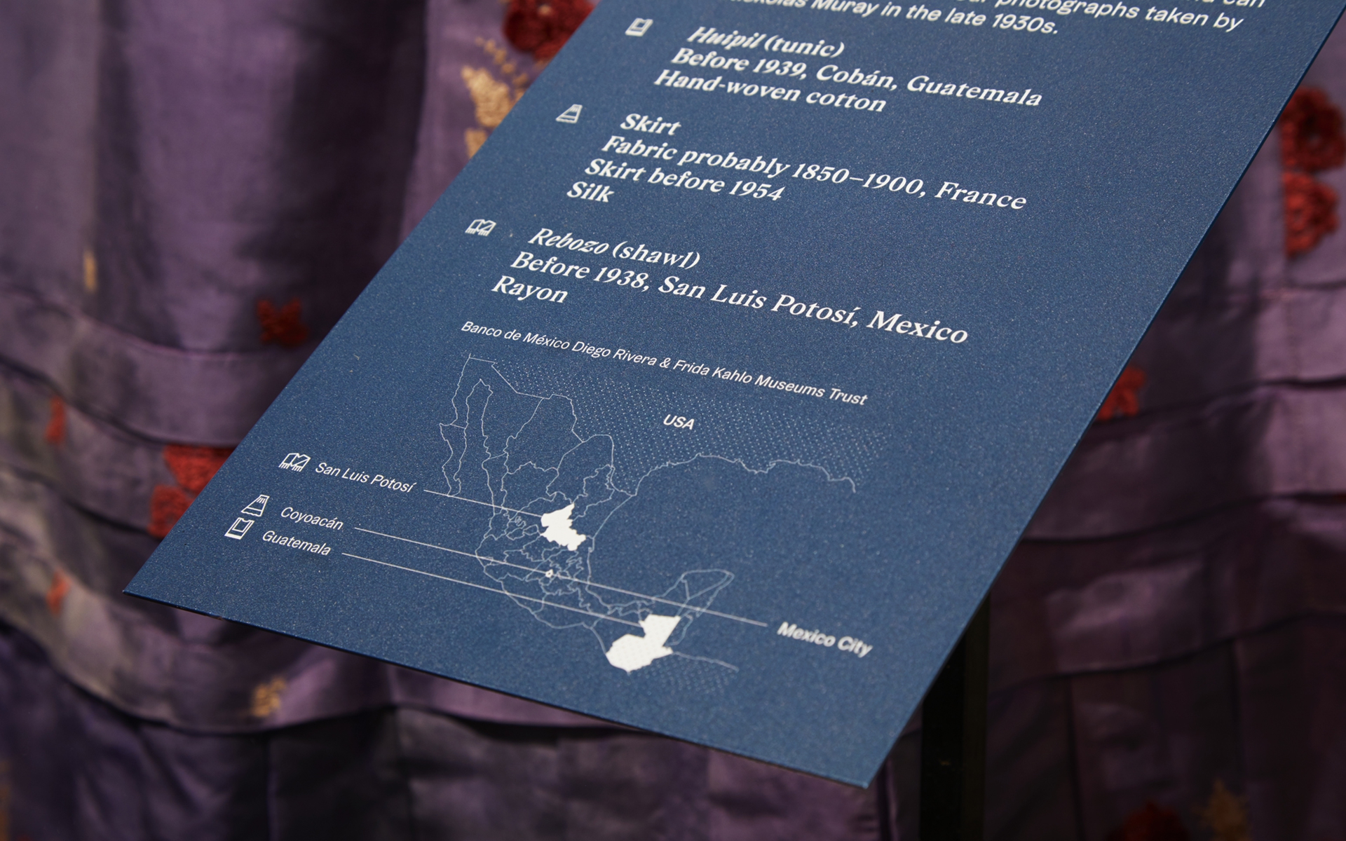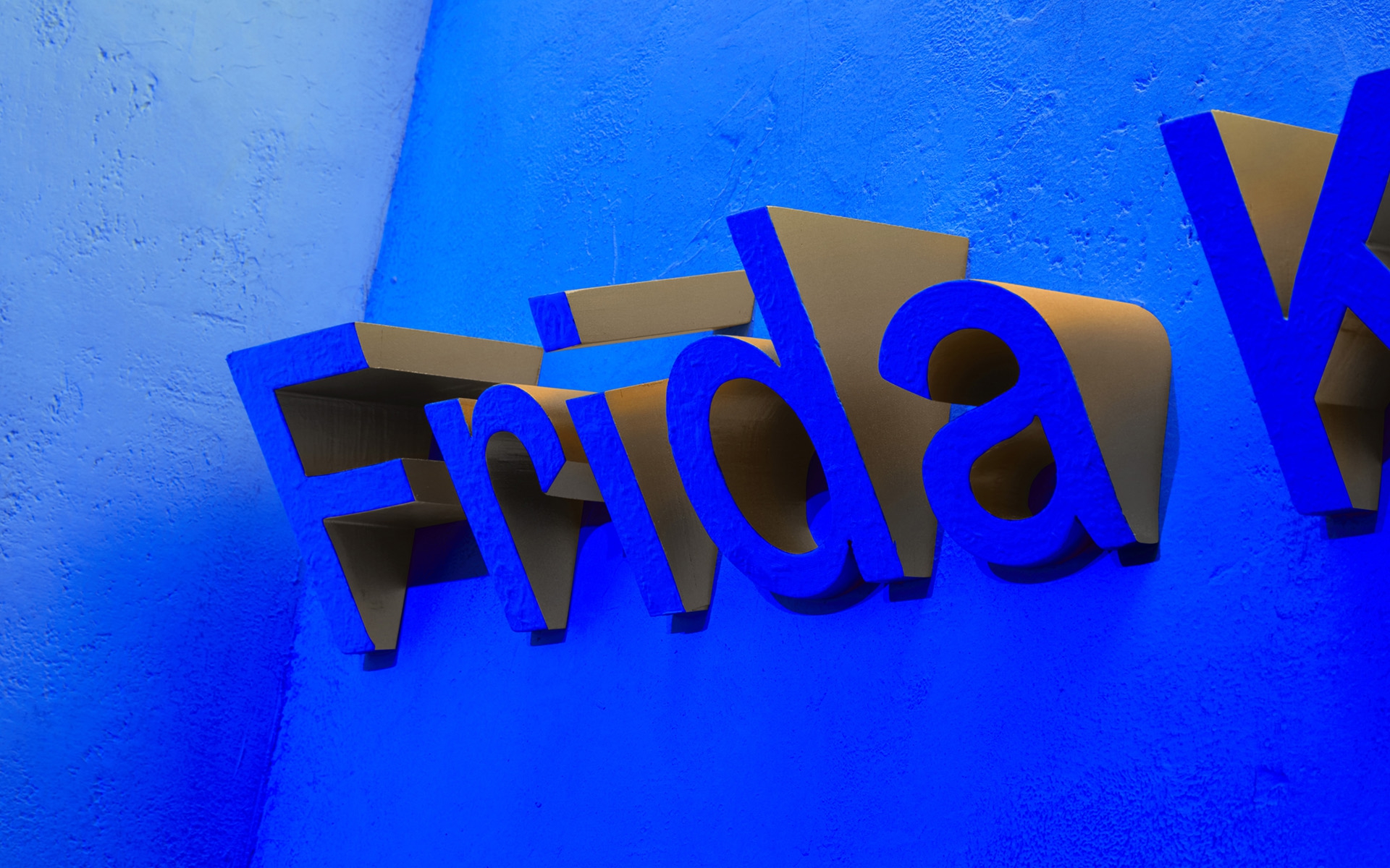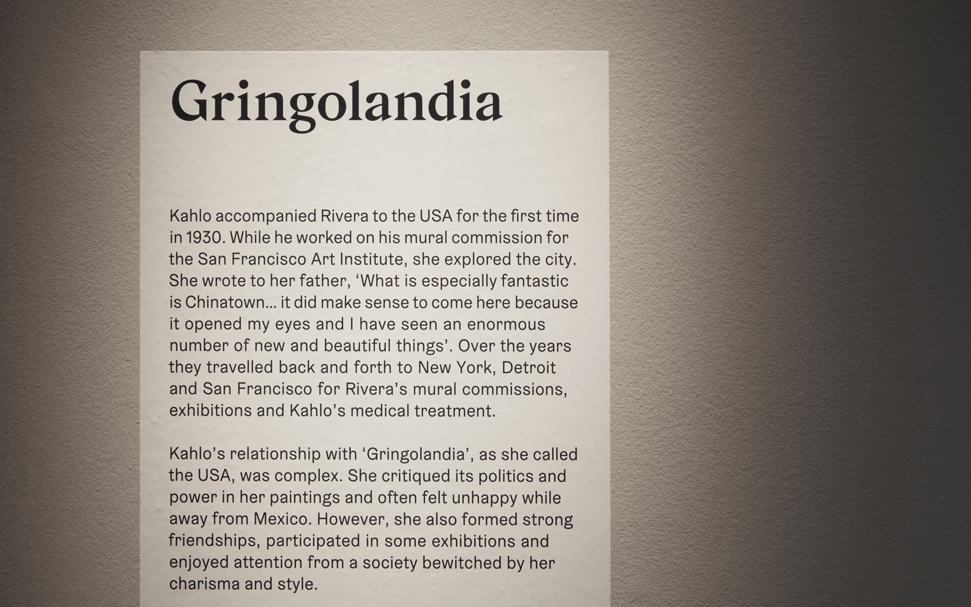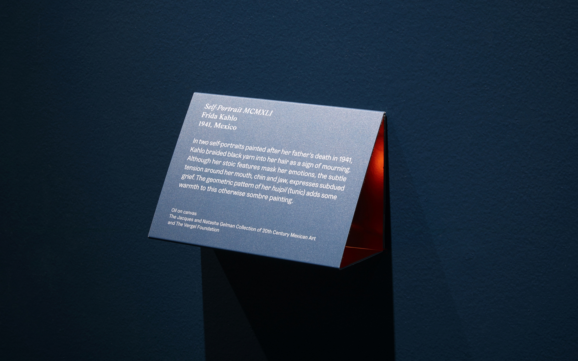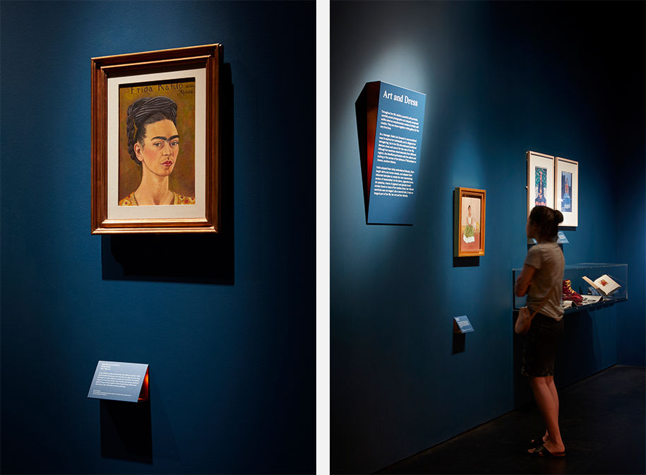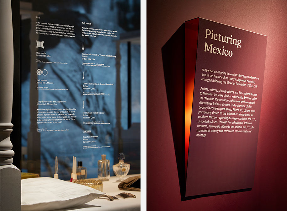 Considering that Frida Kahlo spent much of her life in a wheelchair, Tom Scutt and the architects also wanted the exhibition to be really inclusive. We found a set of typefaces [GZA and Gråbenbach] with elements that echoed the angular shape we were looking for, but we then had to consider how the type would look and read to someone in a wheelchair.