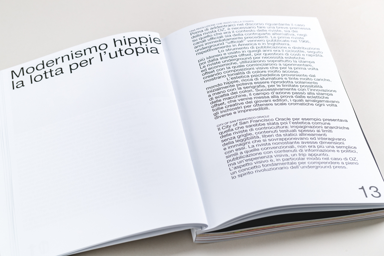 This book is the result of a personal research about this special magazine and its impact on the editorial world. OZ deals with the 60s and 70s and the social, political, artistic and cultural events that have defined the counterculture both in Australia and Europe. The outrageous contents of this underground reflected the achievements of a new society which was in conflict with the official power. The graphic layout was subversive and innovative. These publications helped to revolutionize the aesthetics of modern society. The project shows histories and stories of one of the most controversial underground magazine ever and it was realized for the Illustration and Photography’s History class at ISIA Urbino.