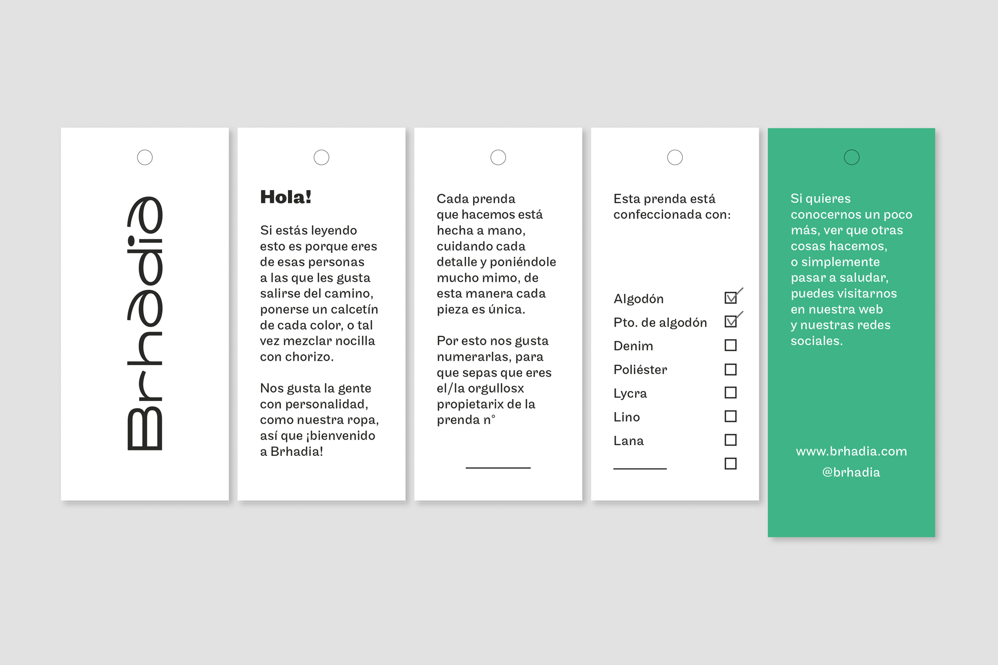 Brhadia is a new clothing brand thought for those people who like to move off the path or put on a sock of each color. For those people with personality. As every person is different, every piece is unique too, so each garment is made by hand, taking care of every detail and putting a lot of care on it.