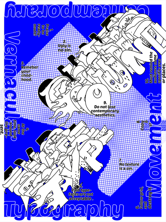 Typ-ound is designed entirely with free fonts from dafont.com. The poster is a living manifesto through its composition: it suggests that the usage and typesetting of fonts results in an interesting aesthetic, regardless of a font’s imperfect or rough finishing. The Typ-ound manifesto includes the following: