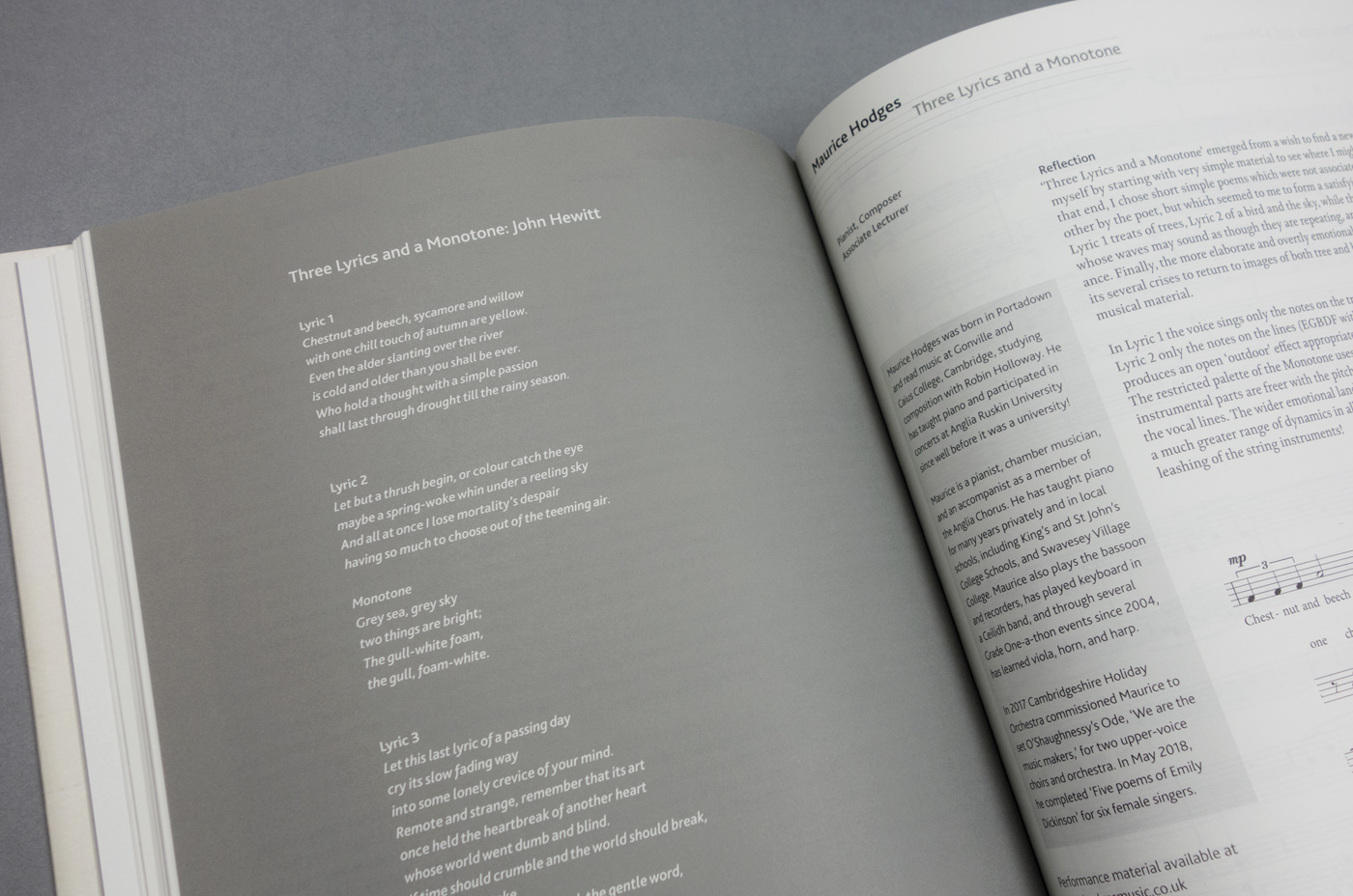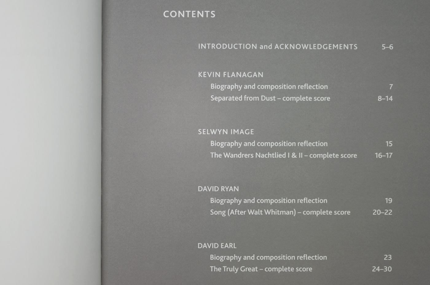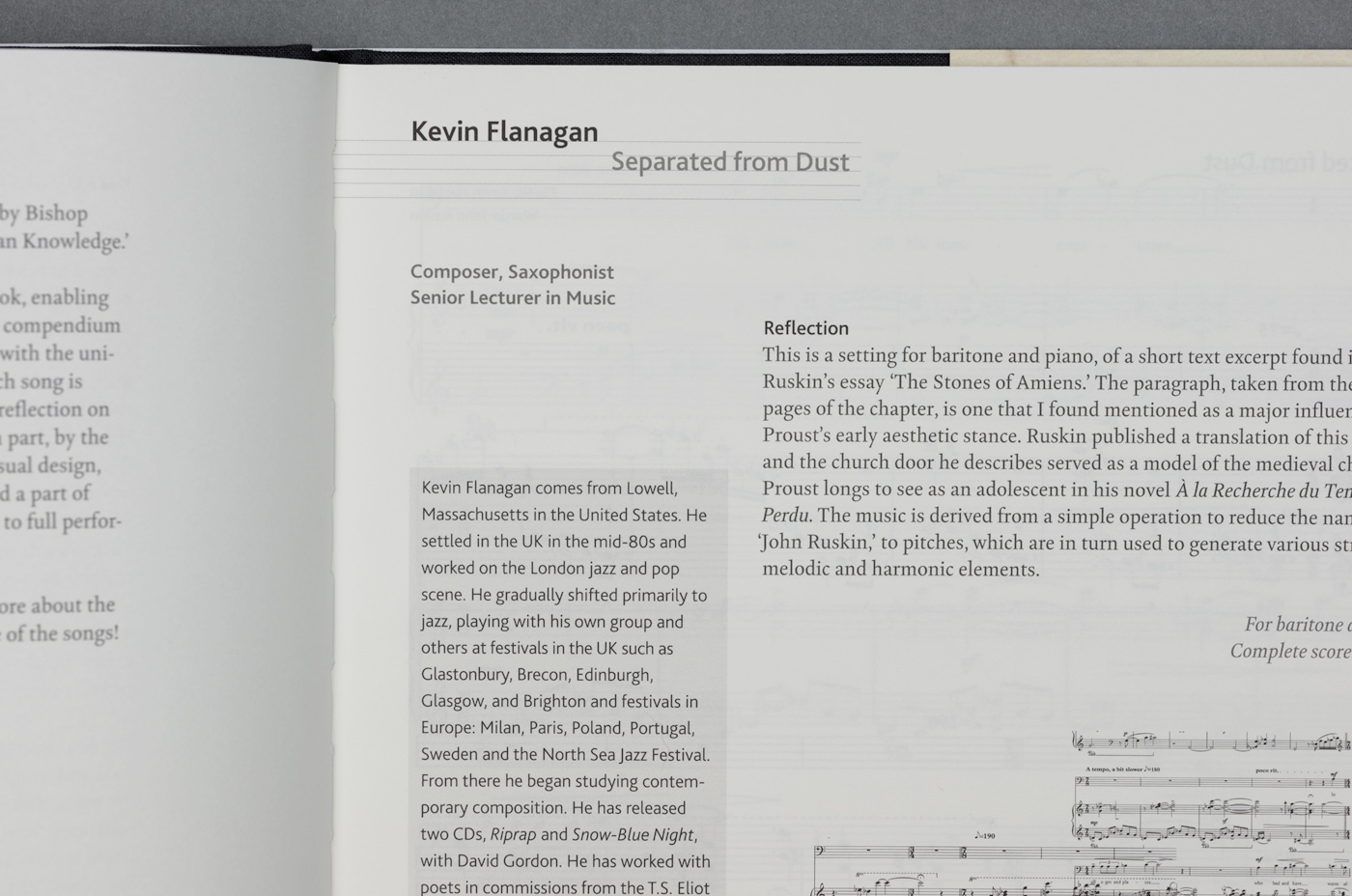 The Ruskin Songbook was commissioned to celebrate the 25th anniversary of Anglia Ruskin University. The songbook contains 15 new compositions inspired by the writings of John Ruskin. The book uses Kingfisher as the main text face with Bliss for titles and information panels. Edited by Paul Jackson and Jane Boyer.