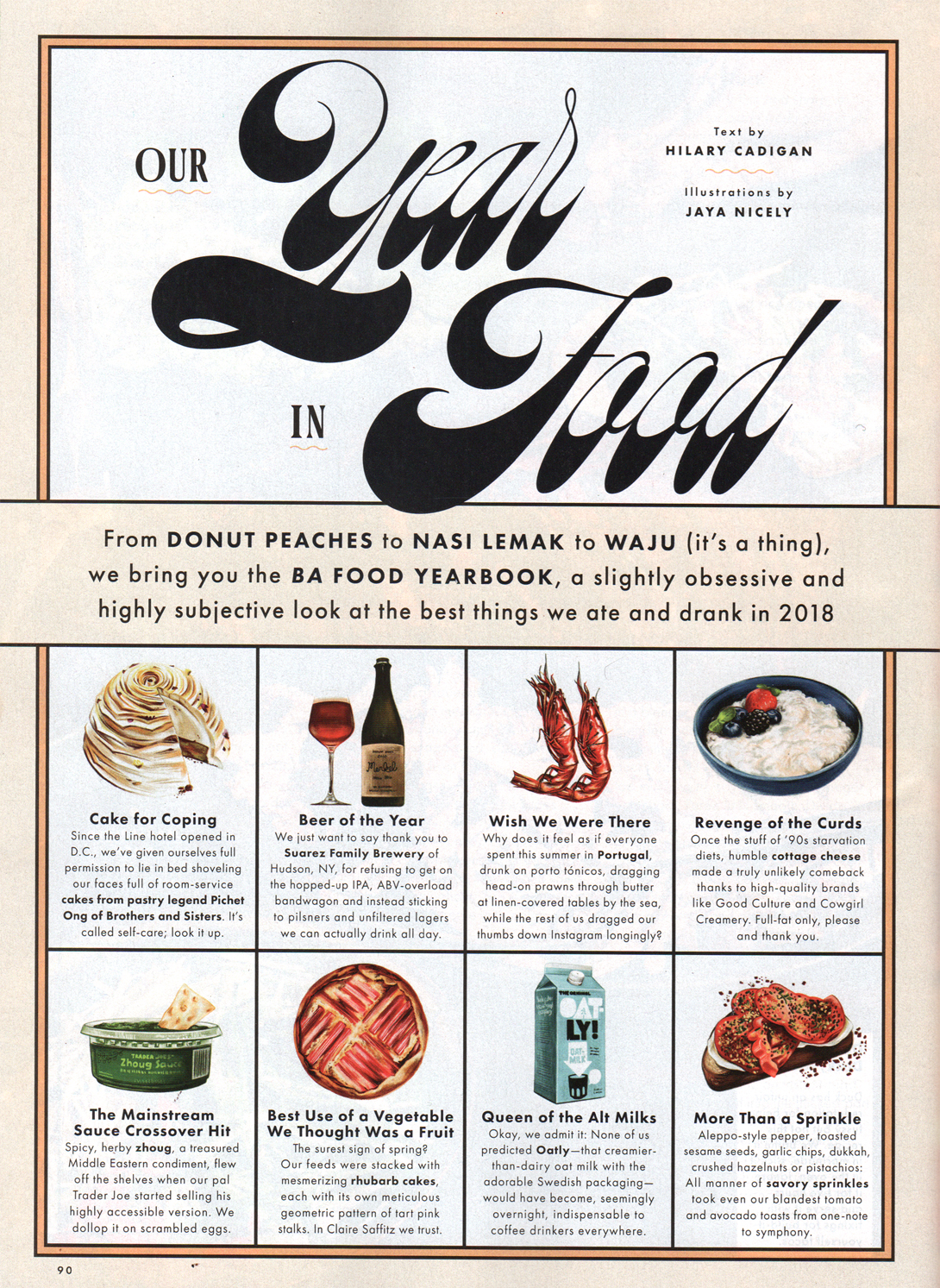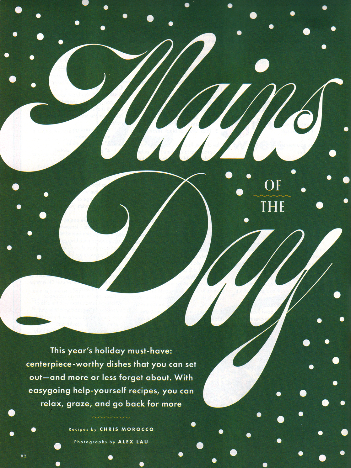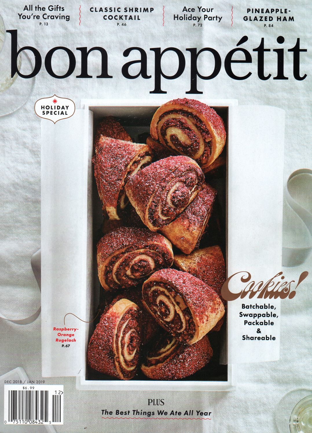 The Holiday Special of Bon Appétit magazine from December 2018 makes prominent use of Beatle (Lián Types, 2014), a contemporary homage to bottom-heavy scripts with high contrast like Gonzales Jeanette and Brandywine. In the words of type designer Maximiliano Sproviero: