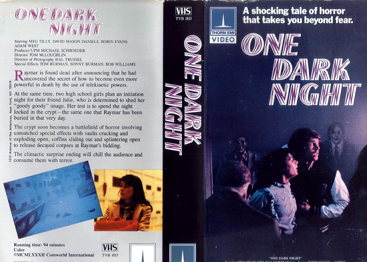 One Dark Night is a supernatural horror film directed by Tom McLoughlin and starring Meg Tilly, Melissa Newman, and Adam West.