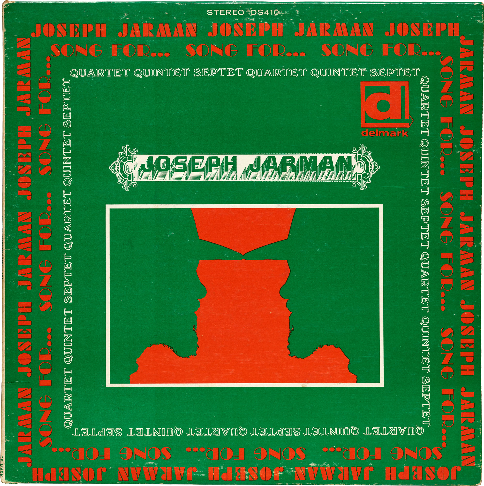 Among her album designs, the cover for Joseph Jarman’s Song For… is the most elaborate and typographic, making modern use of antique typefaces, including the Victorian-era Relievo No. 2 (1879) and Windsor Outline (1904). Futura Black and Broadway form a dizzying text frame. Unlike other albums of the time that either take on a cool, mysterious attitude with tinted monochrome photography, or a bouncy, energetic character with kinetic type, Abernathy takes a different approach. By only using contrasting colors of red and green, she produces a vibrating, psychedelic effect where their edges meet — echoed by the optically-ambiguous mirrored portrait in the center.