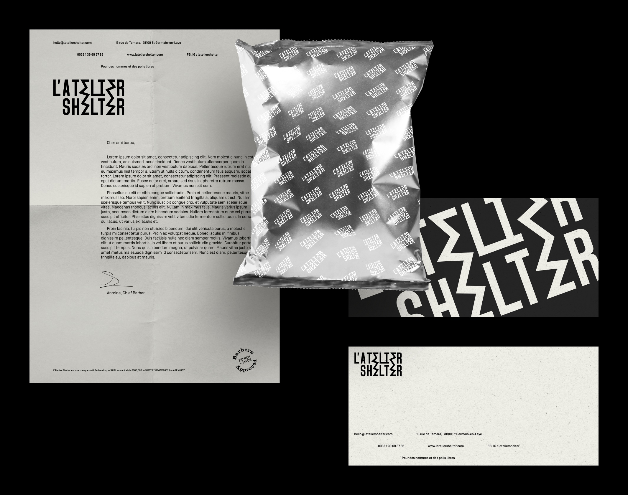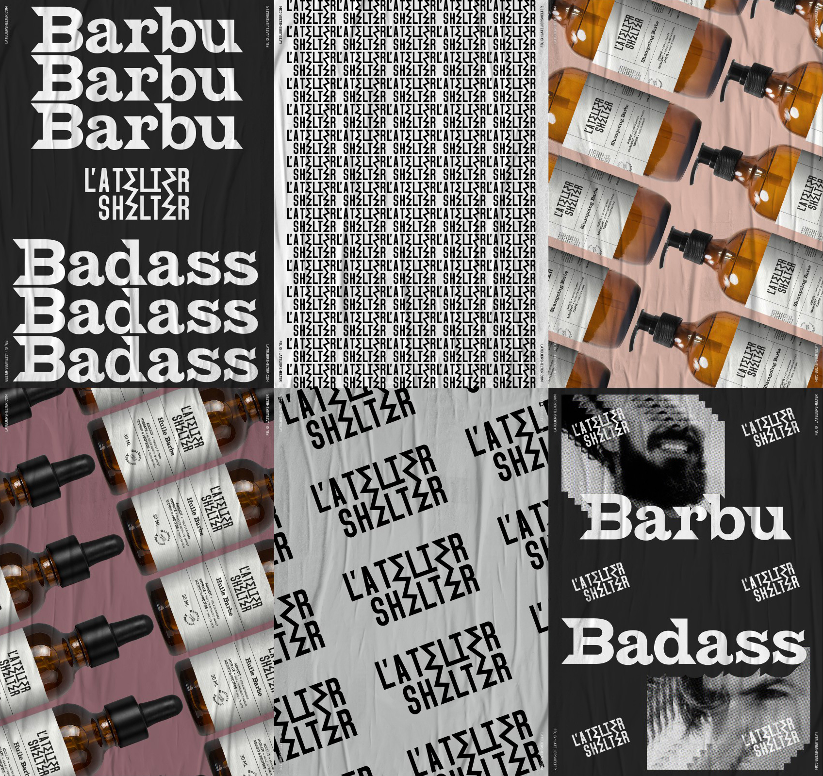 How to dress a new emerging brand at the crossroads of cosmetics, clothing and a rebellious and liberated mood, without making it a fabric of banalities? We have chosen the typographical path, working with unexpected associations around a typogram that encapsulates the character of L’Atelier Shelter.