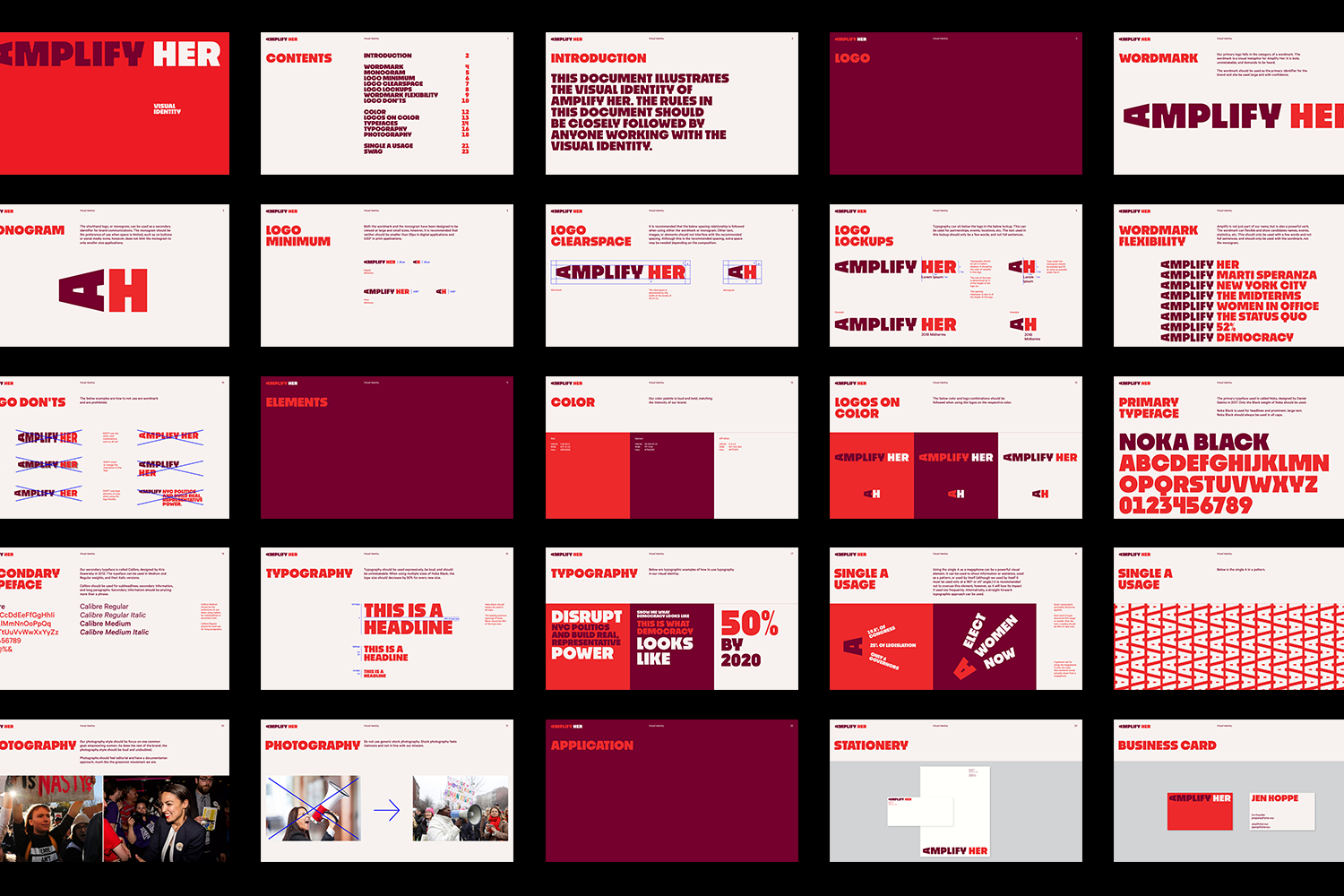 Amplify Her is a non-profit organization created to address women’s underrepresentation in public office. The visual identity designed by Sam Bumbalo expresses the bold and disruptive mission of the organization.