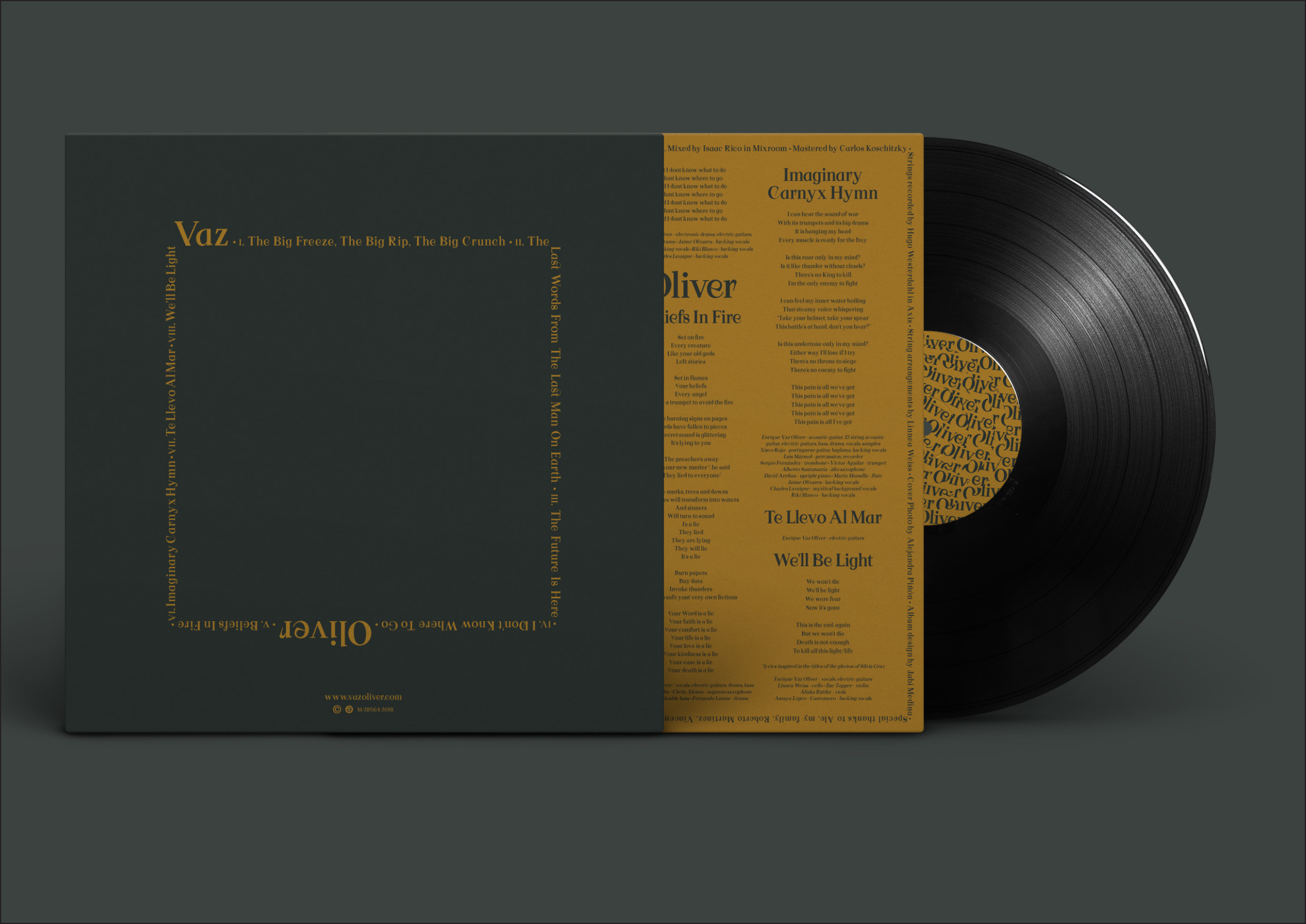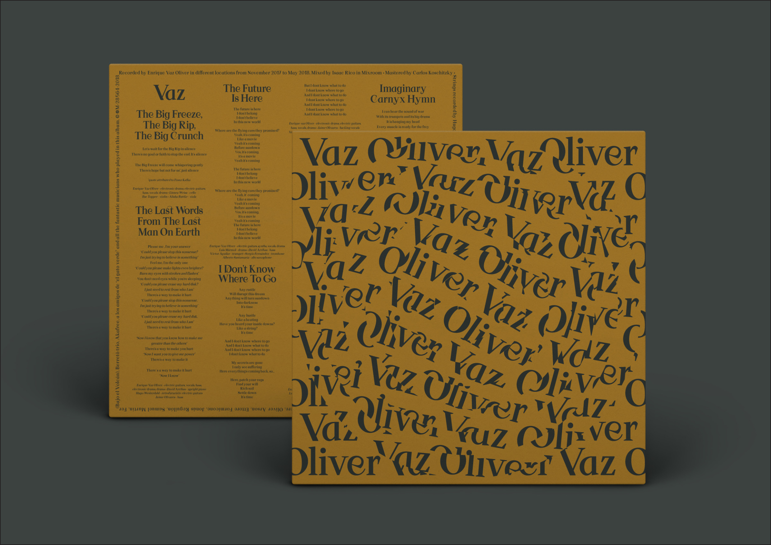 Design and art direction of Vaz Oliver’s new album. Design based on repetition, loops and dozens of sound layers that define the music of Vaz Oliver, a composer, multi-instrumentalist and live-looping artist from Madrid, Spain.