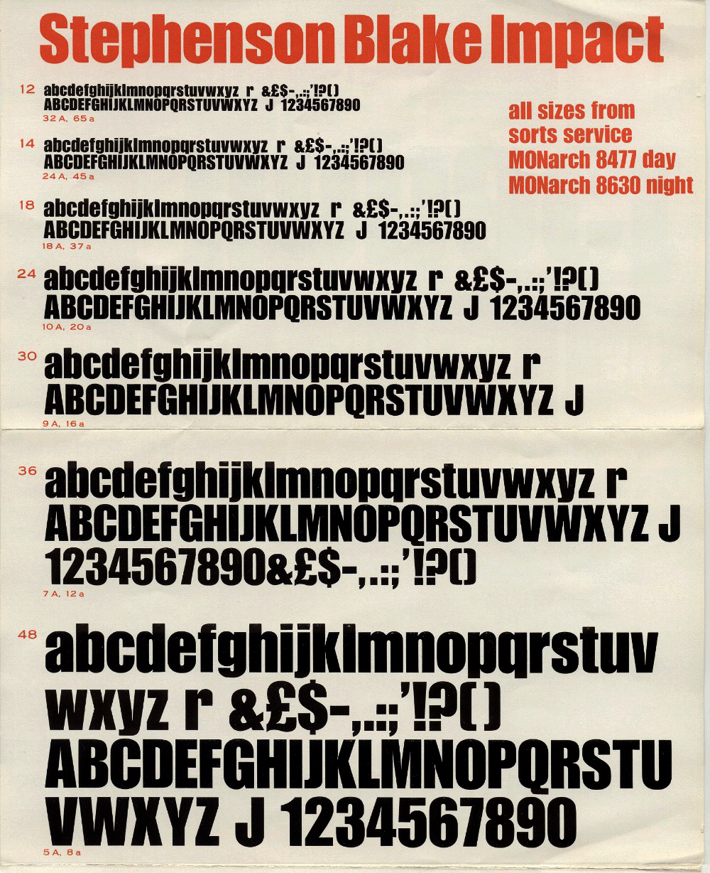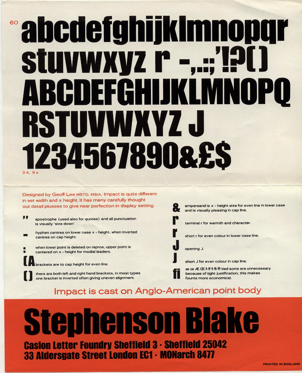 Geoffrey Lee, Impact’s designer, sent scans of the brochure to a user in a 2004 Typophile thread, in which he comments about the design under the username “gyl”. Later in the same thread, the pdf files were shared publicly by Geraint Franklin (“geraintf”).