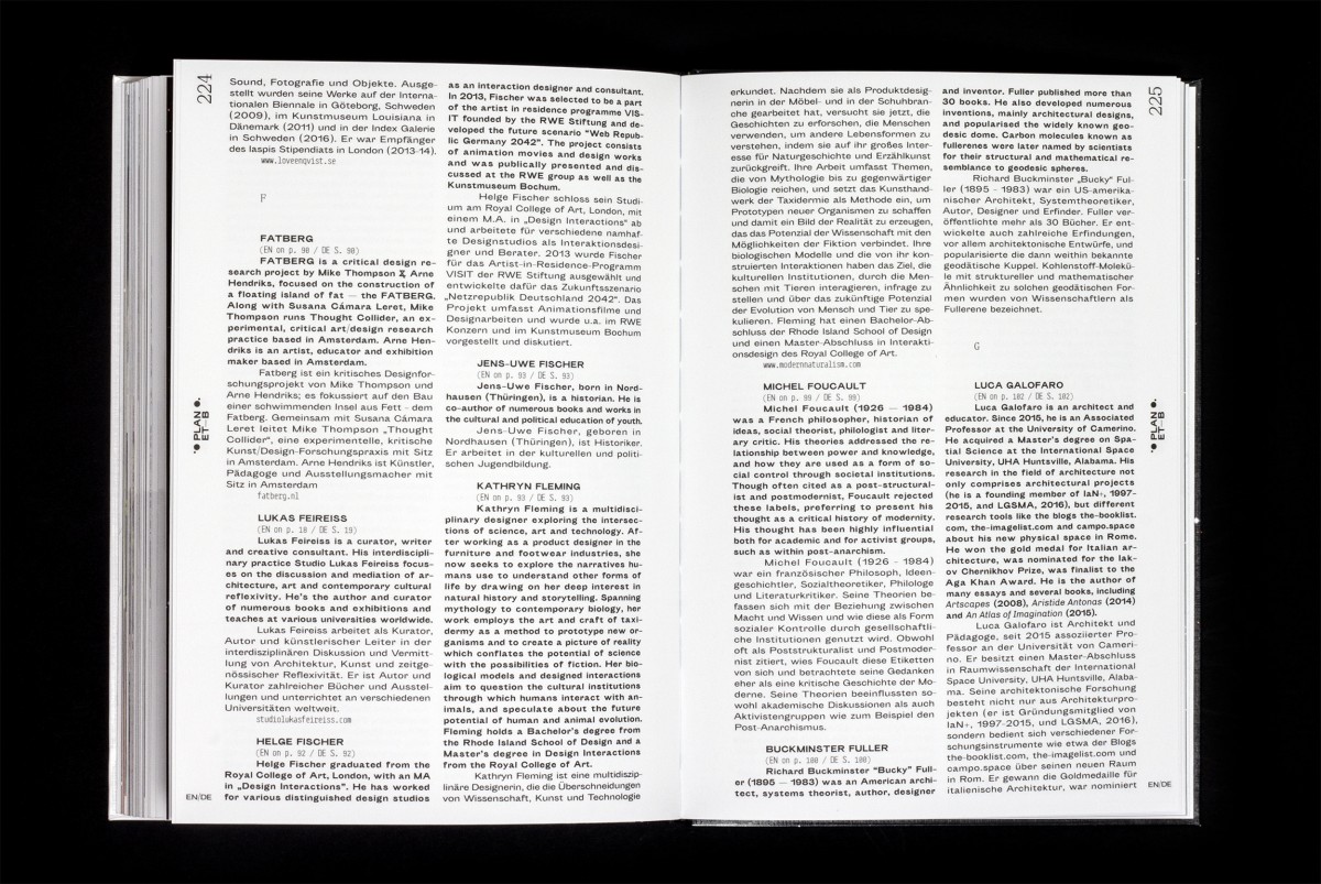 Contributions by Rachel Armstrong, Nelly Ben Hayoun, Ernst Bloch, Stewart Brand, Brad Downey, Kevin Kelly, Ray Kurzweil, Chusz Martínez, Niklas Maak, Lucy McRae, Philippe Rahm, raumlaborberlin, Tomás Saraceno, Space Caviar, Jakob Tigges, Friedrich von Borries and many more.