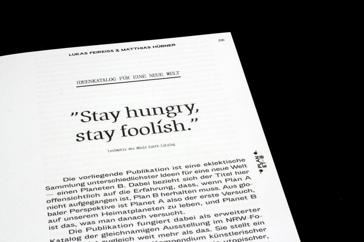 The publication accompanying the exhibition Planet B – 100 ideas for a new world is a collection of different ideas for a new world – a Planet B. The most visionary artists, designers, architects, writers and futurologists in the world present their political, poetic, odd and radical ideas for a new world. — NRW-Forum