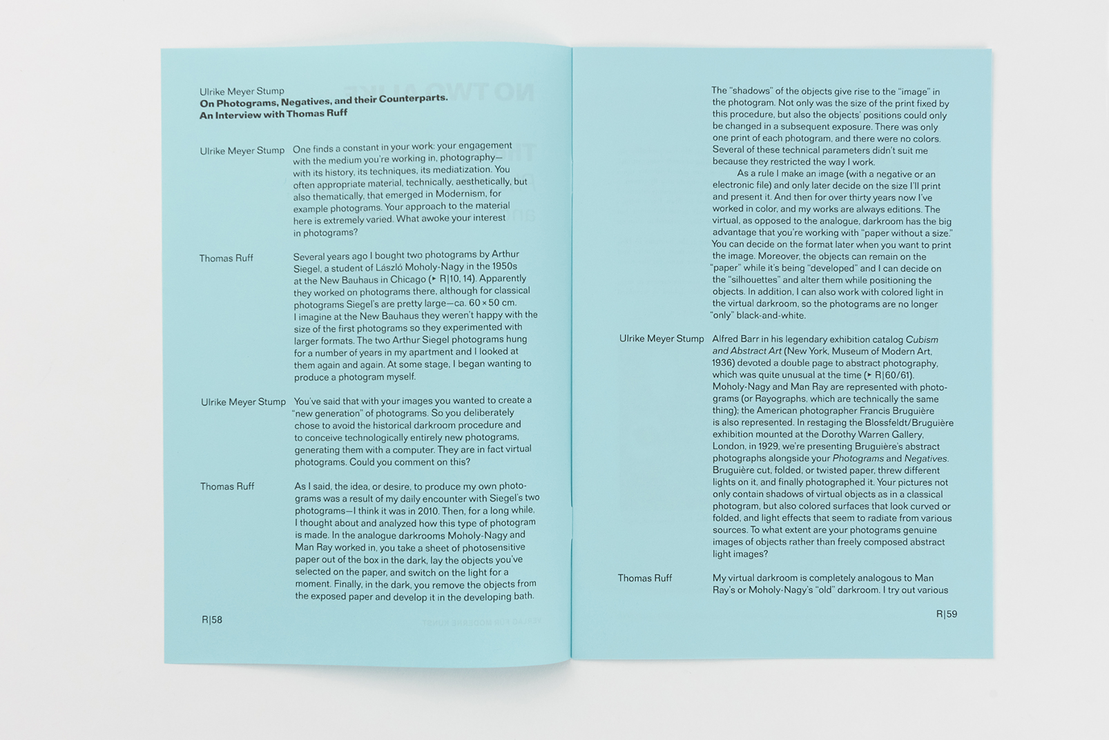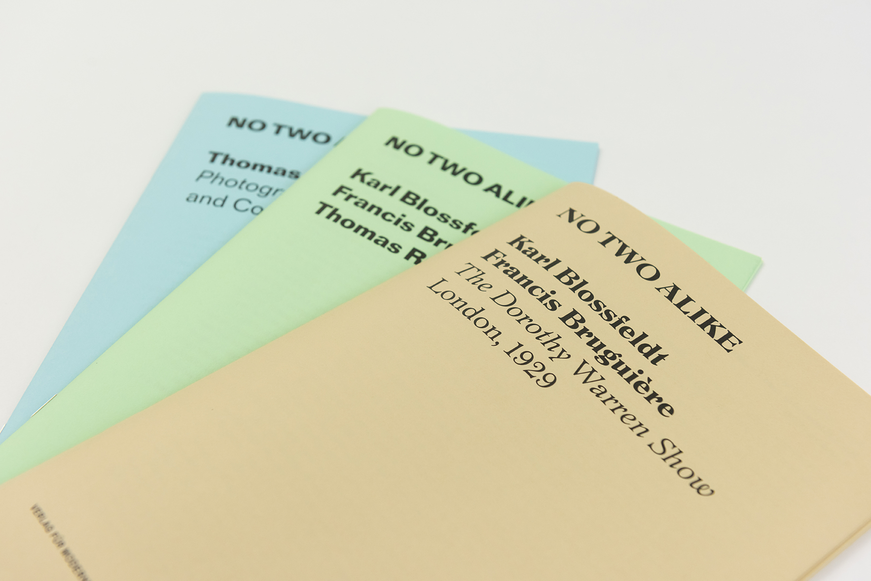 Karl Blossfeldt's, Francis Bruguière’s and Thomas Ruff’s mutual interest in the variant as a creative principle and the idea that each of these bodies of work presents a variant of the other is shown in the exhibition and also through the publication of No two alike.