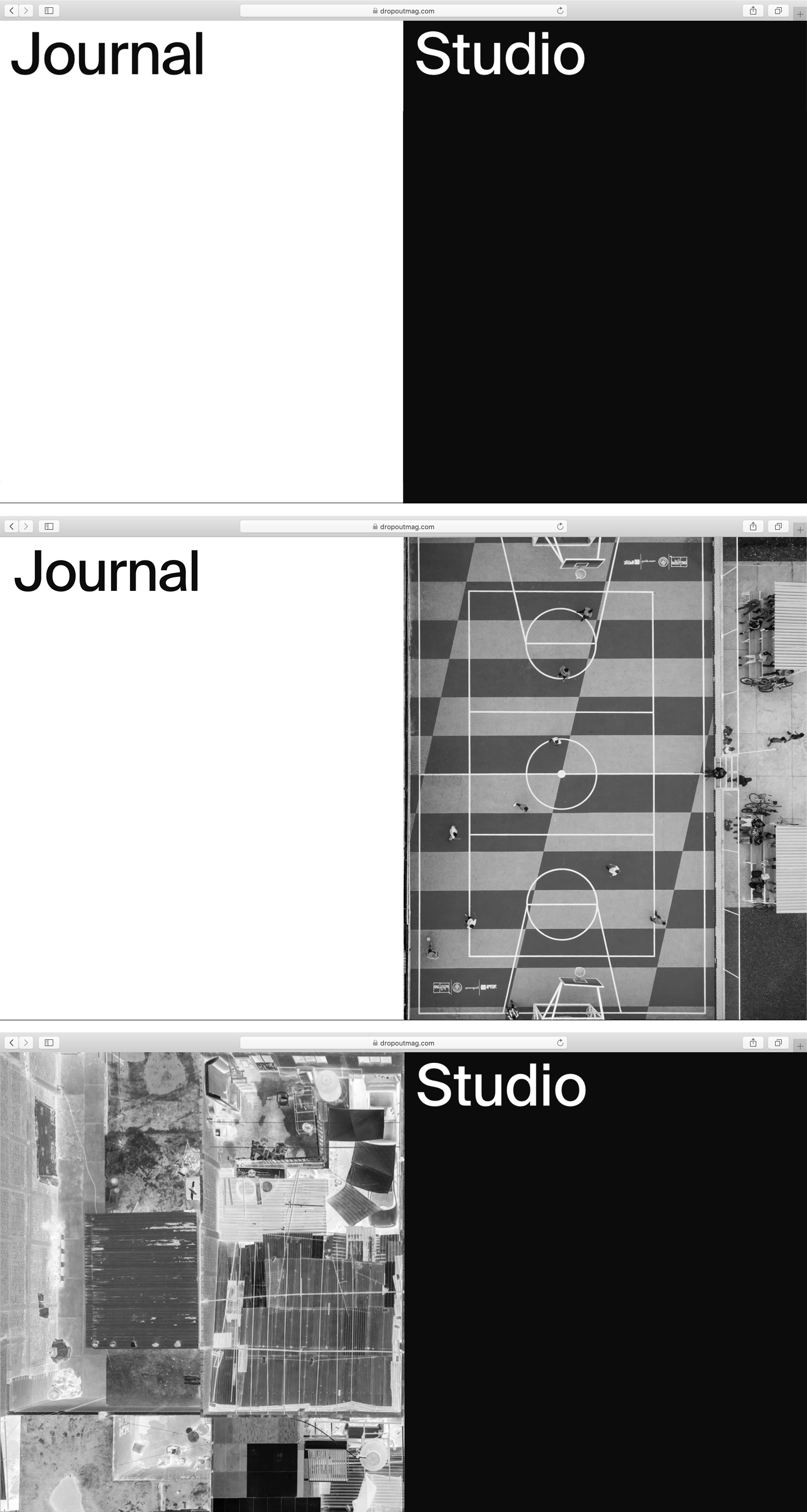 Dropout is a platform aiming to change the way we view and approach the worlds problems through creativity. We aim to create conversations and build solutions. A full description of our ethos, values and goals can be found in our Manifesto. Our site is split into two sections, the Journal and the Studio.
