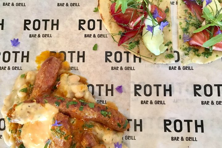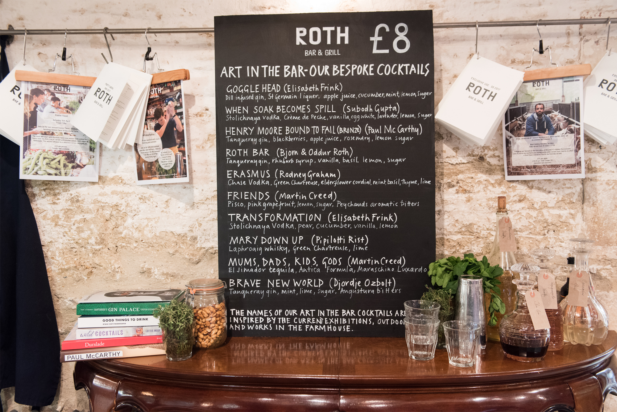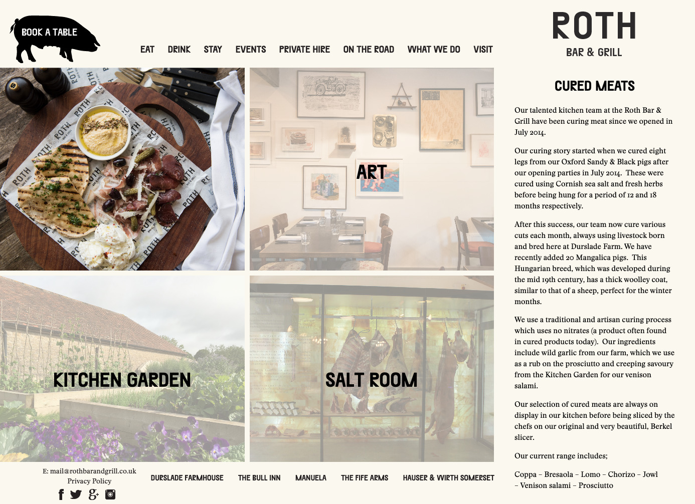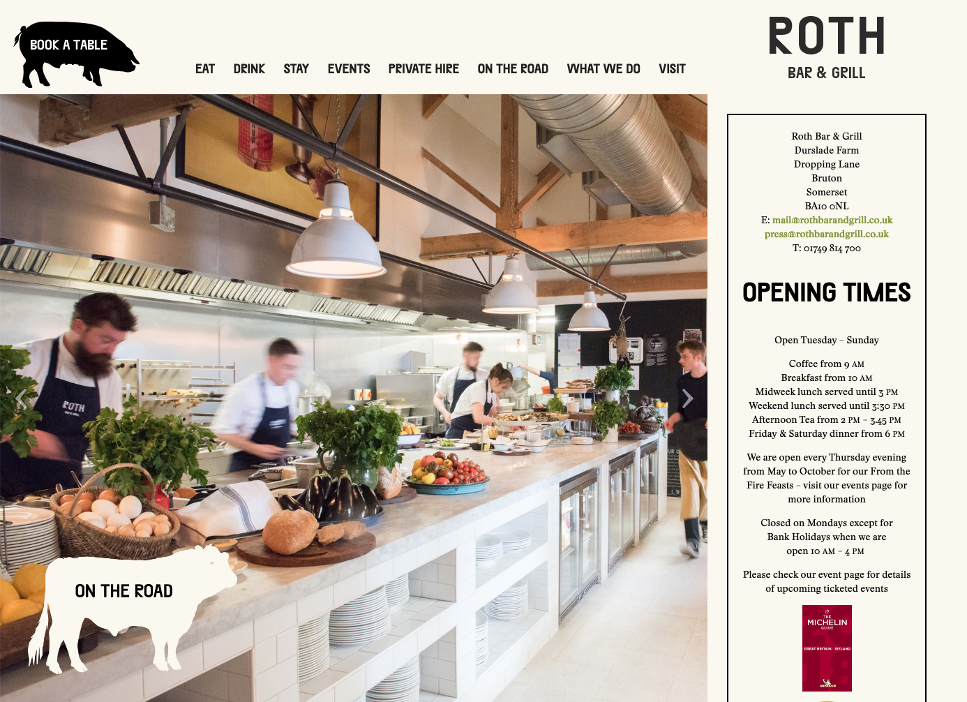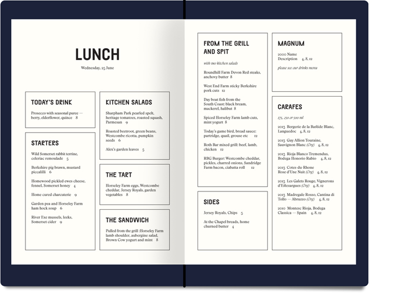 son and grandson of the late artist Dieter Roth. The chefs work closely with local farmers, gamekeepers and gardeners, to use entirely local and ethical British produce. A stone’s throw away from the Roth Bar & Grill, there are farms that produce fruit and vegetables and rear free-range livestock. The menu also includes wild birds and responsibly sourced fish that is delivered daily from the south coast shores. The kitchen team cure local