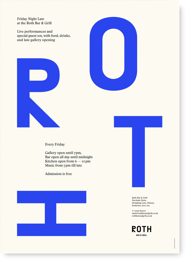 Separat and Stanley are used in the identity for Roth Bar & Grill, part of the Hauser & Wirth gallery in Somerset. From the website of Atelier Dyakova:
