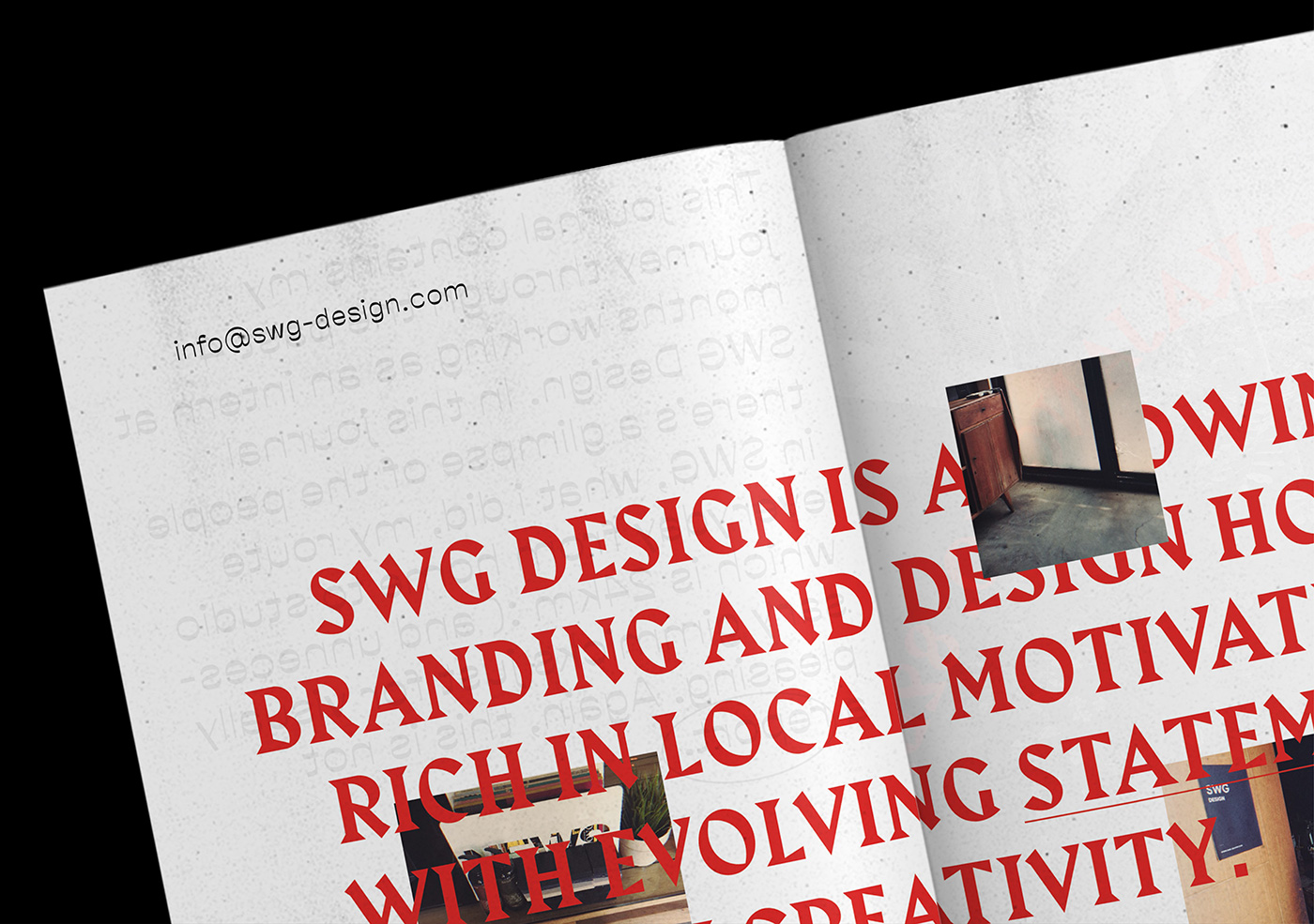 This Is Not a Report is a journal to express my personal gratitude to the people at SWG Design who, for the past 4 months, had accepted me as an intern. In this journal, there’s a glimpse of the people behind SWG Design, things I did while on my internship period, and also a photo documentation of my journey from home to the studio that was captured through Google Street View.