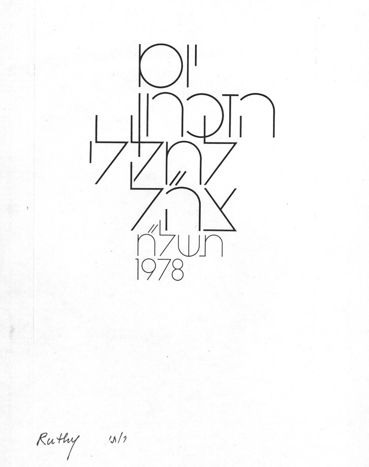 Yom HaZikaron (Memorial Day 1978) Contributed by Alon Tayar on Jun 4th, 2019. Artwork published in 1978. Source: www.flickr.com Misha Beletsky. License: All Rights Reserved. Zvi Narkiss’s poster for Israel’s 1978 Memorial Day events featured his new geometric sans-serif, Ruthy (רותי). Typefaces More about RuthyGet Ruthy Formats Posters/Flyers (5810) Topics Local (1594) Designers/Agencies Zvi Narkiss (1) Tagged withIsrael (22)1970s (1572)Hebrew (language/script) (62)memorials (28)one typeface (1758)stacked and interlocked (123)stacked and staggered (410)only type (1288)uses by the typeface’s designer (1284)black and white (2033)early uses (2269)tight linespacing (358) Artwork location Israel (55) Post a comment Name Email – will not be published Website Your response Submit Comment More in Local Zürcher Bahnhofstrassec. 2025HinderSchlatterFeuzContributed by Christian Thalmann wirksam inc. 2024BÖE studioContributed by David Einwaller Staff Pick Tom Raworth Project (Hackney Central Ideas & Impact Fund)2023PolytechnicMitre & MondaysContributed by Polytechnic Staff Pick Sponsor More in Posters/Flyers “Reality” animation and postersc. 2019Luca PaggioContributed by Brando Corradini El Diezmo poster seriesc. 2020Lolo LópezContributed by Lolo López 2017 moon calendar2017Johannes LangContributed by Nick Sherman Tyler, the Creator – Chromakopia album art and campaign2024unknownContributed by Alex Nguyen More Fonts In Use Same Bold Stories? catalog2024turbo typeLeonie MartinMasha EgorovaContributed by Giulia Boggio Staff Pick Nickelodeon logo (1984–2005)1984Tom CoreyScott NashCorey McPherson NashContributed by Stephen Coles Staff Pick Esfera2023Studio DobraContributed by Oudin Romain Staff Pick Perro Negro2022Invade DesignContributed by Bastarda Type Foundry Staff Pick Scientist – Direct-To-Dub album art2024Kai Damian MatthiesenContributed by Kai Matthiesen Staff Pick Lilly Wood & The Prick ft. Adanowsky – “Prayer in C” single cover2025Alexandre CréquerLéa GaraitContributed by Alexandre Créquer Staff Pick If Beale Street Could Talk by James Baldwin (Michael Joseph)1974Les LawrenceContributed by Florian Hardwig Staff Pick Ein Totentanz by Walter Draesner1922Contributed by Florian Hardwig Staff Pick