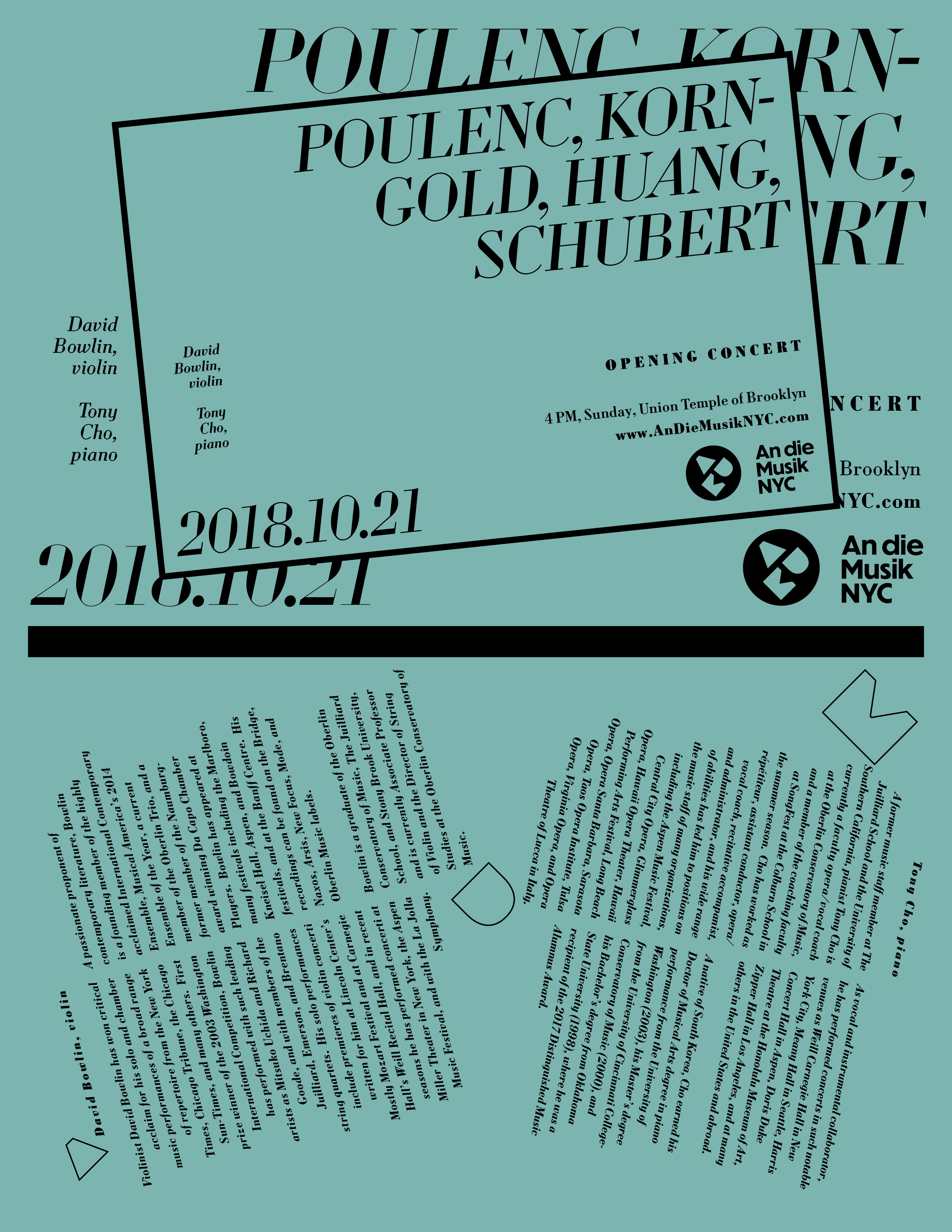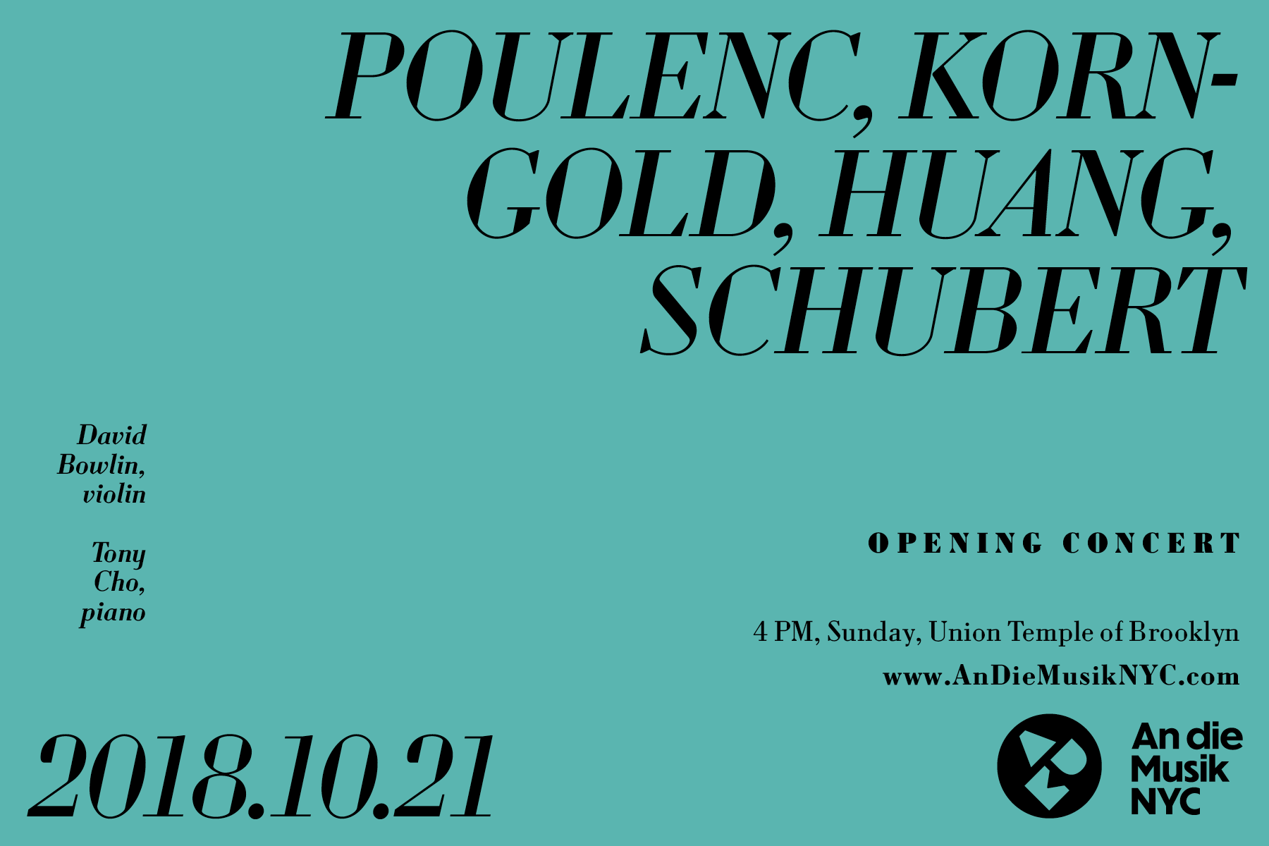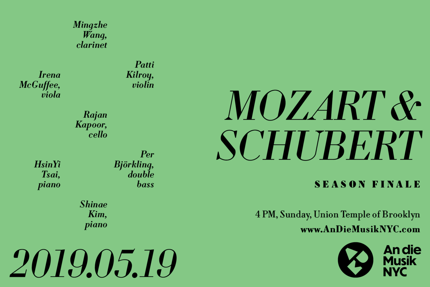 An die Musik NYC is a concert series bringing the people of New York City high-quality classical music at affordable prices. It presents internationally renowned performers alongside rising talents from the NYC community.