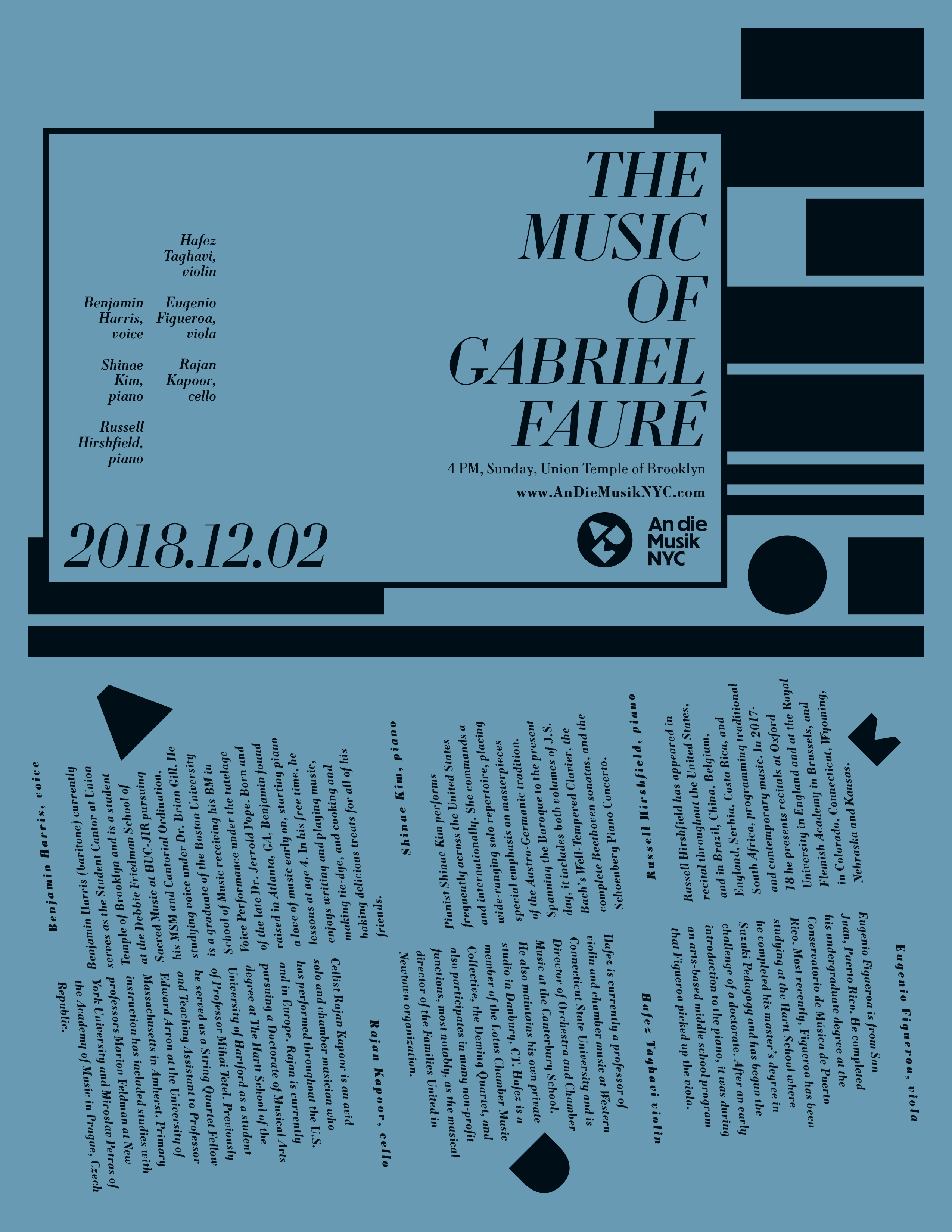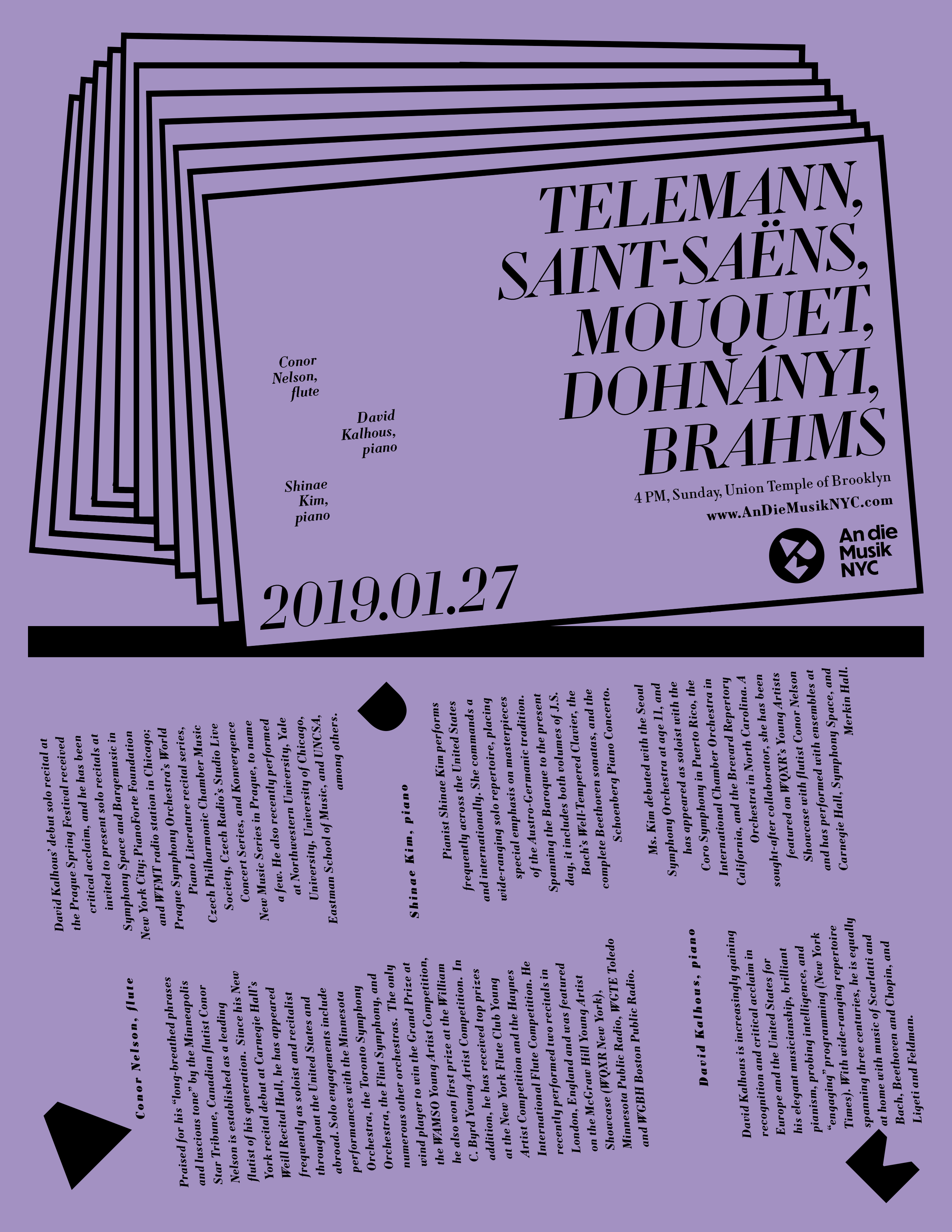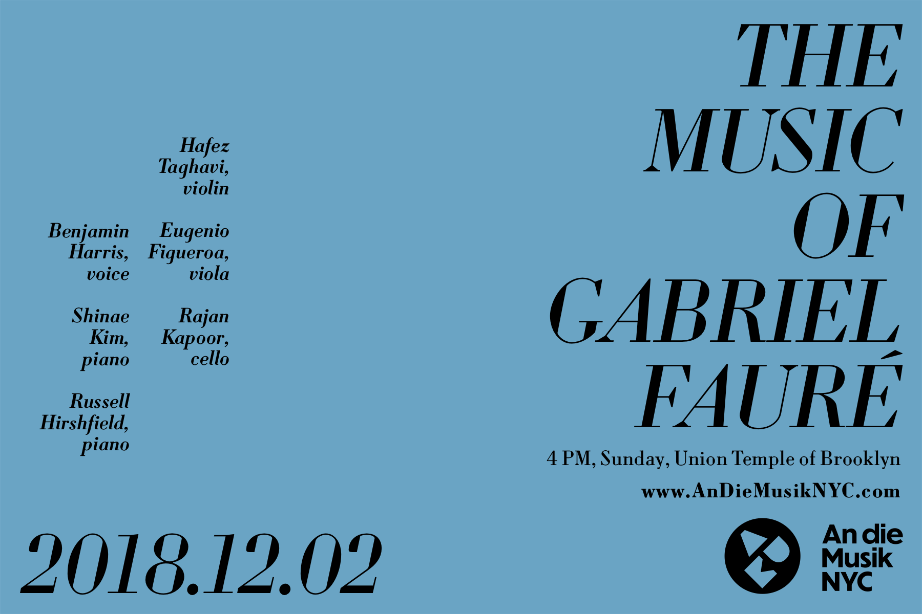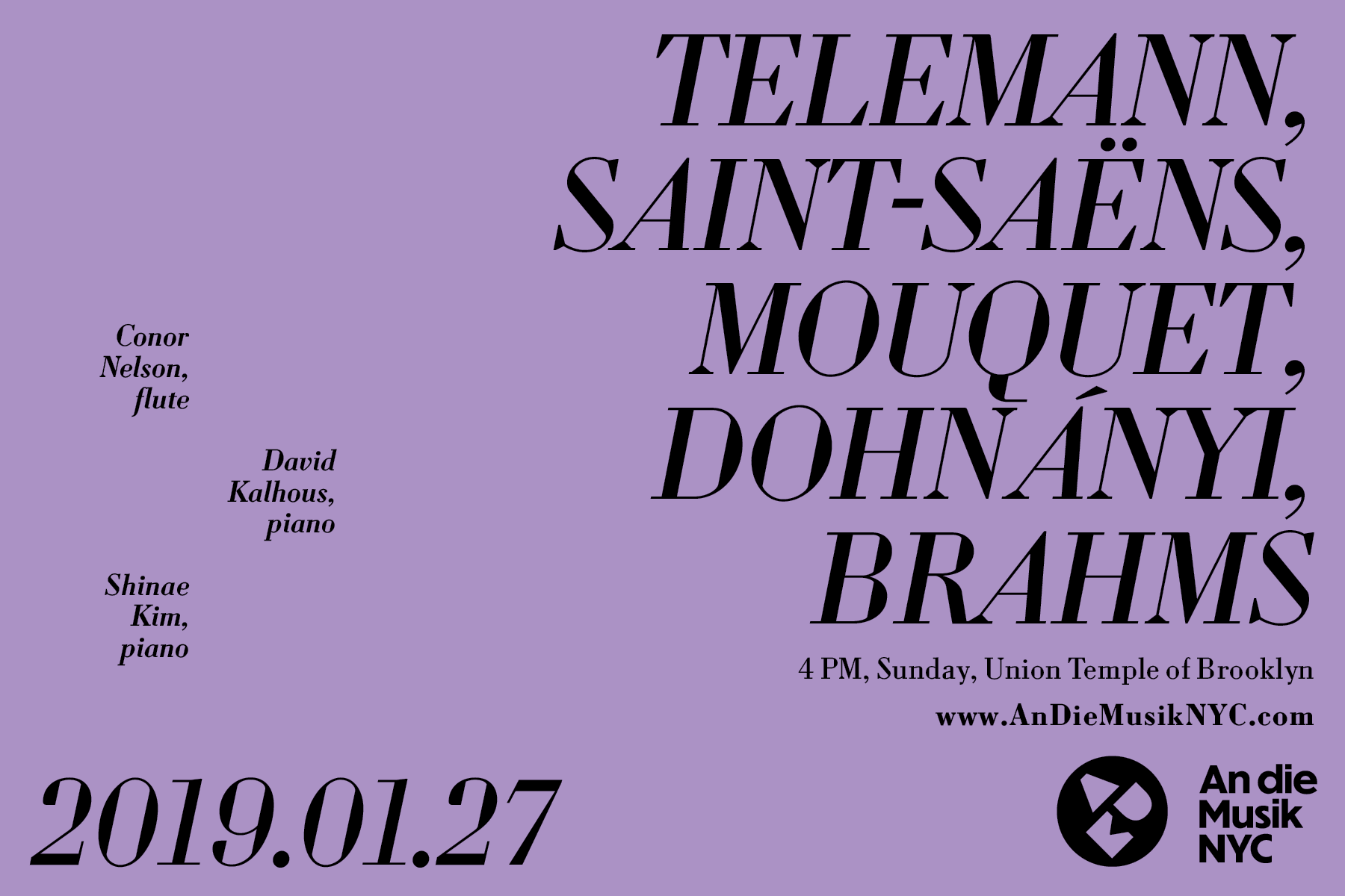 An die Musik NYC is a concert series bringing the people of New York City high-quality classical music at affordable prices. It presents internationally renowned performers alongside rising talents from the NYC community.