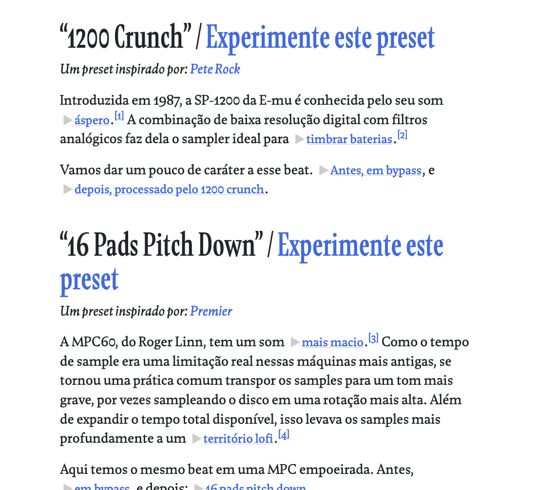 While the blog itself uses Hobeaux and Messer for all typography, some videos and interactive plugins are inserted, using more type. Here, a tutorial pairs Messer with Export Stencil, Vulf Mono and Metallophile Sp8, among many other fonts.