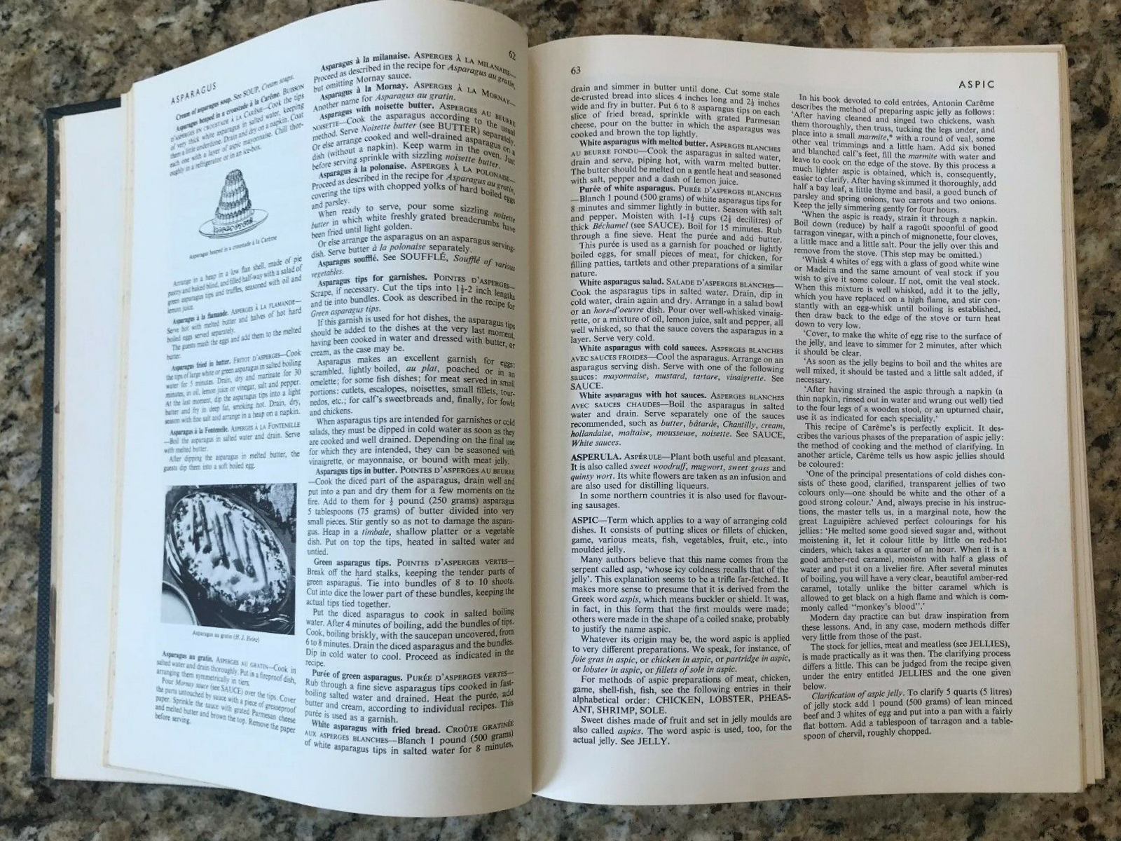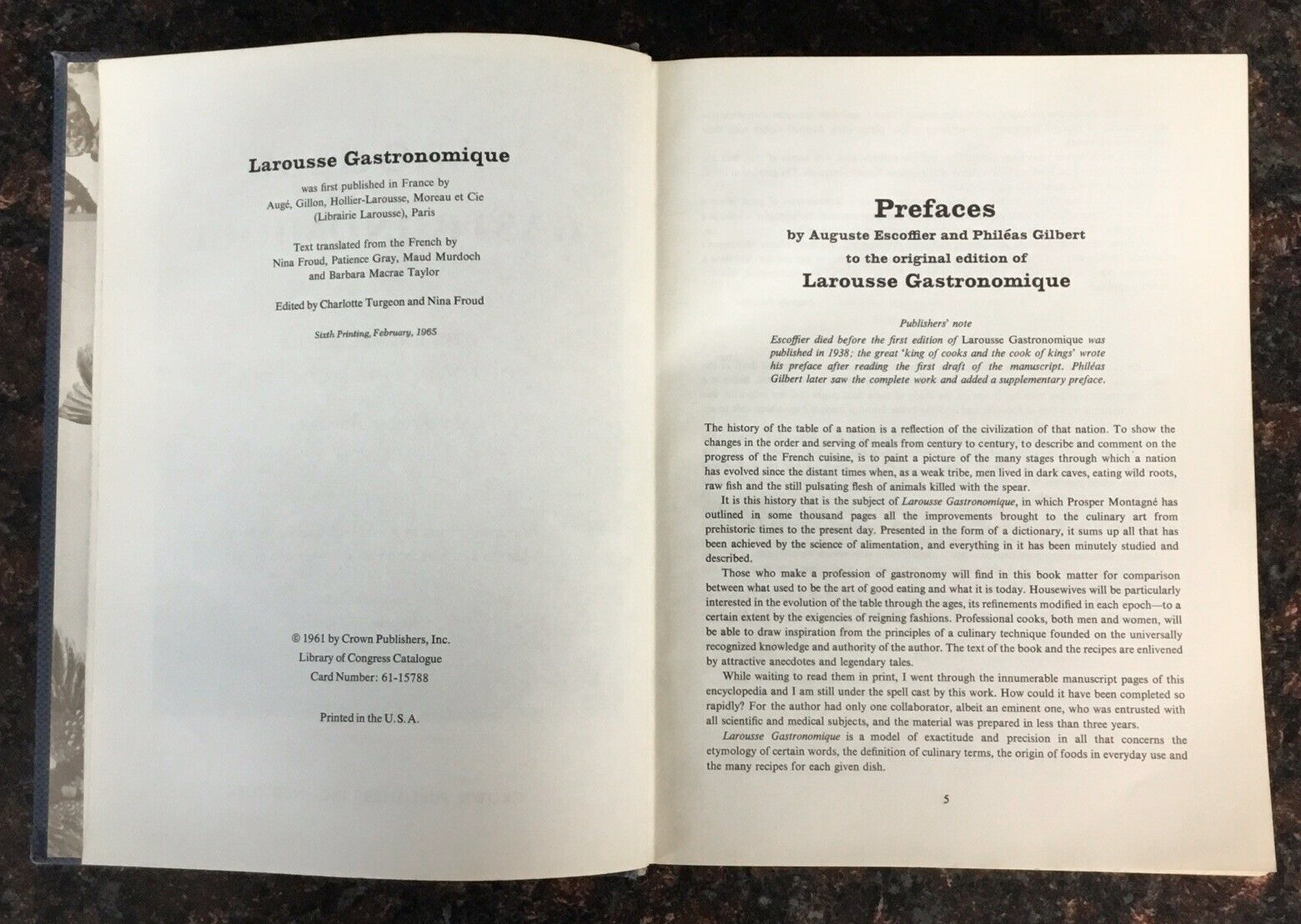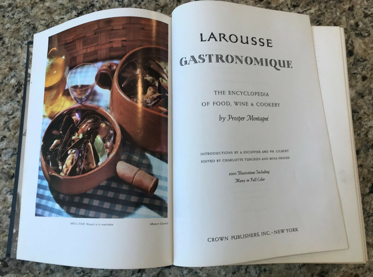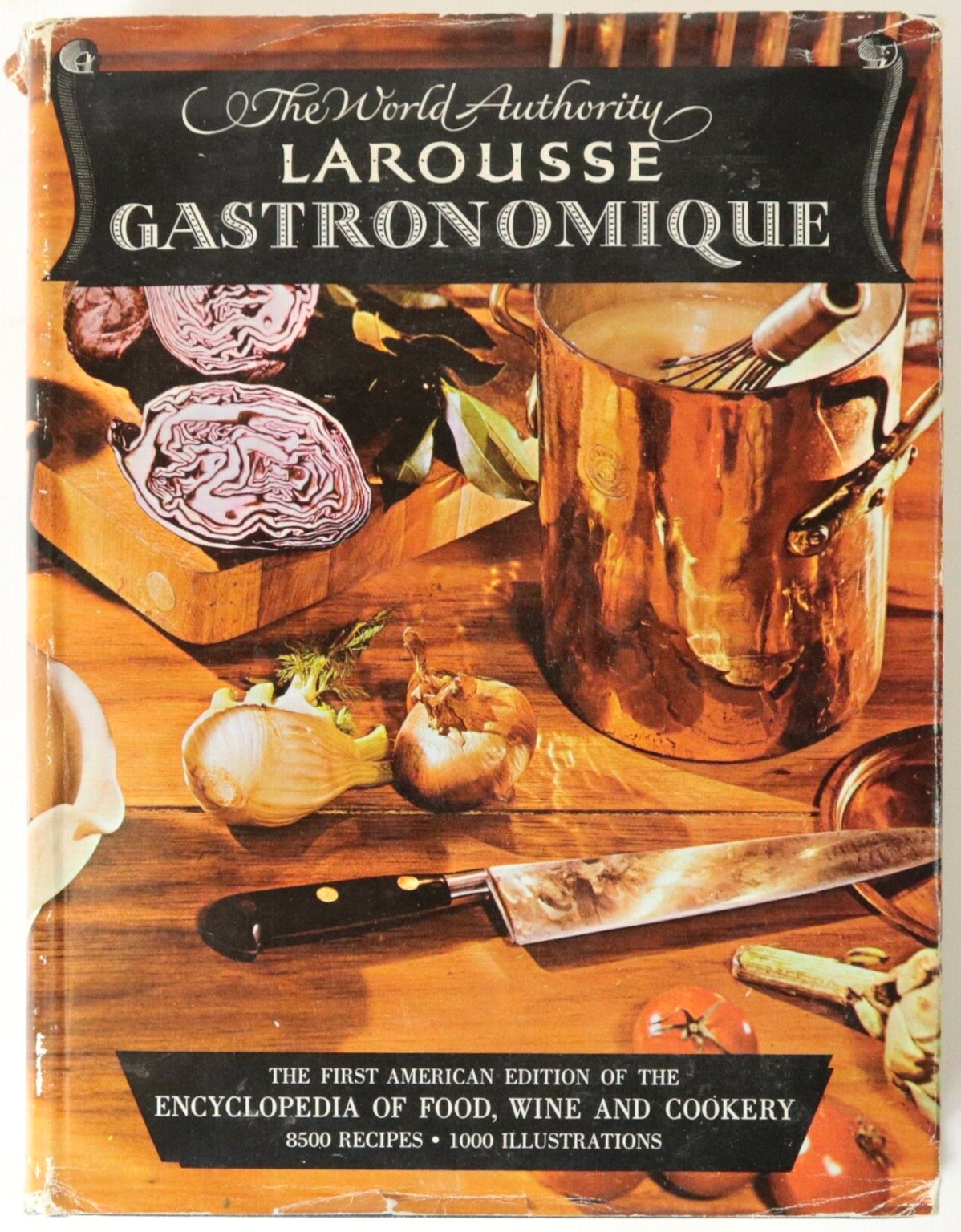 Larousse Gastronomique is “the encyclopedia of food, wide and cookery” by Prosper Montagné (1865–1948). The culinary guide was first published in France in 1938 by Augé, Gillon, Hollier-Larousse, Moreau et Cie (Libraire Larousse), Paris. This is the US edition edited by Charlotte Turgeon and Nina Froud, and published by Crown Publishers, Inc. in 1961 (6th printing, 1965).