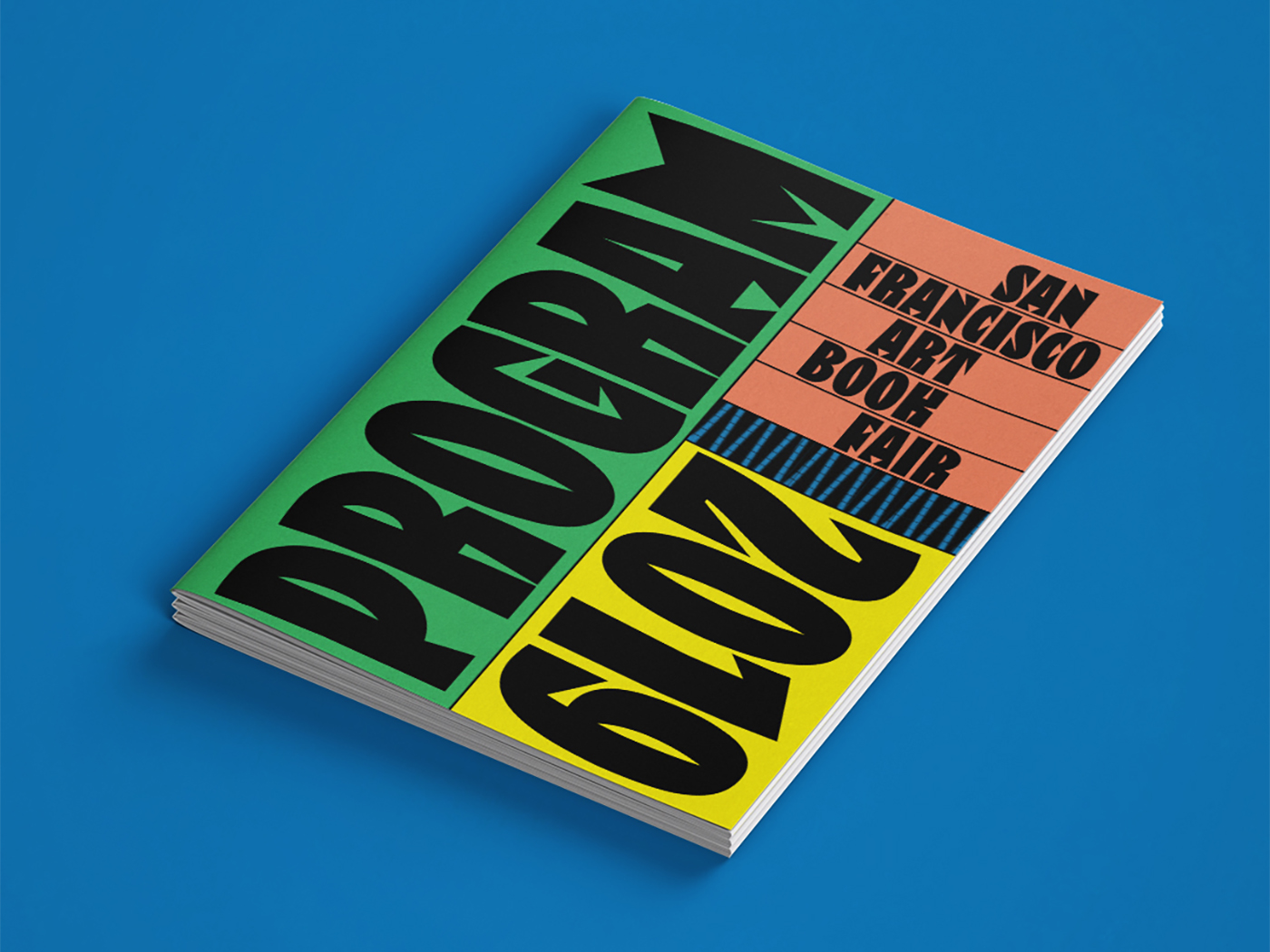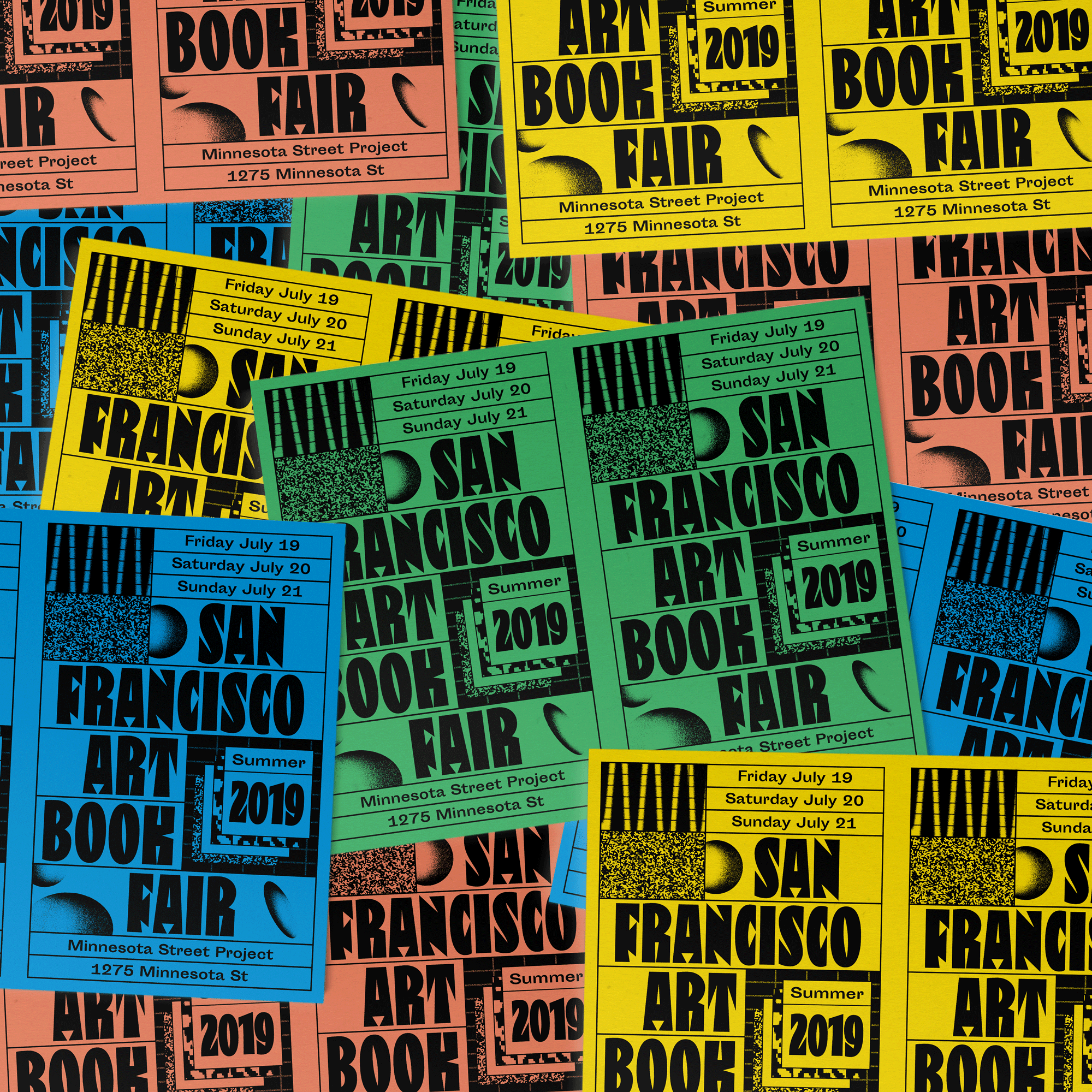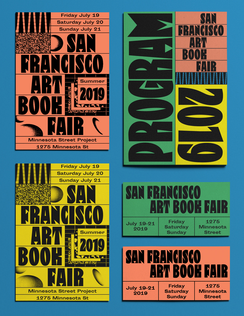 Identity for the San Francisco Art Book Fair 2019 set in Solenizant by Laïc: Type and Sporting Grotesque by Velvetyne Type.