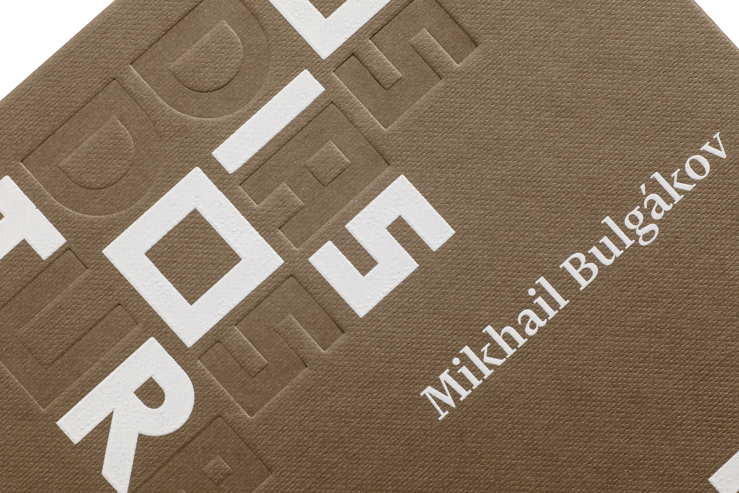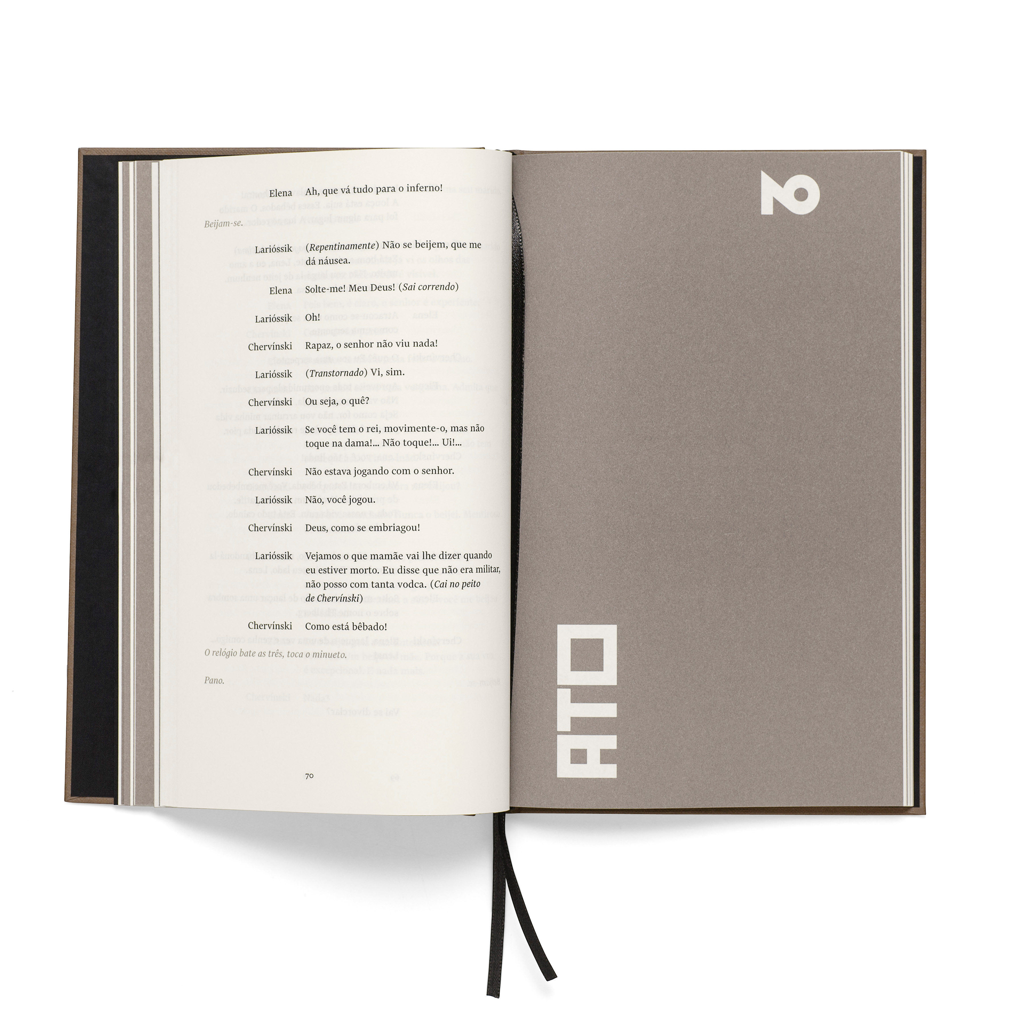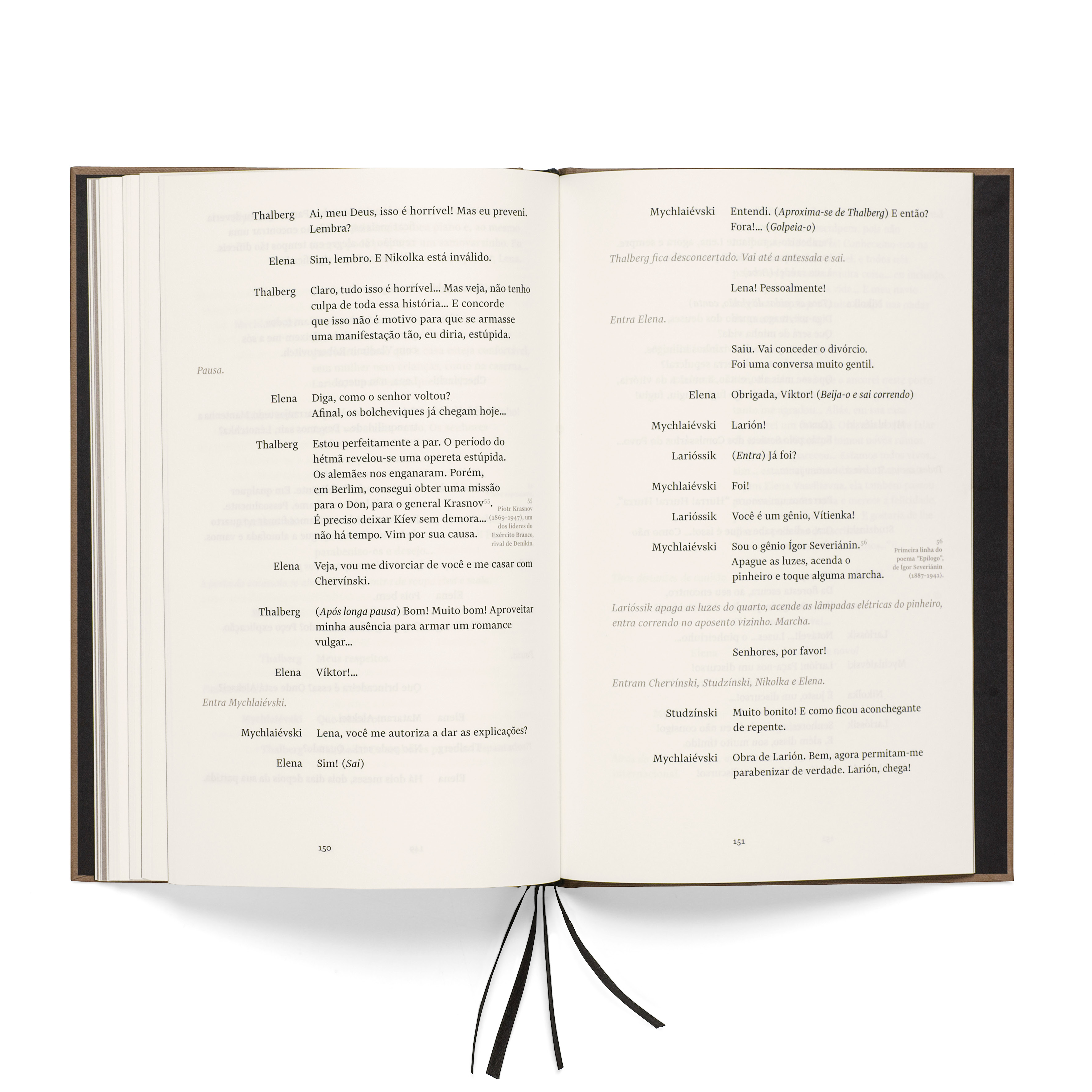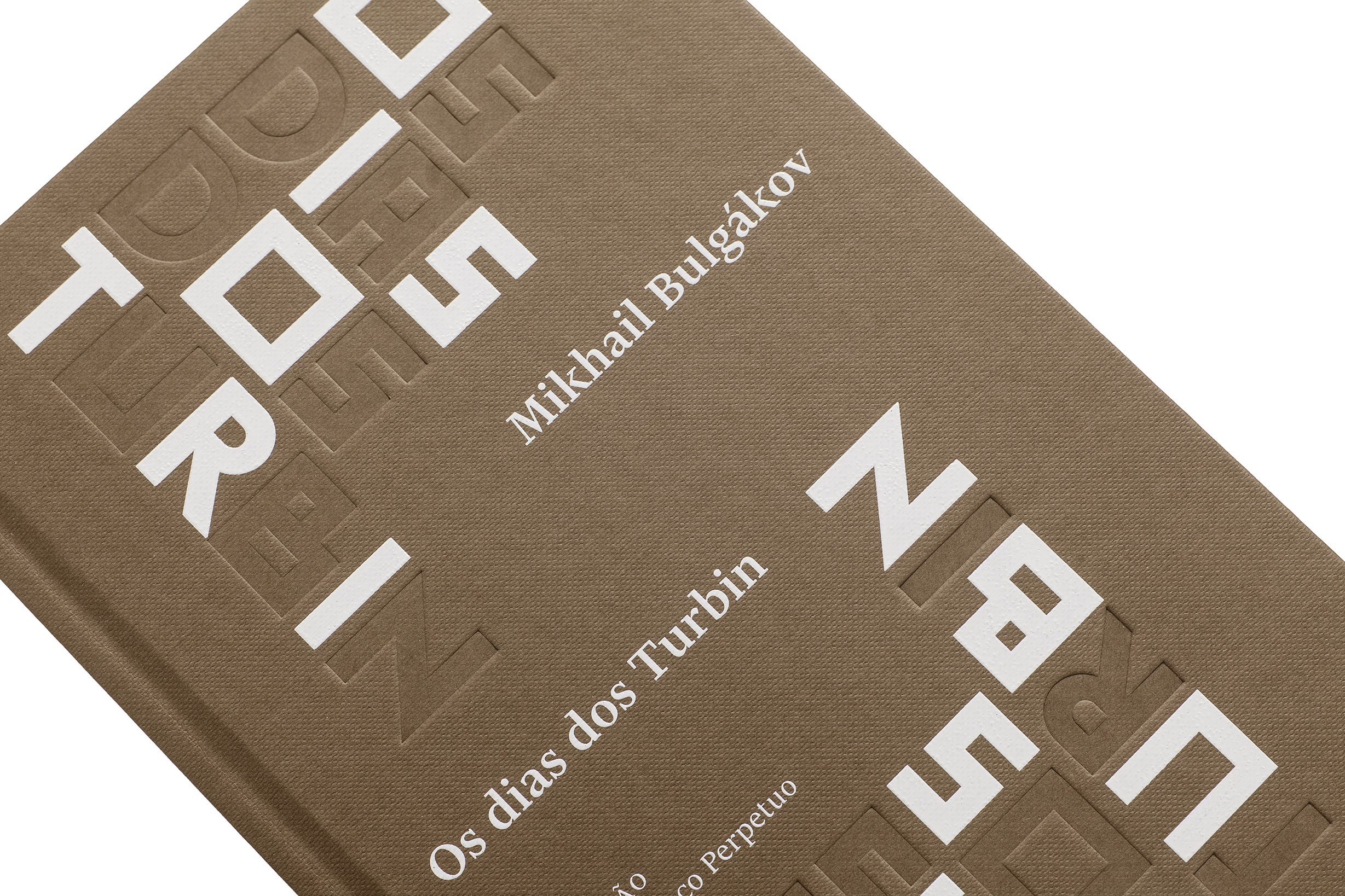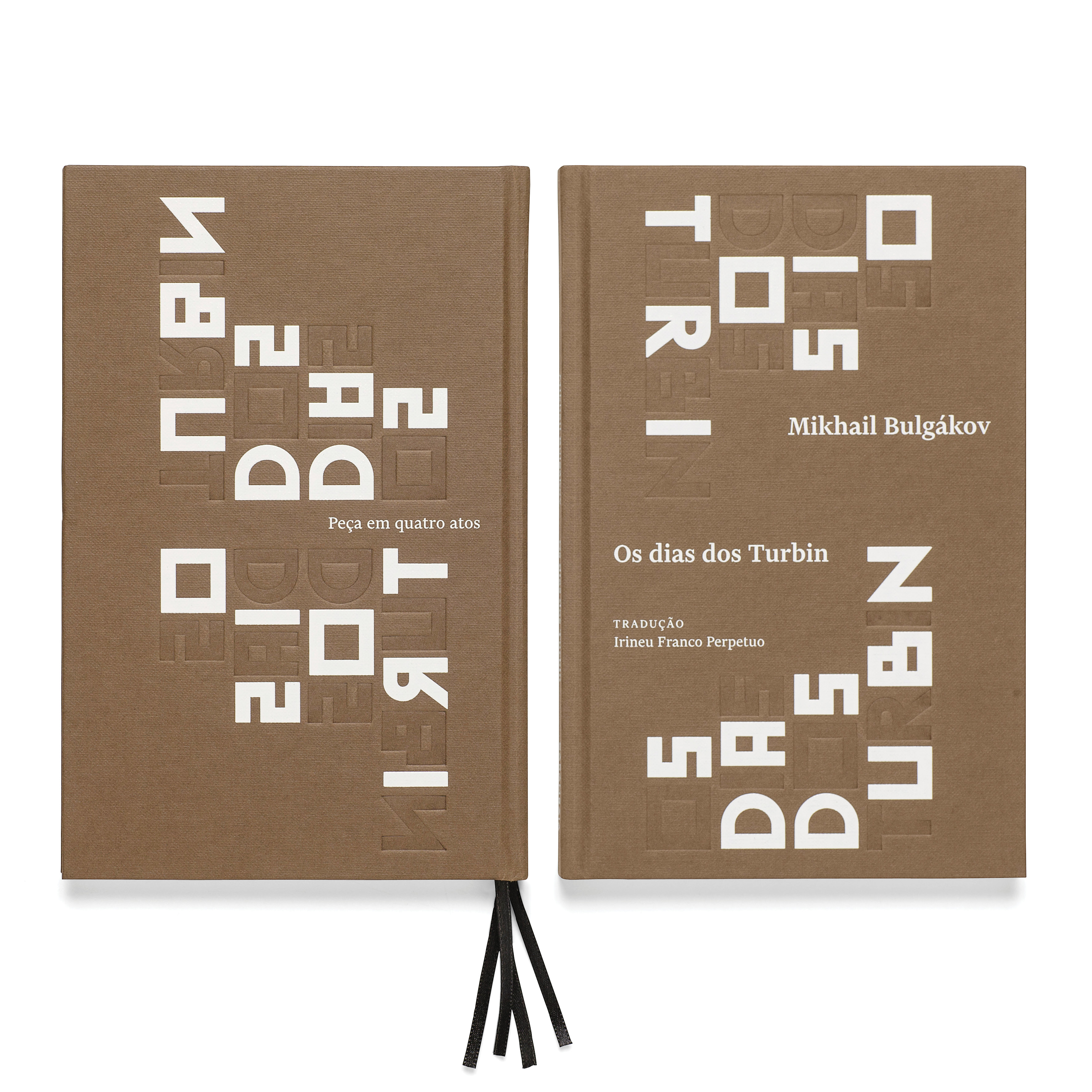 The book has been designed by Brazilian studio Bloco Gráfico, with Russian constructivism in mind. Throughout the book, titles are playfully designed with Euclid Flex Pixel stylistic alternates. The core text of the play is set with Financier Text by Klim. The contrast between the design of the two typefaces is alluding to the conflicts experienced by the Turbin family in the story.