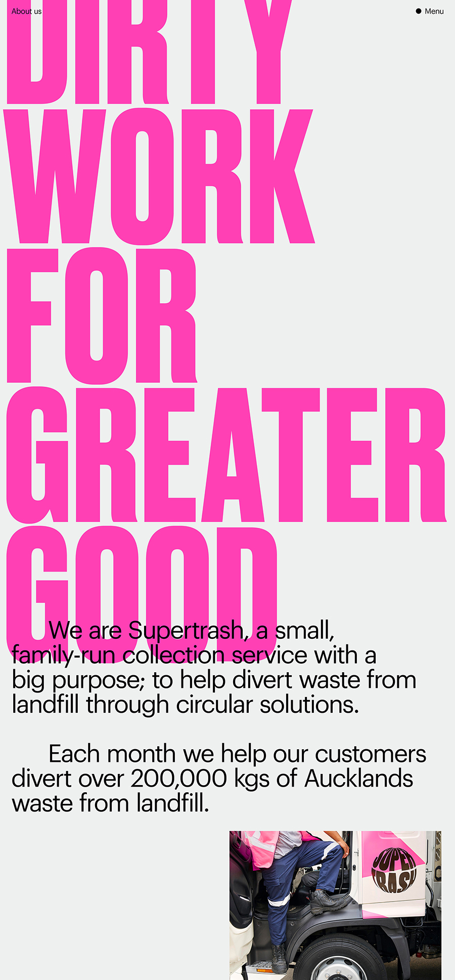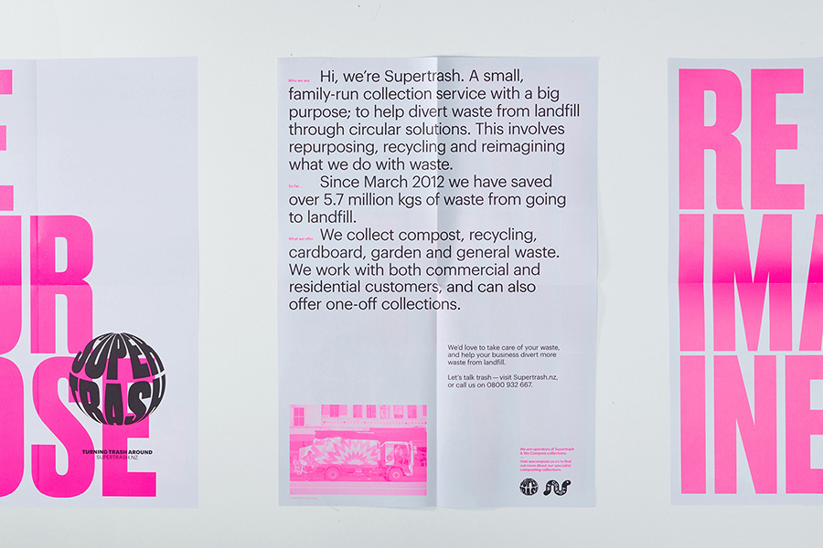 Supertrash is a family-run New Zealand-based refuse collection service that helps to divert waste from landfill by employing circular solutions; these are typically recycling, reusing or repurposing. Although small, they have big ambitions and are innovative and disruptive in their approach and ideology. Since 2012 Supertrash has diverted almost six million kg of waste away from landfill. It is a challenge posed to – and question asked of – the incentives corporate firms that have built their revenue streams largely around burying rubbish.