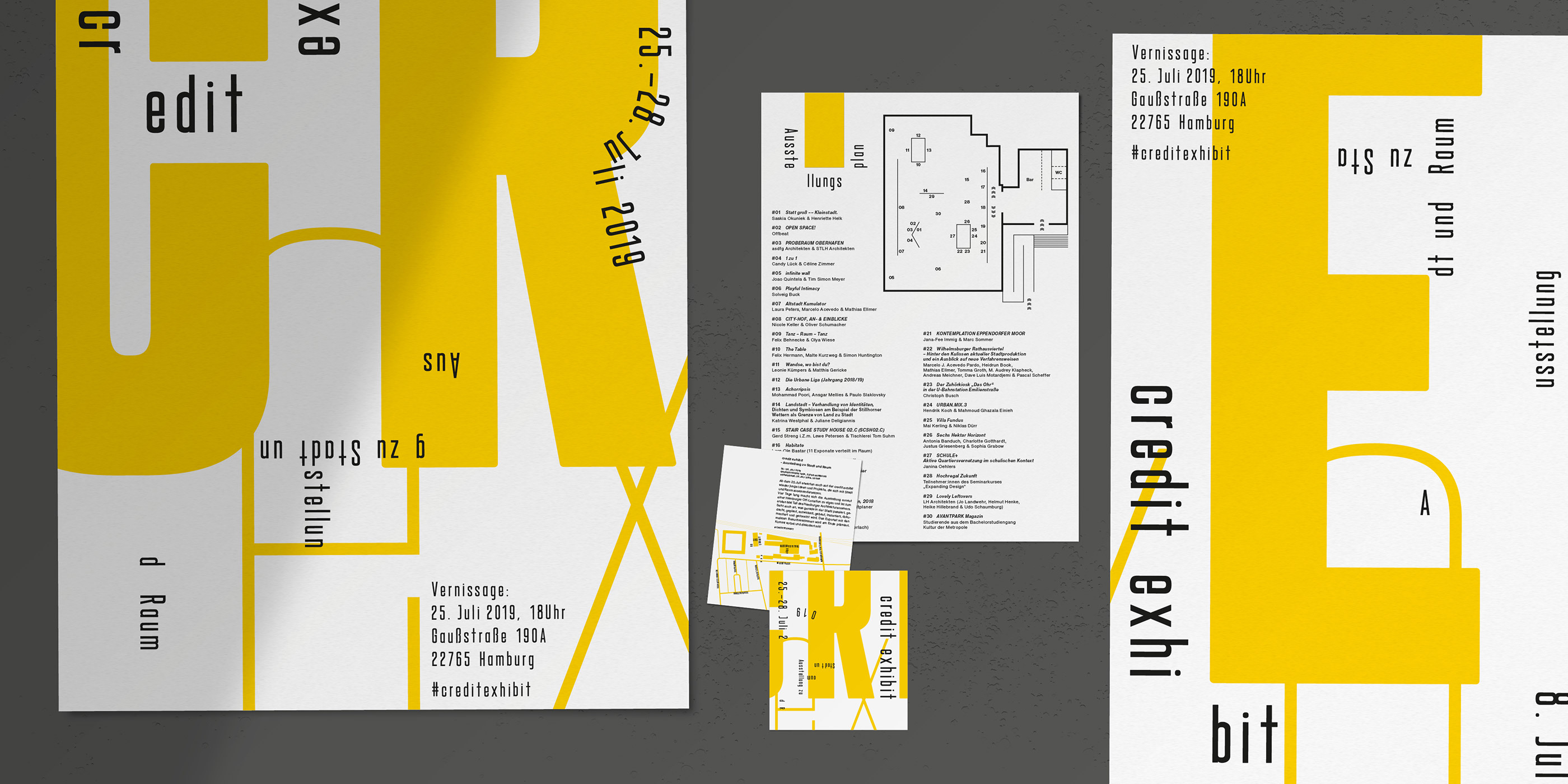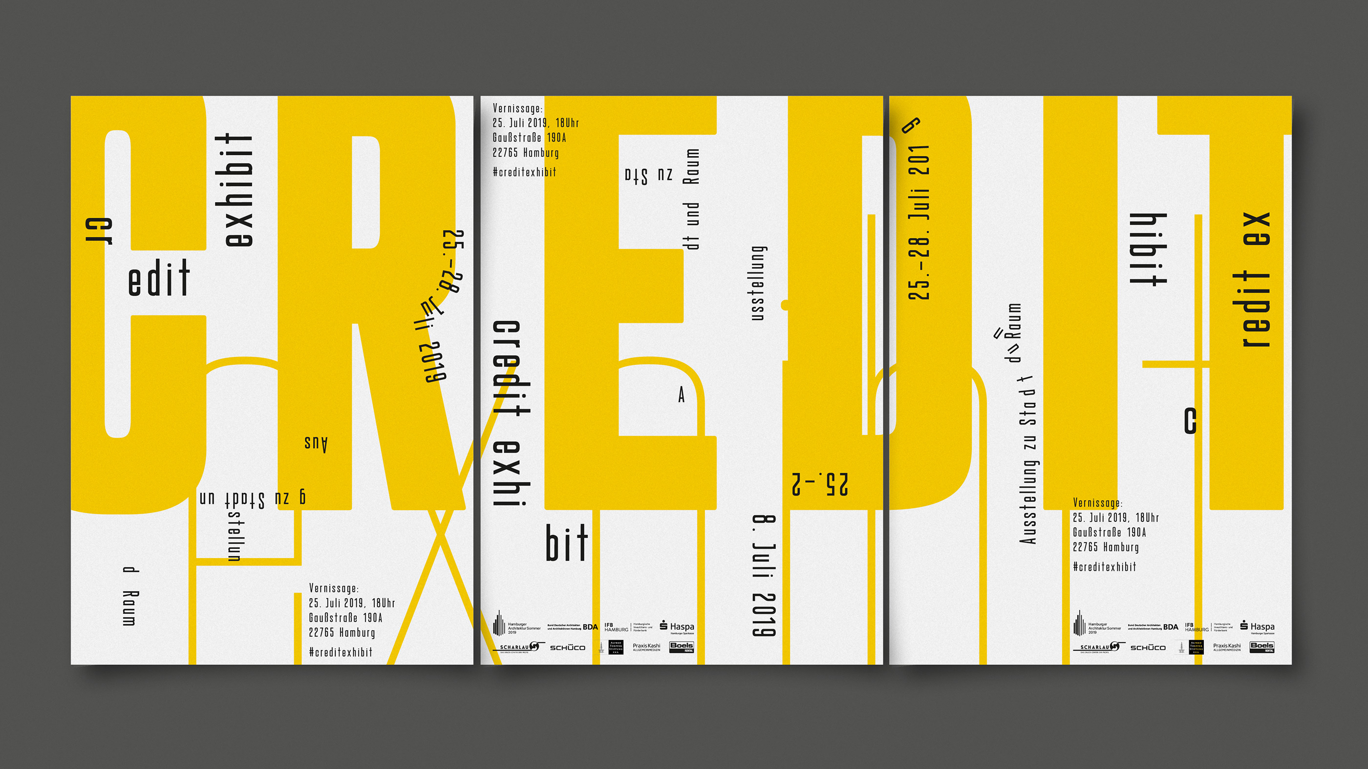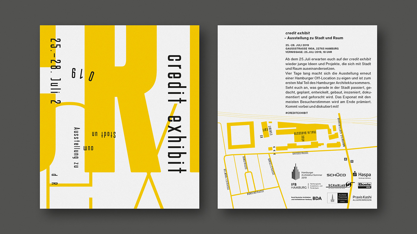 Visual design for the 7th edition of credit exhibit, an annual exhibition for architecture and urban spaces in Hamburg, Germany.