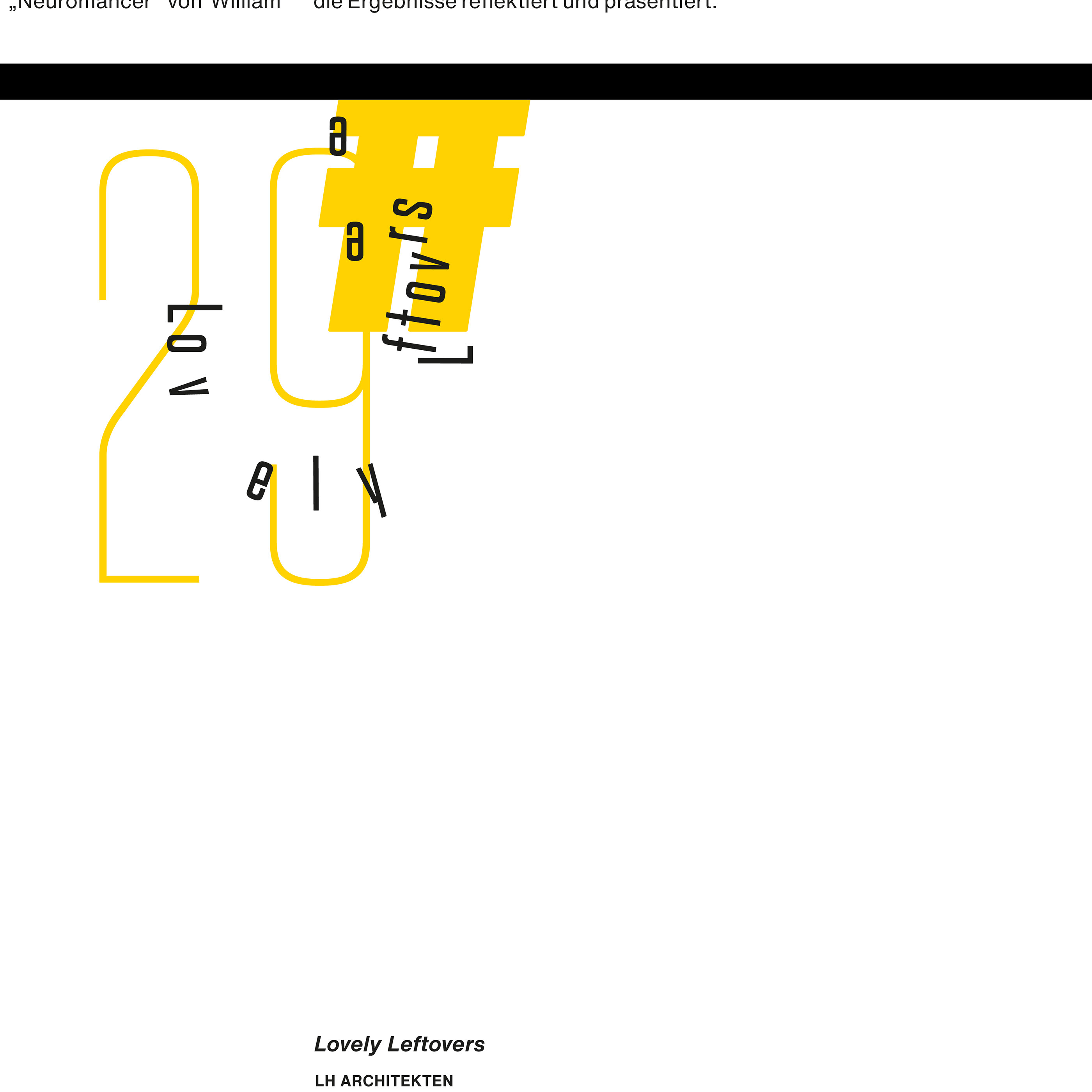 The relation between individuals and the city itself became the focus while developing the design. People living in urban spaces might be pushed aside, sheltered, or guided by given structures. I aimed to have the design refer to brutalism, while letting typography take the lead in partly incomprehensible paths – just like one sometimes wonders how certain occasions might have developed in urban spaces.