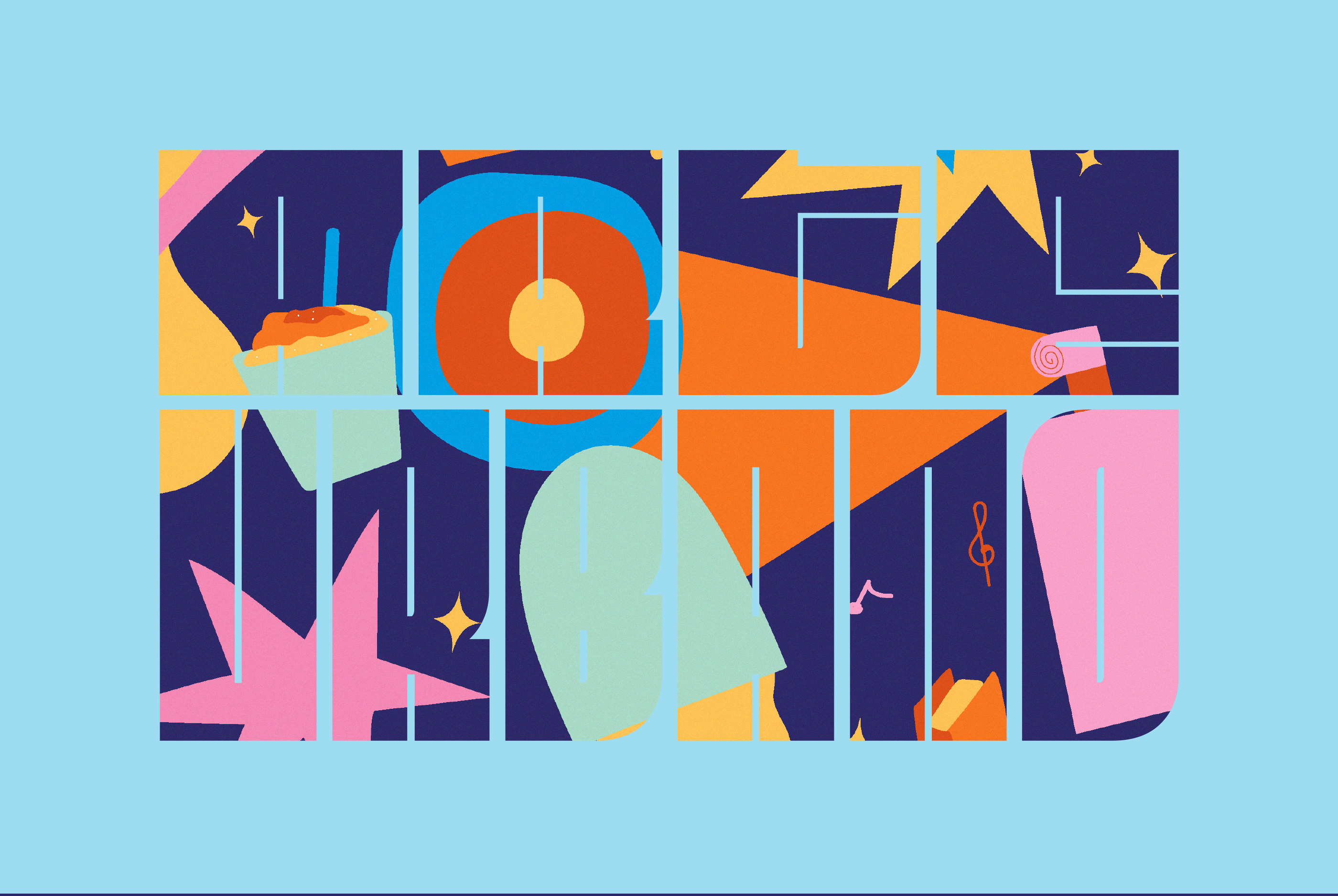 Large text set in Fit acts as an illustration, filled with lively and colorful patterns depicting the food, visual art, and music that are central to the festival. (I am psyched to see the designers employing multiple widths of Fit on the same line!) Monument Grotesk works well as a nice counterpoint, providing some much-needed legibility for titles and supporting text.