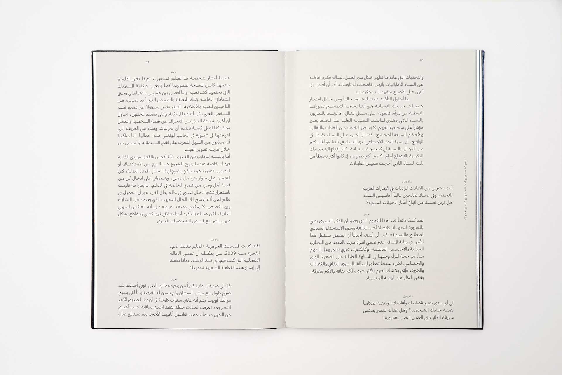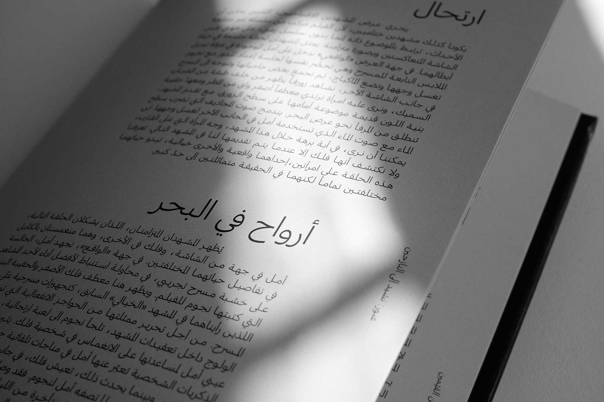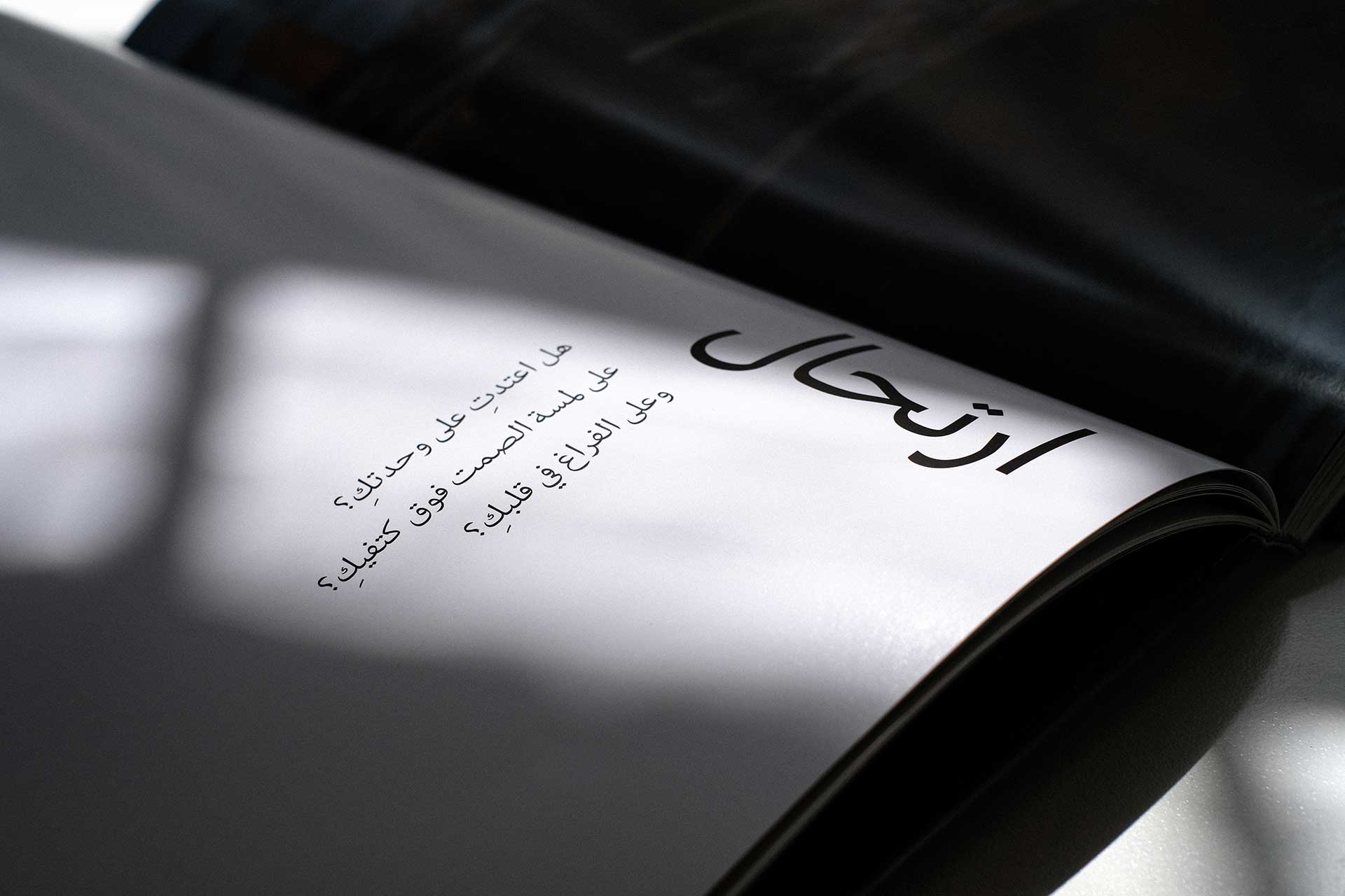 The design pairs two Arab typefaces, 29LT Riwaya and Greta Arabic, with two Latin alphabet typefaces: Shapiro and Sangbleu Republic.