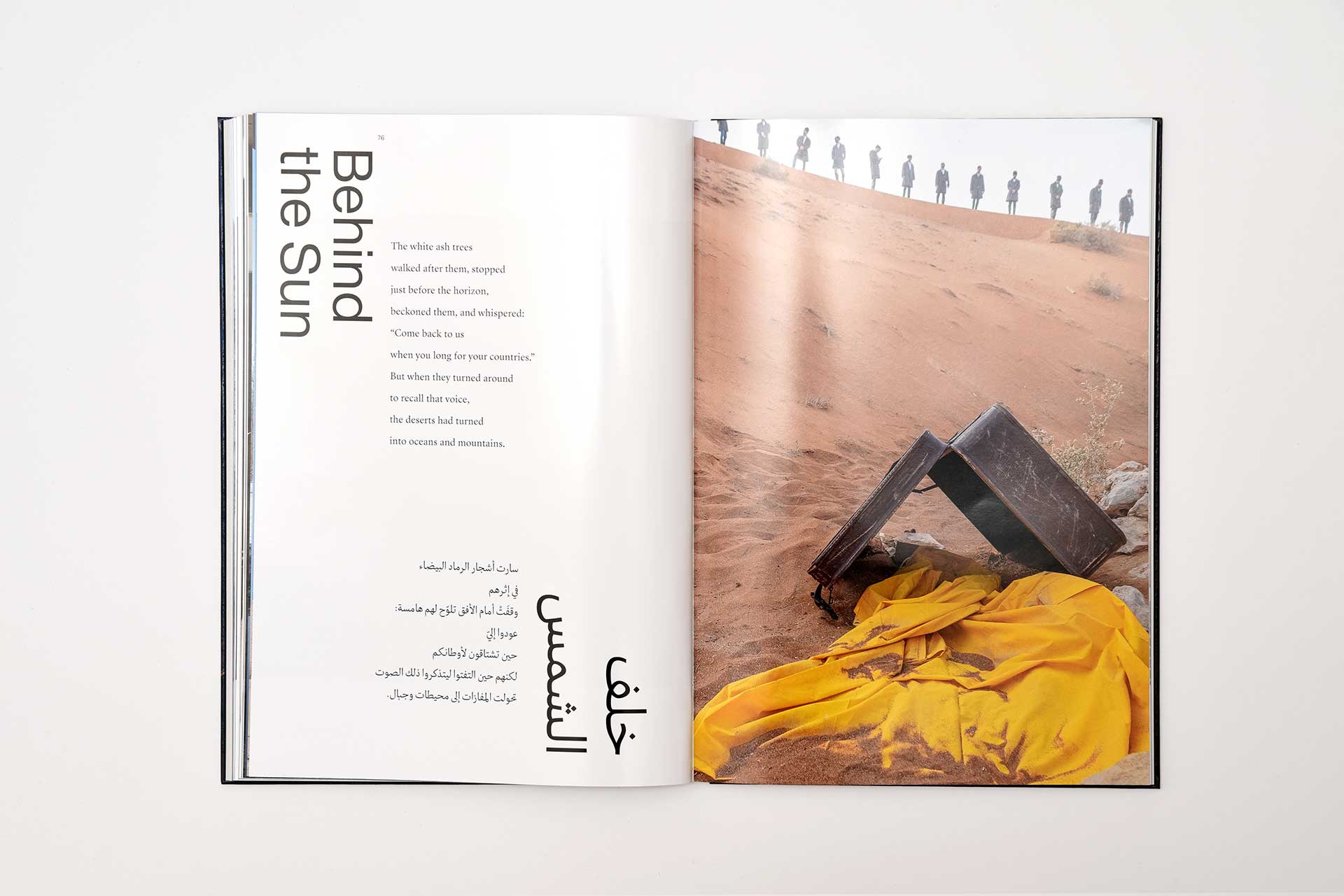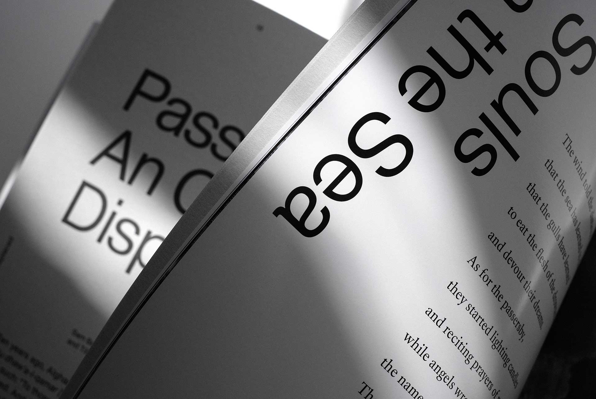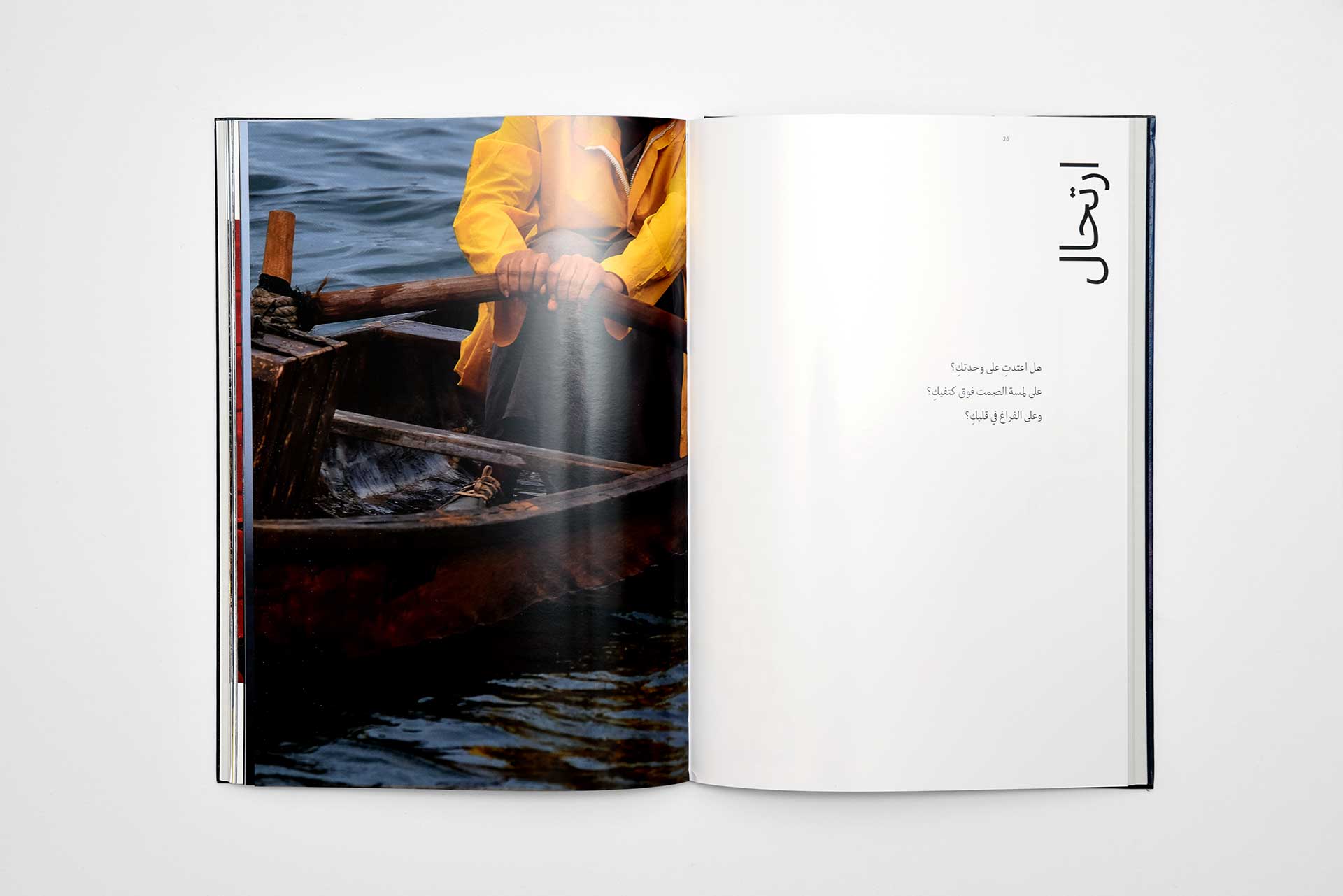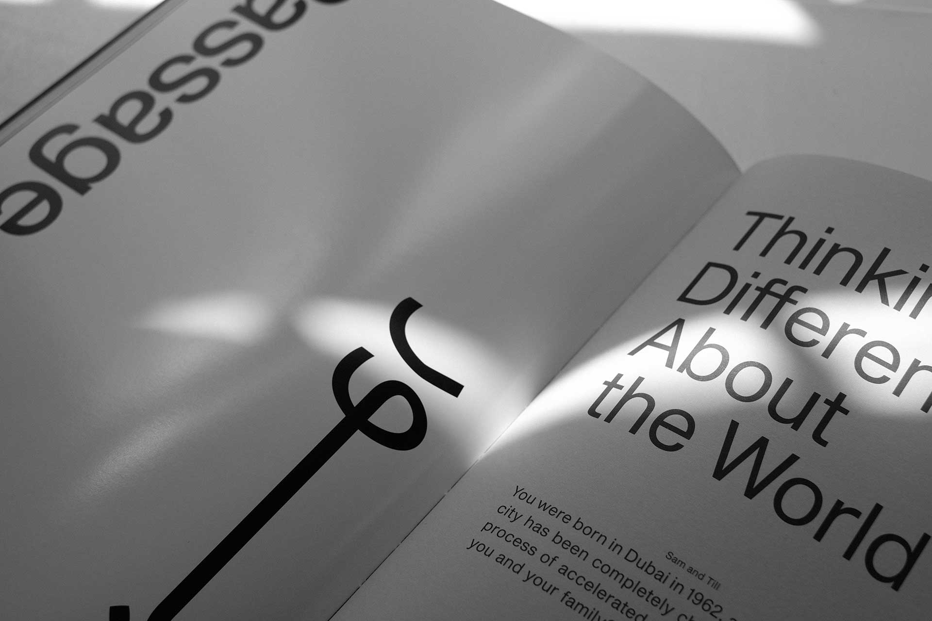 The design pairs two Arab typefaces, 29LT Riwaya and Greta Arabic, with two Latin alphabet typefaces: Shapiro and Sangbleu Republic.