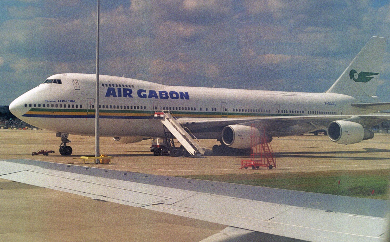 The Air Gabon logo had been in use at least since 1977, when the Compagnie Nationale Air Gabon was established. Ownership in the airline was shared between the Gabonese government (70%) and Sofepag (30%), an Air France-associated company. [Guttery]