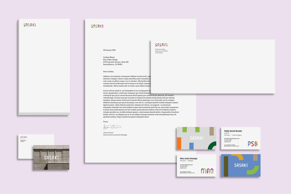 Sasaki Associates is a multidisciplinary architecture firm based out of Massachusetts. A recent rebranding of the organization took place in 2016, involving Bruce Mau Design. The redesign includes a multi-colored logo design system, with variable shapes used in different letters or, as Bruce Mau Design puts it: “A word mark generated from four core geometric shapes shifts in colors to create vibrant logo variations.”