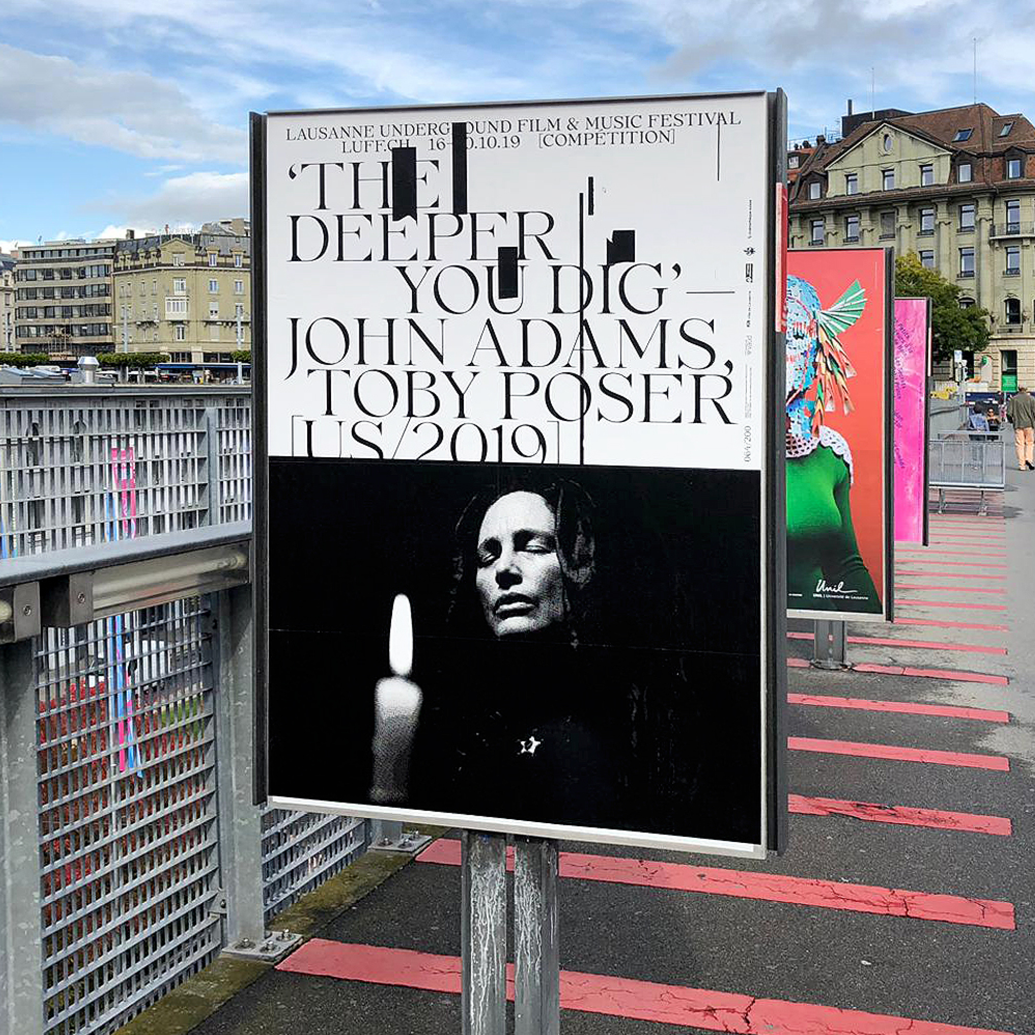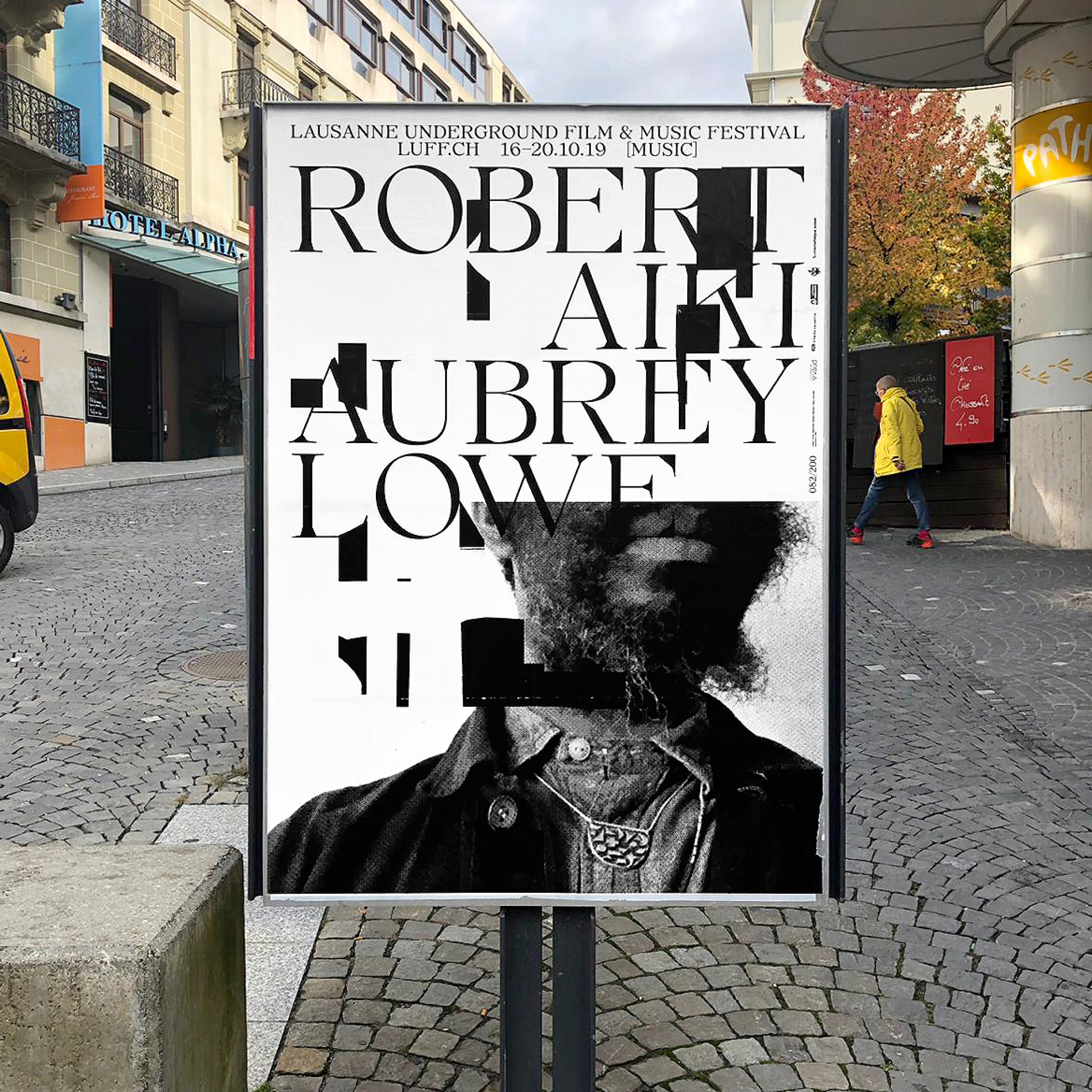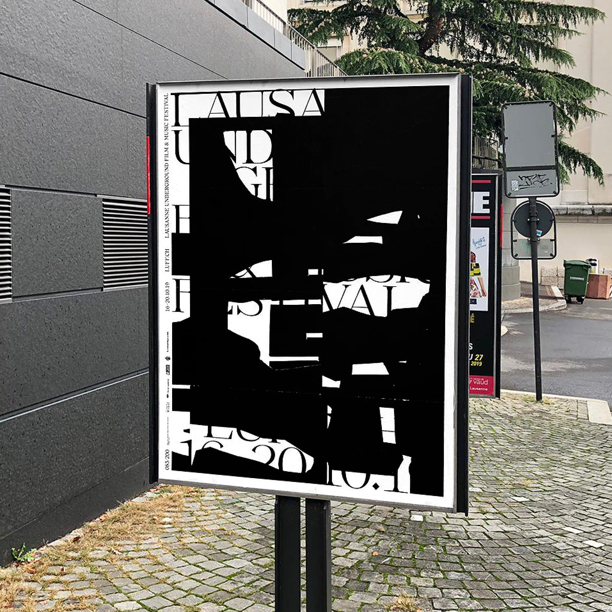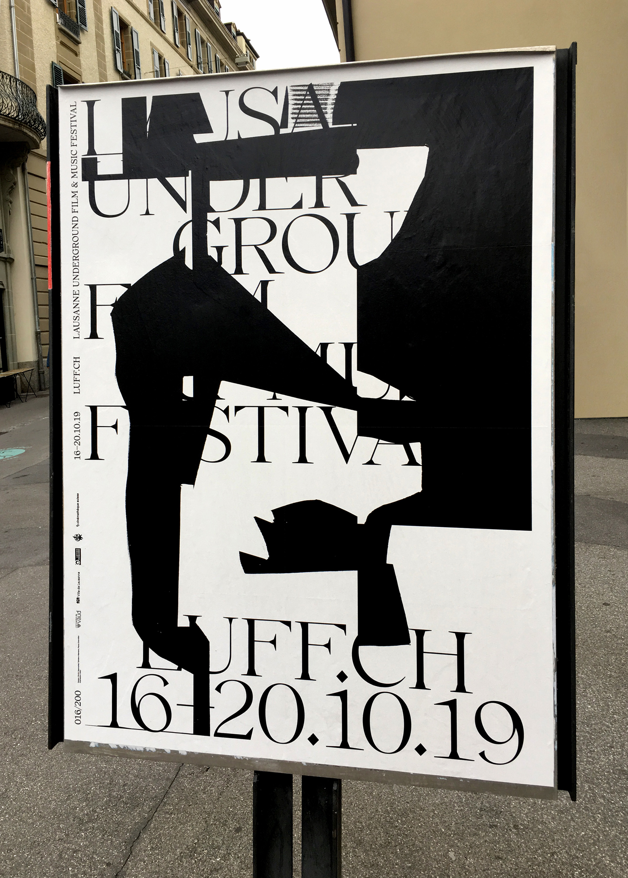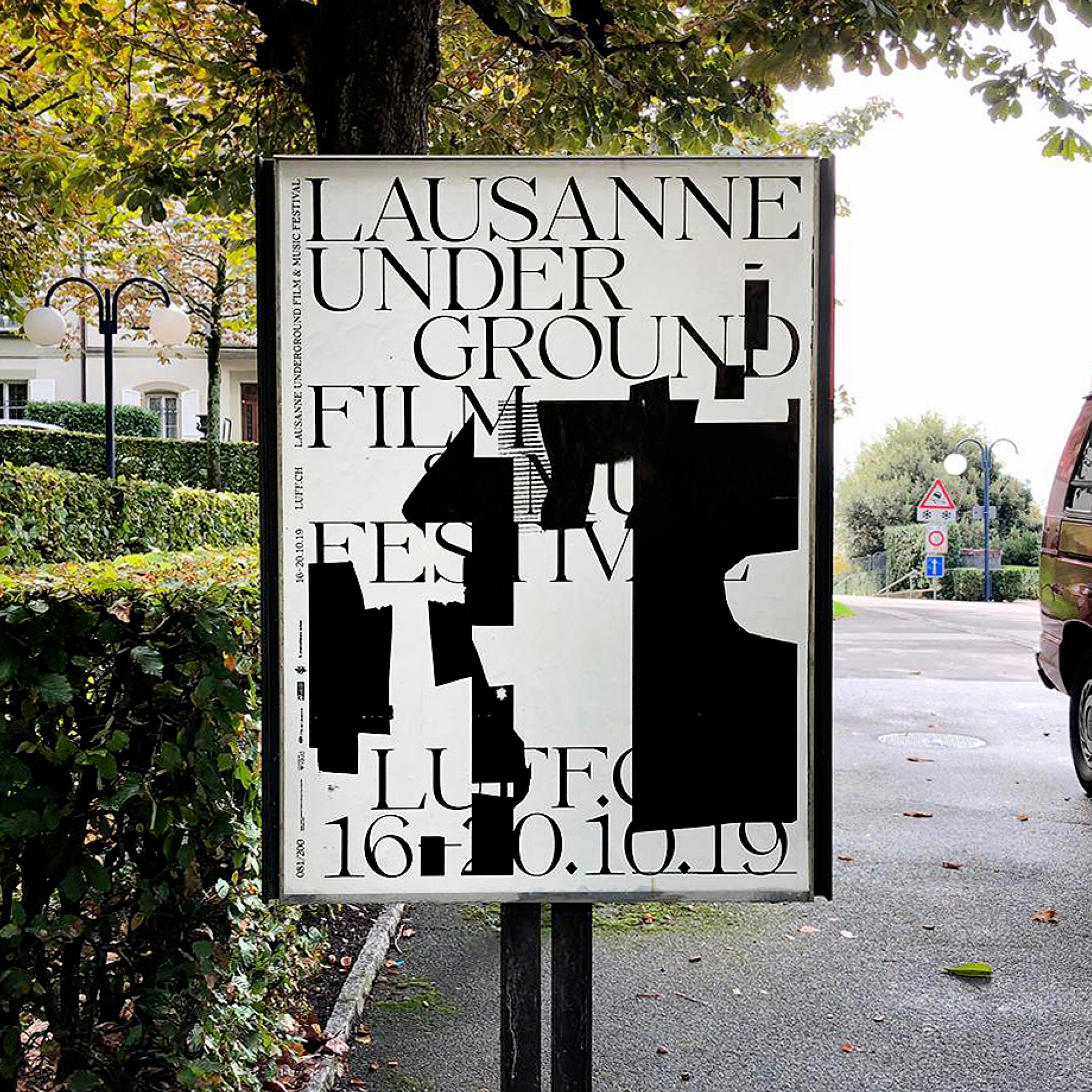 Identity for the 2019 edition of the Lausanne Underground Film & Music Festival (LUFF). These visuals are part of a series of 200 unique posters, including 40 dedicated to specific artists, movies or events. Designed by Dimitri Jeannottat in collaboration with Tiphaine Allemann and Pierre Charmillot, using various styles of Or Lemmen.