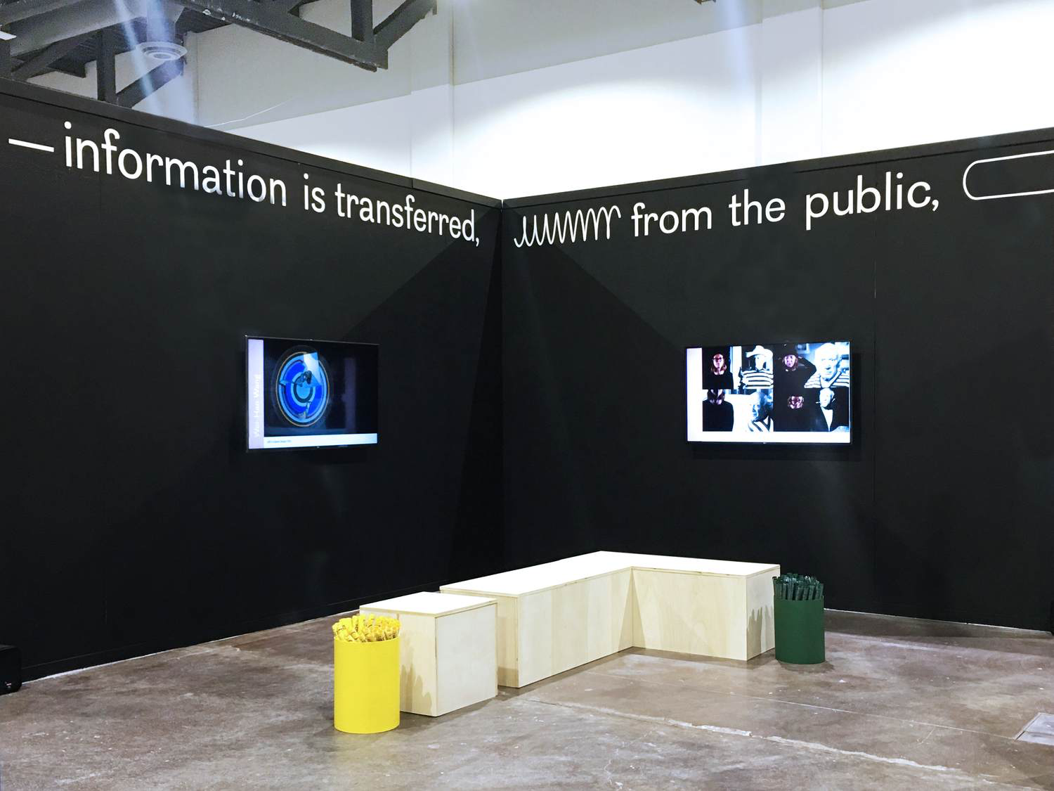 Re-Circulation was designed collectively by the RISD MFA class of 2019. All typography, both in the exhibition and online, uses a single font: Cotham Sans Regular.