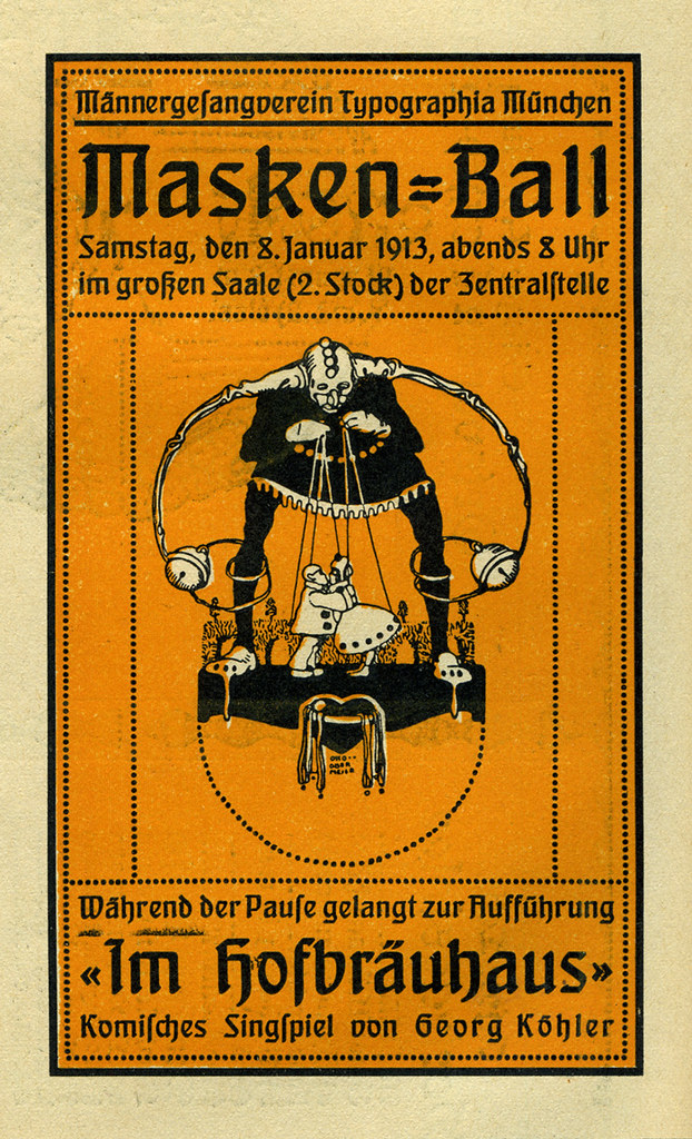 Invitation for a masked ball organized by the male choral society Typographia, reproduced in Typographische Mitteilungen, Vol. 10, No. 3, March 1913: