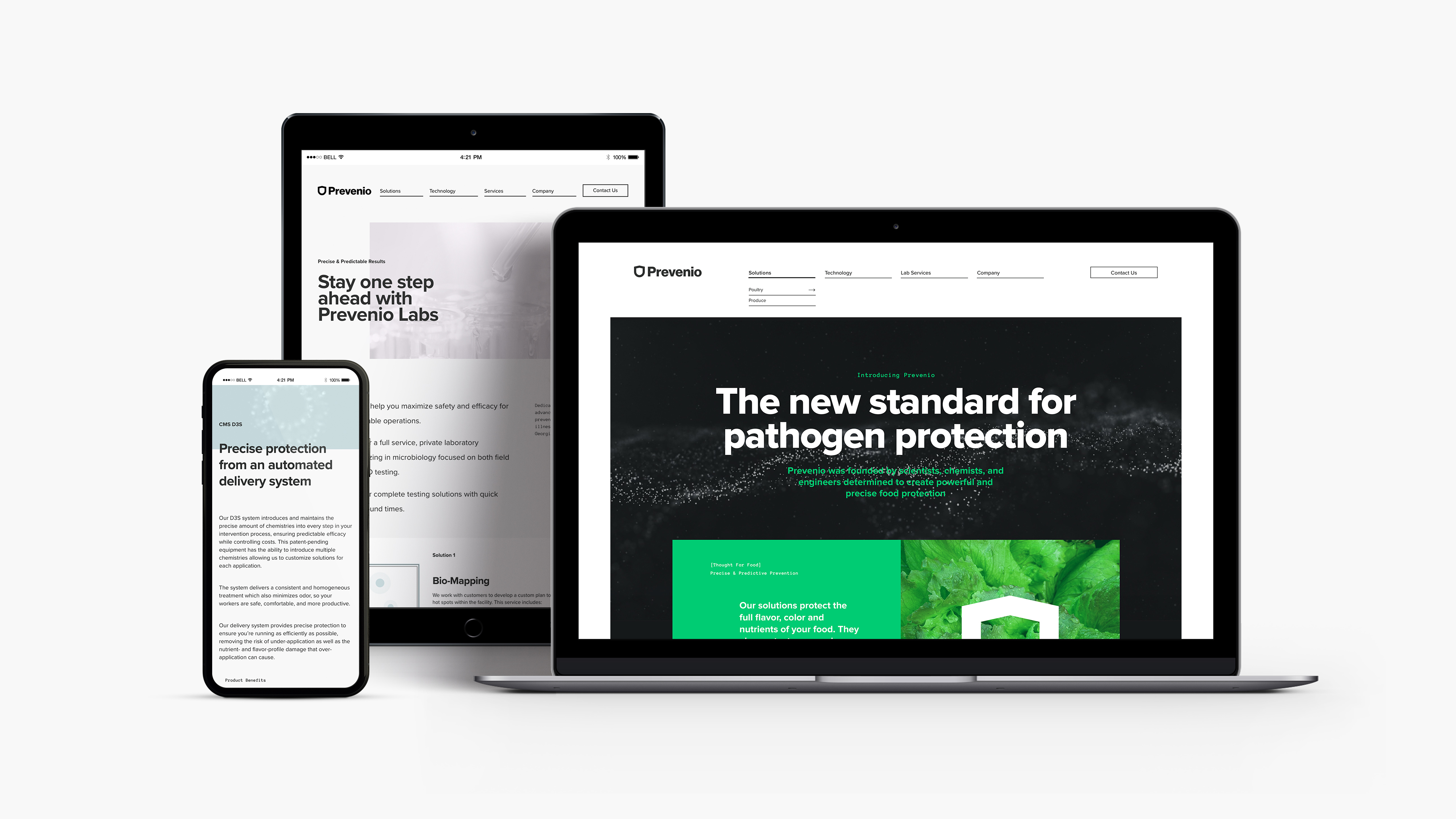 Nothing about the chemistry, equipment, ownership or service model changed. Just the name, logo, visual identity, messaging, collateral and website. Our team developed a full brand program to reintroduce CMS Technology as Prevenio, the new standard in pathogen protection.